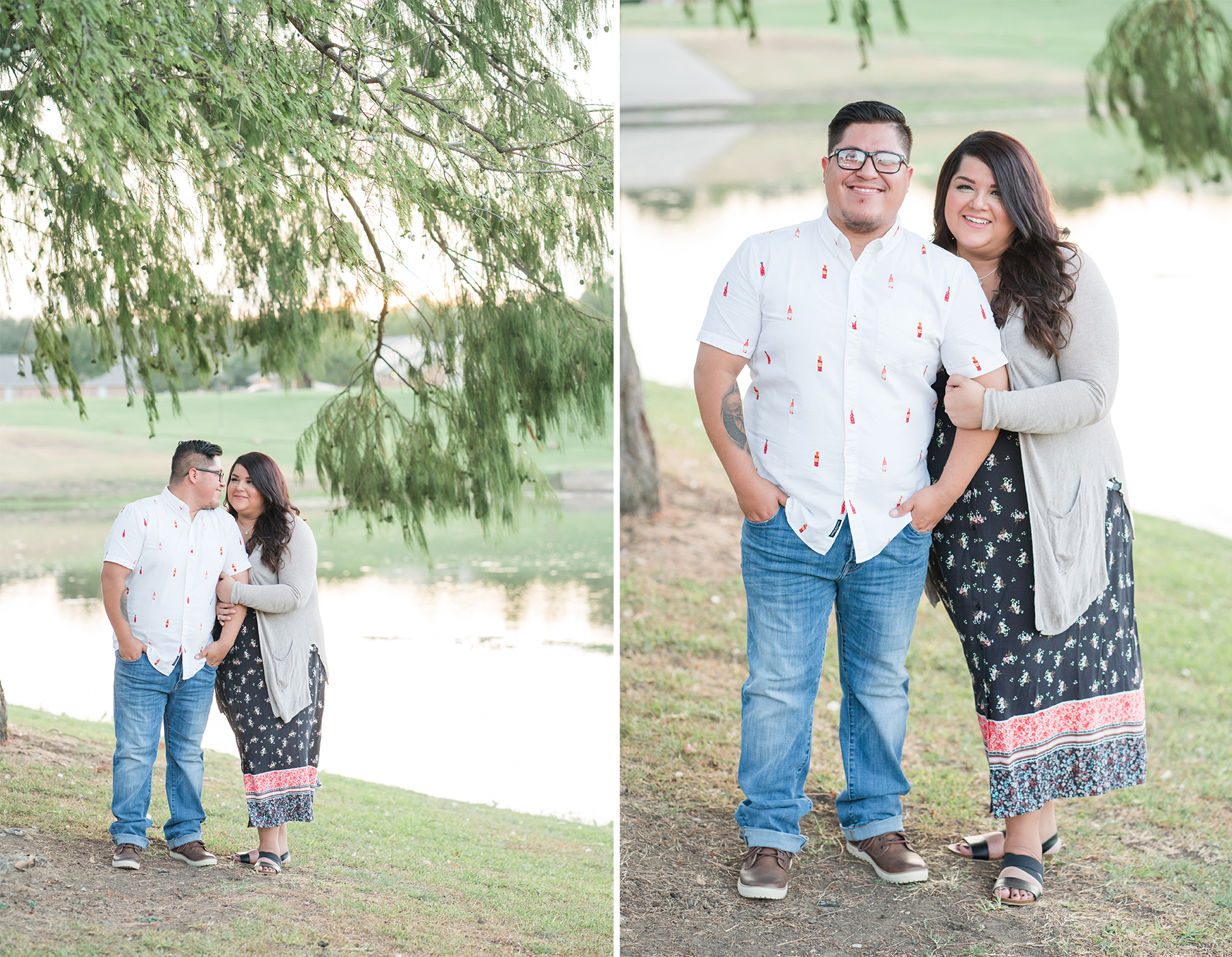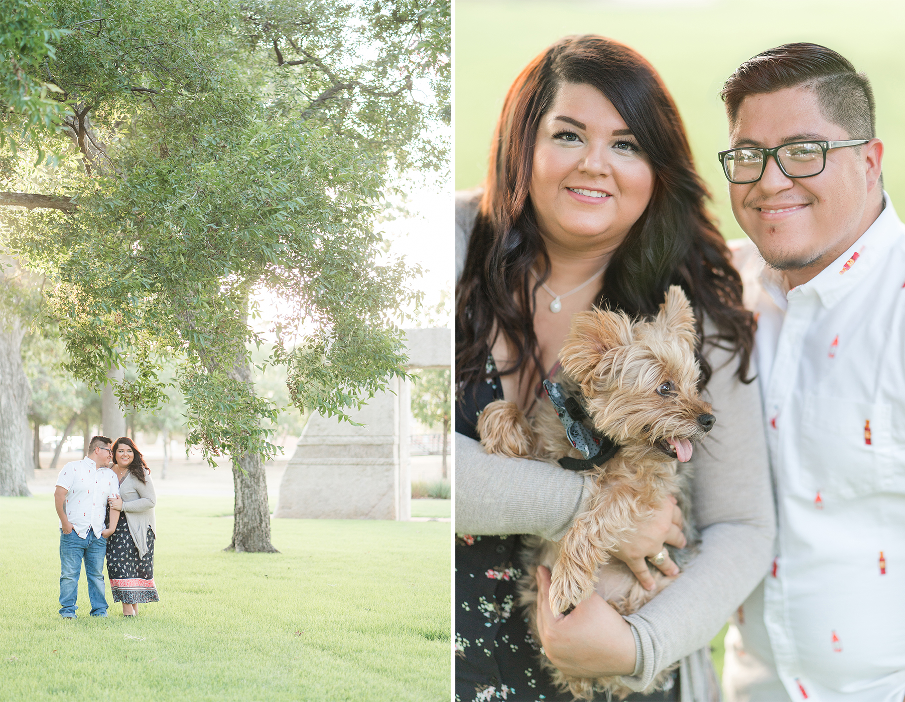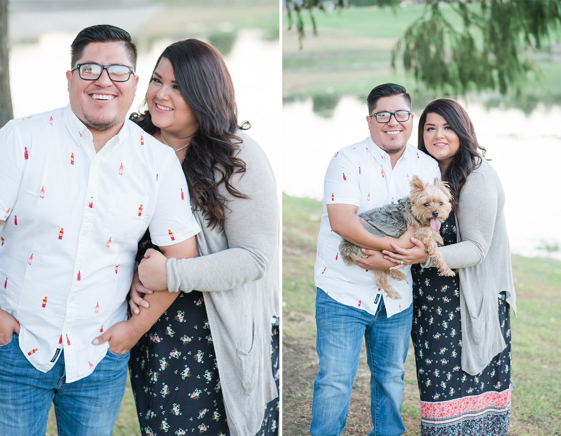 Globe Life Park is such a beautiful ballpark and I’m so glad we got to enjoy it’s awesomeness.  Does it not make the greatest backdrop for Christina + Salvador?!  After spending some time around the ballpark, we drove across the street to Richard Geene Linear Park for a change of scenery.  These Texas sunsets are something else!  It’s been a few years since I’ve done a session here and I forgot how much I love it!  There were people feeding the ducks and folks walking their dogs.  Butters was hilariously cute!  He totally eyeballed one dog until he got close enough to release his fury in very scary (sarcasm) little doggy barks.  : ) Don’t mess with Butters!  Ha!