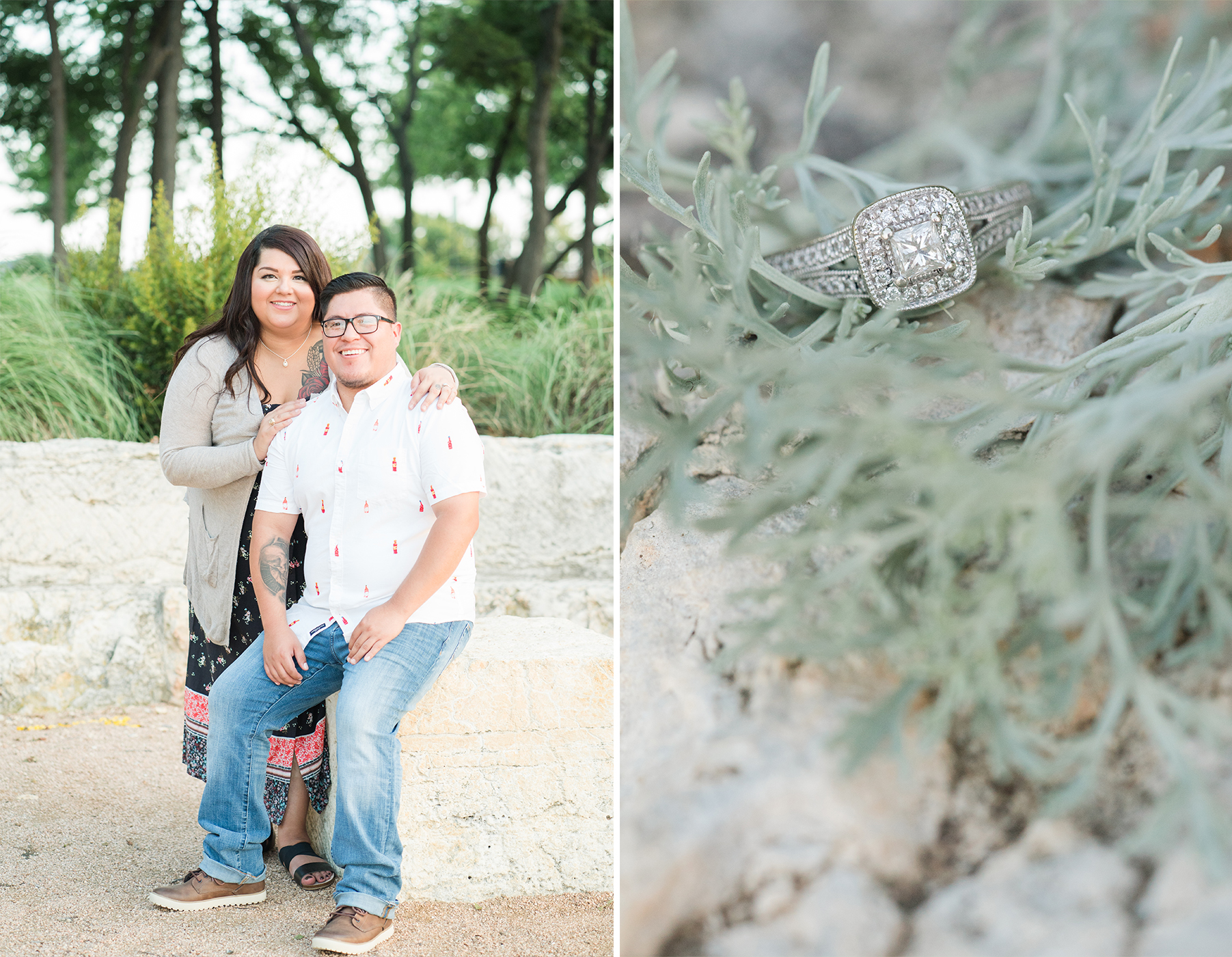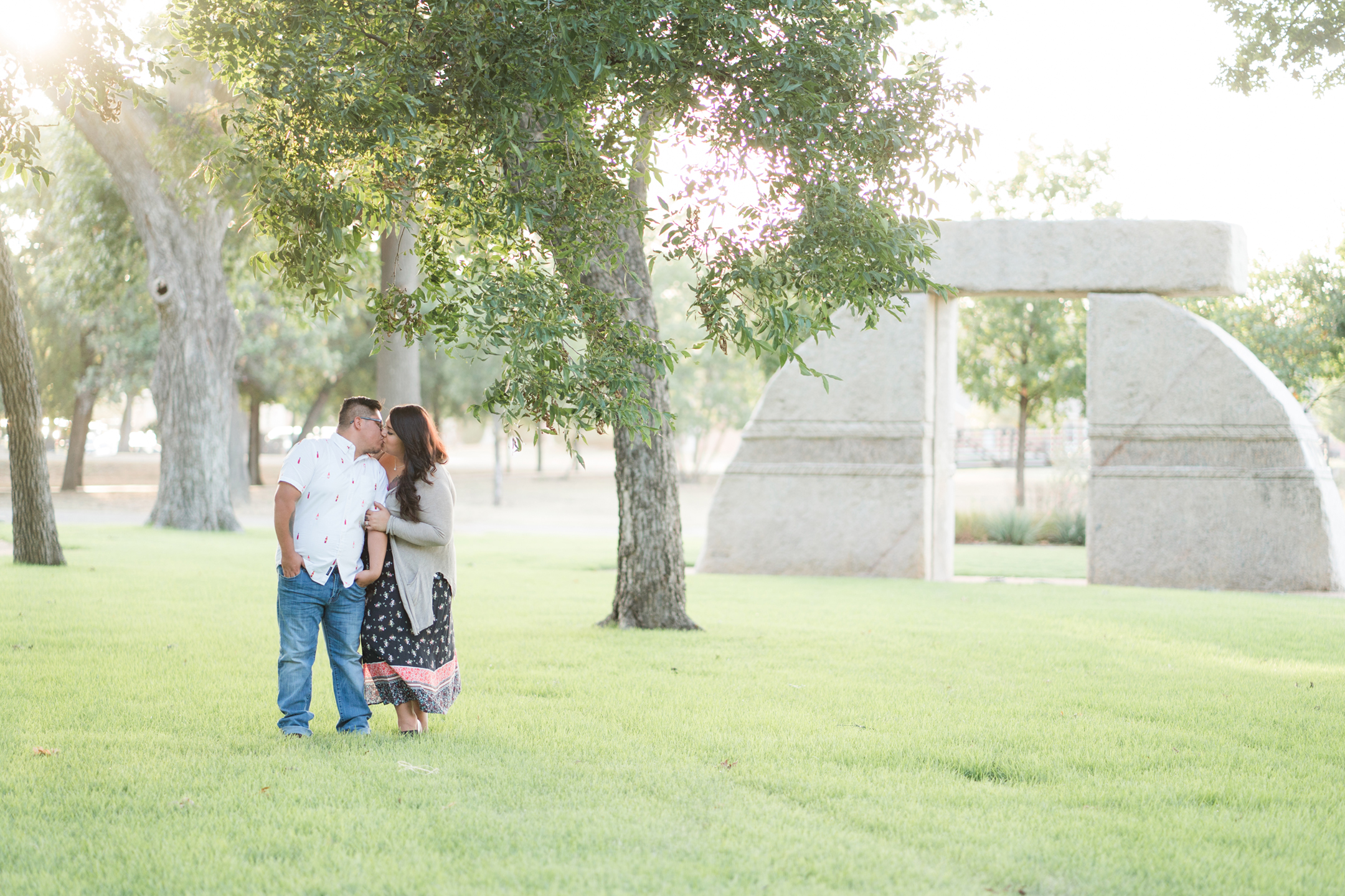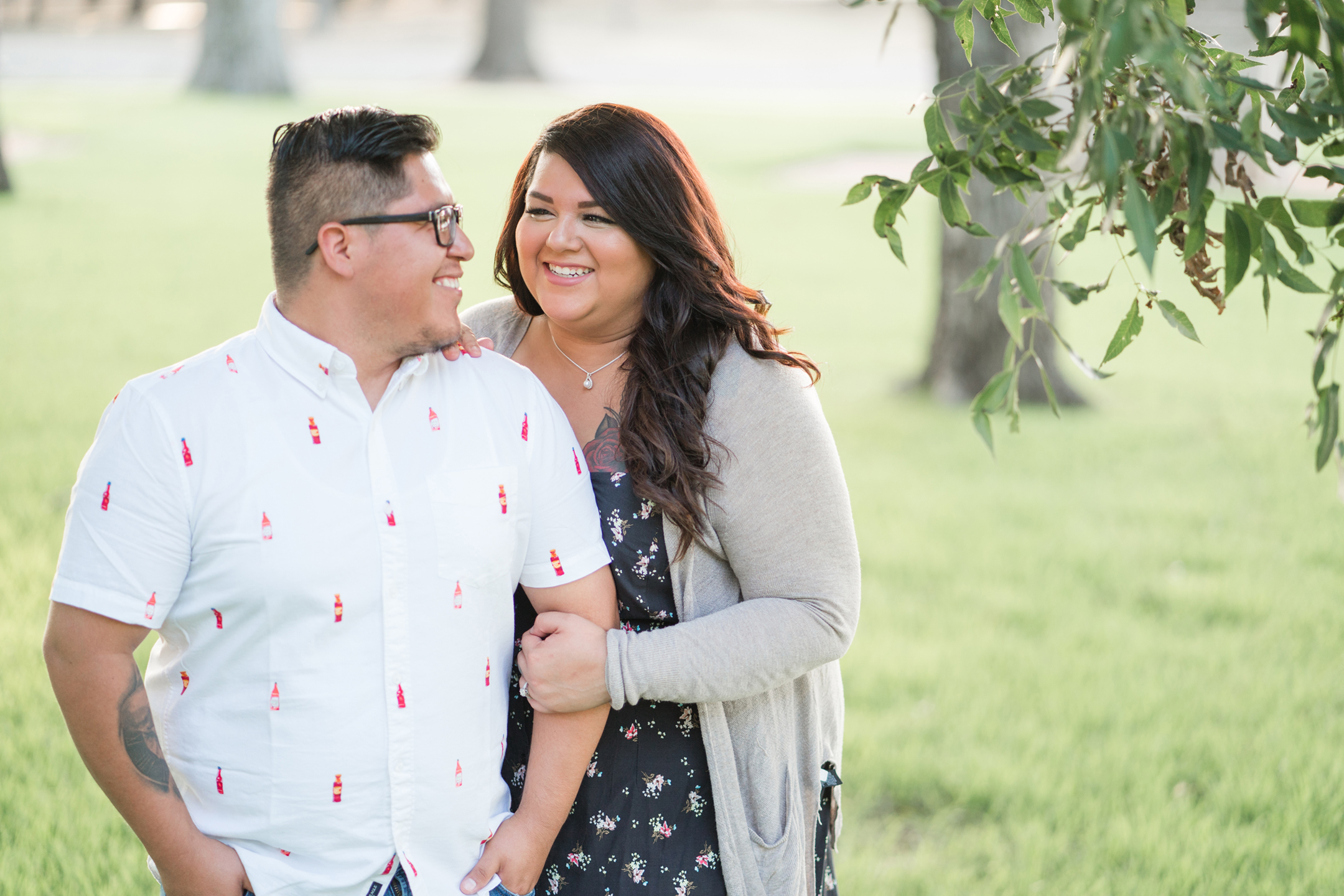 Globe Life Park is such a beautiful ballpark and I’m so glad we got to enjoy it’s awesomeness.  Does it not make the greatest backdrop for Christina + Salvador?!  After spending some time around the ballpark, we drove across the street to Richard Geene Linear Park for a change of scenery.  These Texas sunsets are something else!  It’s been a few years since I’ve done a session here and I forgot how much I love it!  There were people feeding the ducks and folks walking their dogs.  Butters was hilariously cute!  He totally eyeballed one dog until he got close enough to release his fury in very scary (sarcasm) little doggy barks.  : ) Don’t mess with Butters!  Ha!