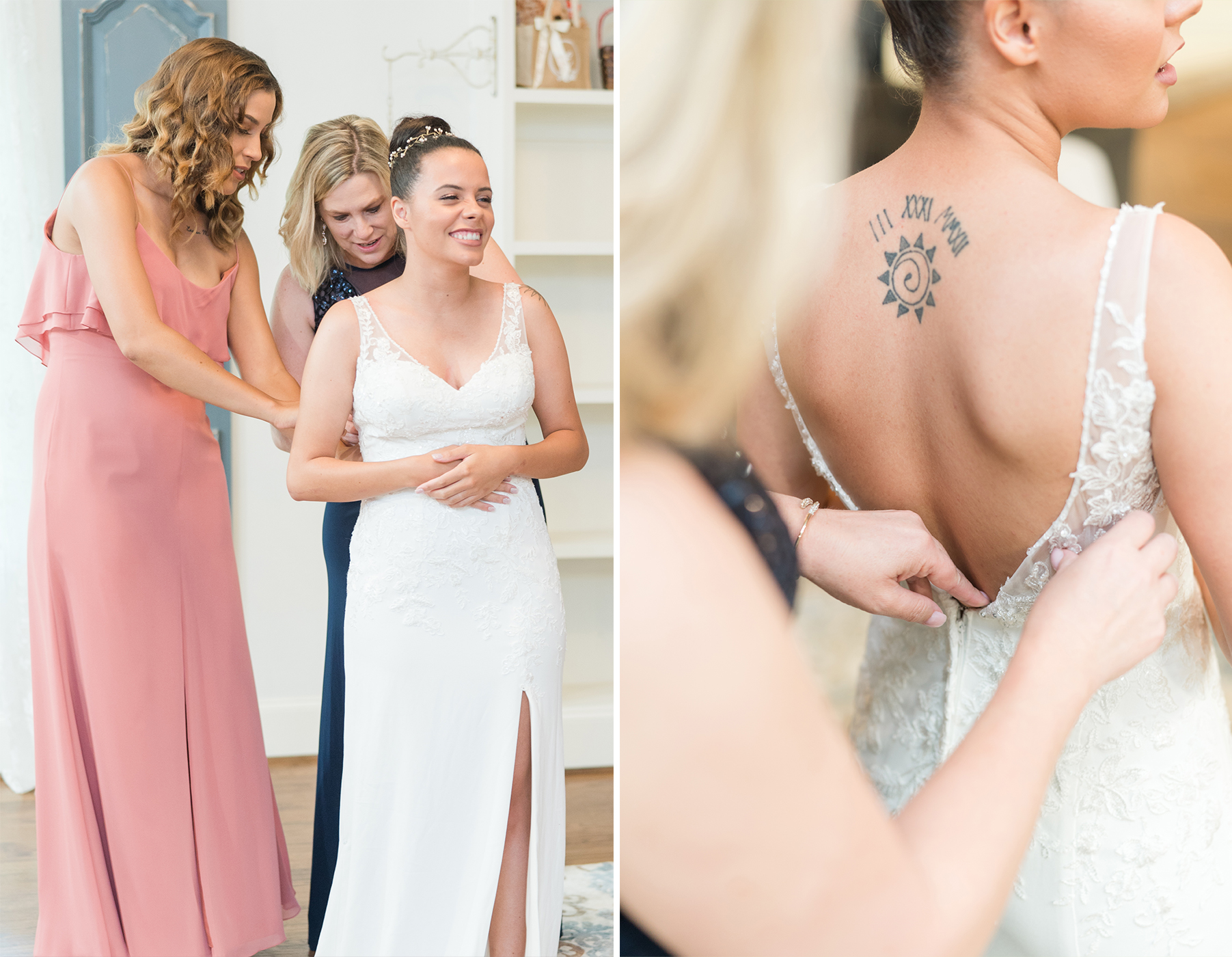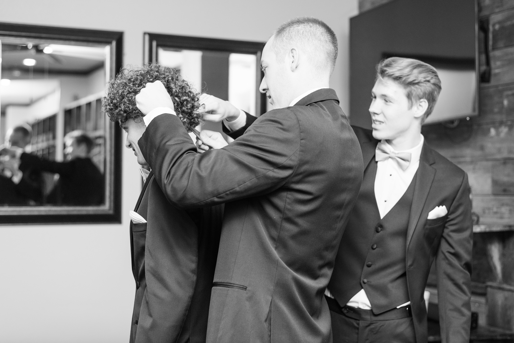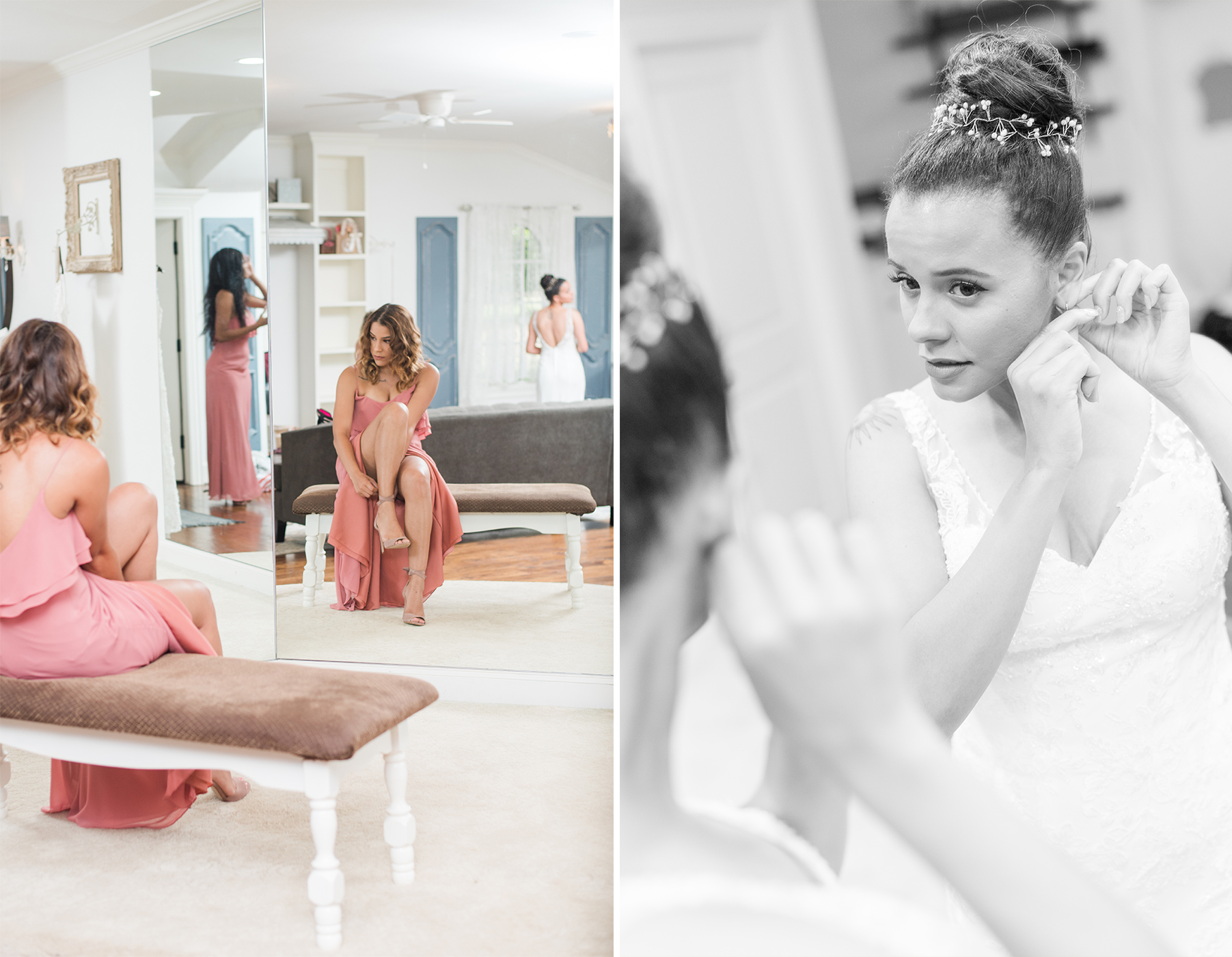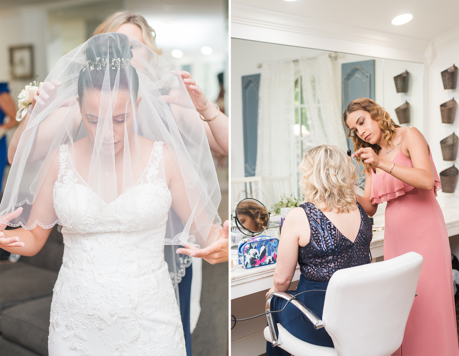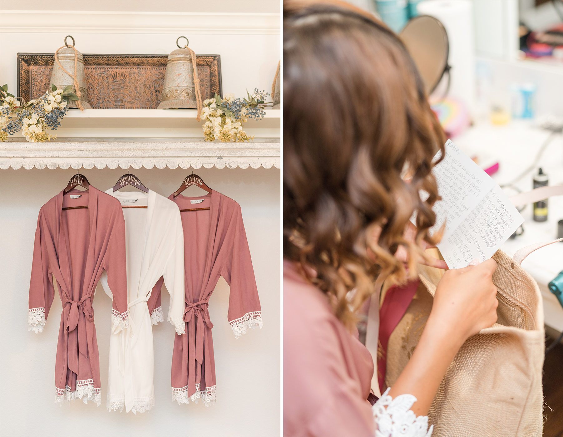 Seeing two families come together to make a wonderful day for a Bride and Groom is one of my favorite things in the world. Dominique’s mom should be a wedding decor expert! Didn’t she do an awesome job of decorating?! I was blown away! Dominique and her bridesmaids were relaxing in the bridal suite and were so welcoming and sweet! Love how close these girls are with each other. Before make-up began, each one of them had a bag specifically made for them by Dominque’s mom DeAnne! Love that!