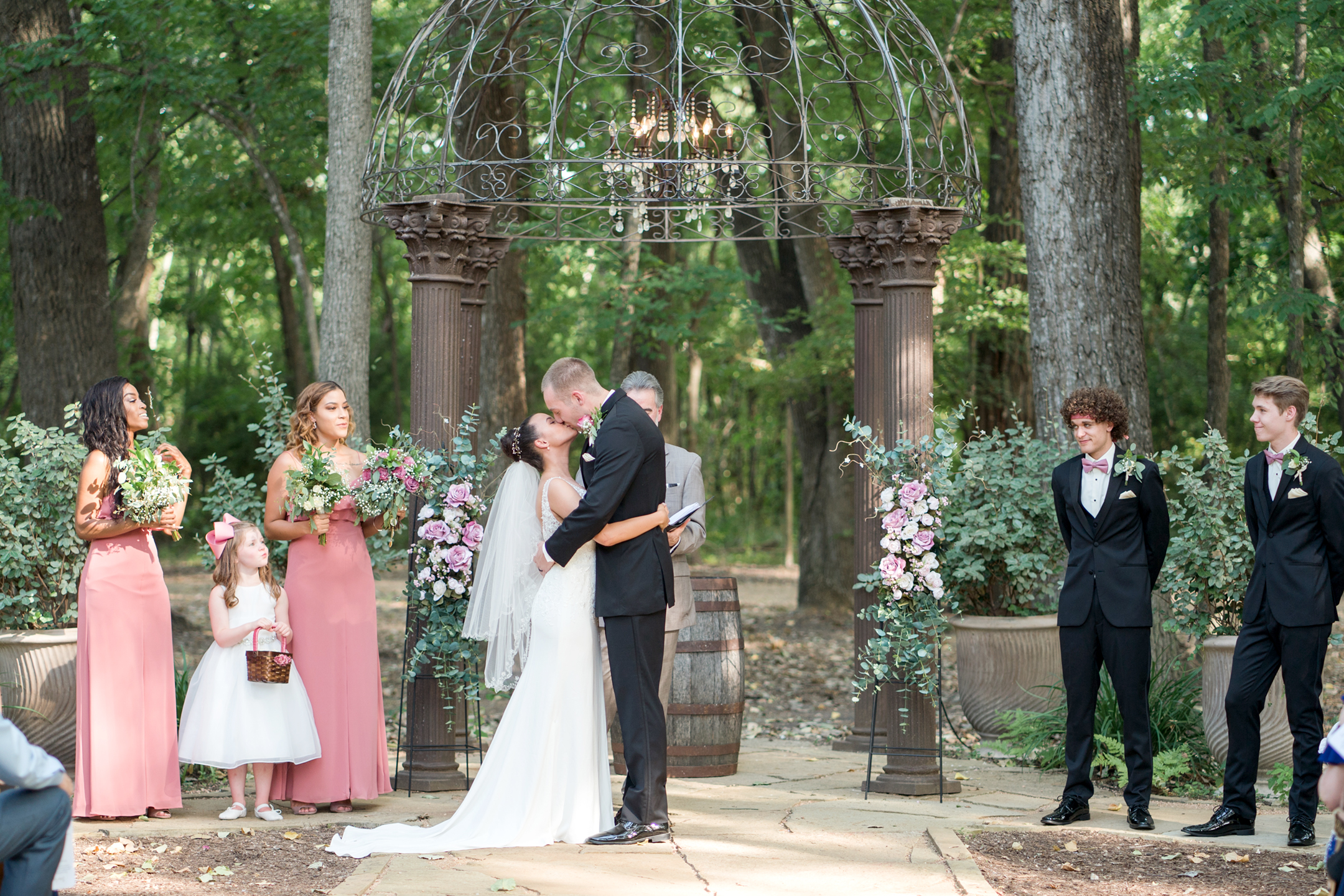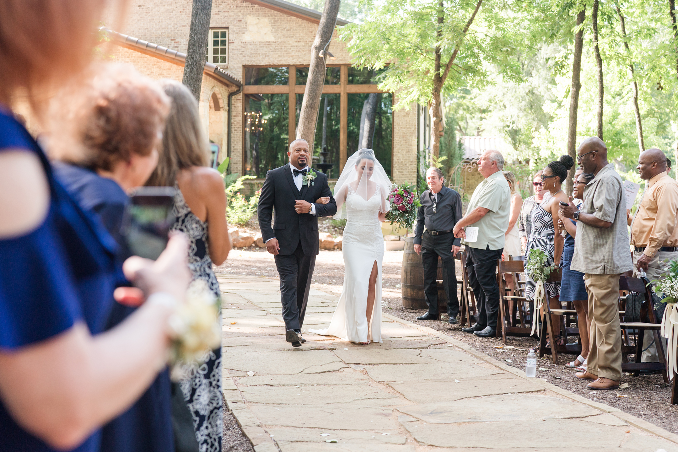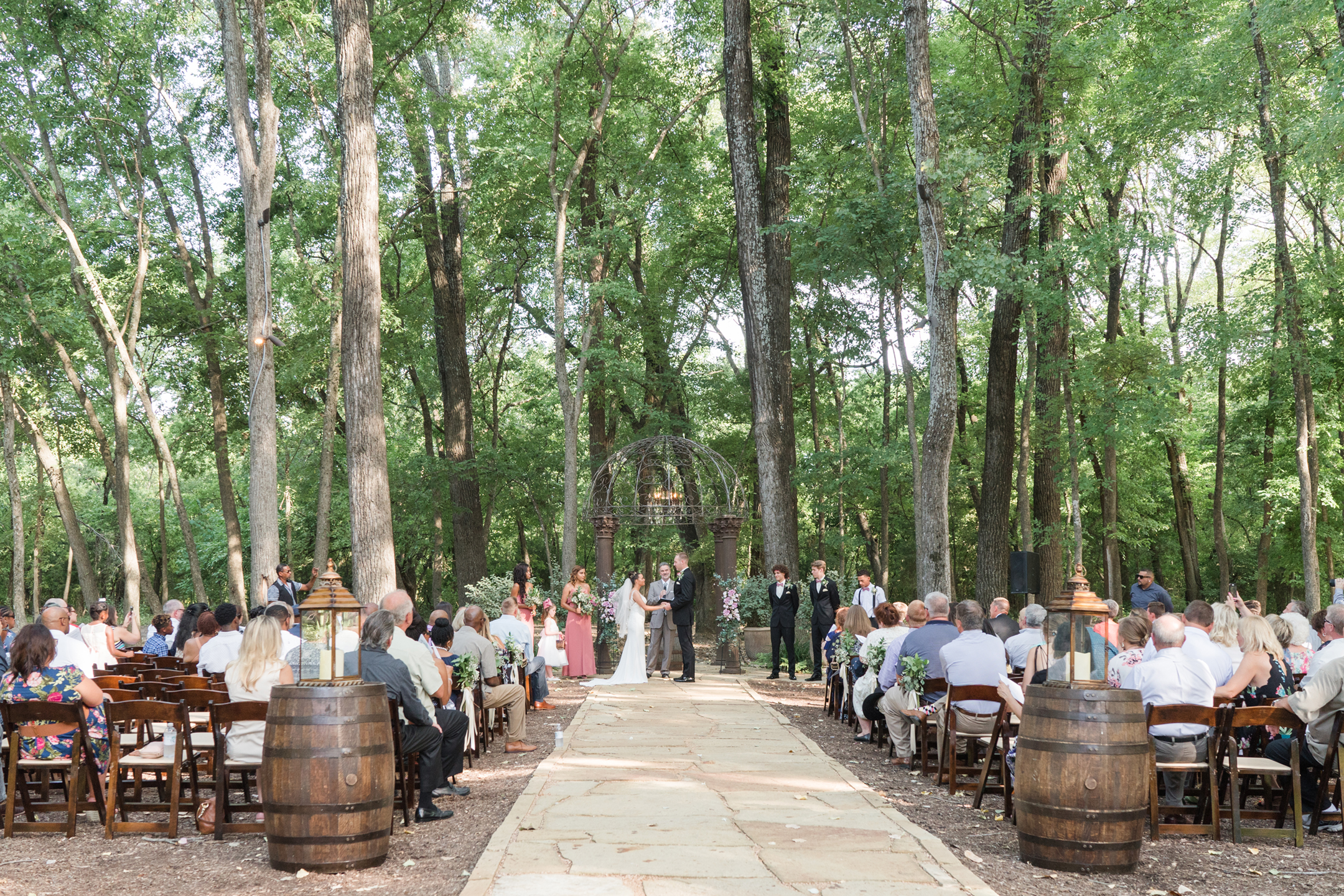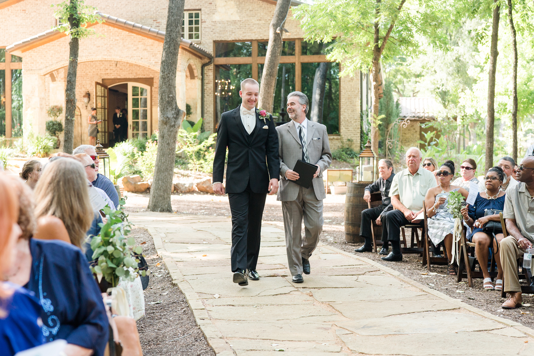 The ceremony was outside the reception hall and is covered in large bloomed trees. It was perfect because the temperature was close to 109 but it didn’t feel like that at all! Perfect for an outdoor Texas wedding! Lots of shade. 🙂 One of the many reasons why Hidden Waters in Waxahachie is amazing!