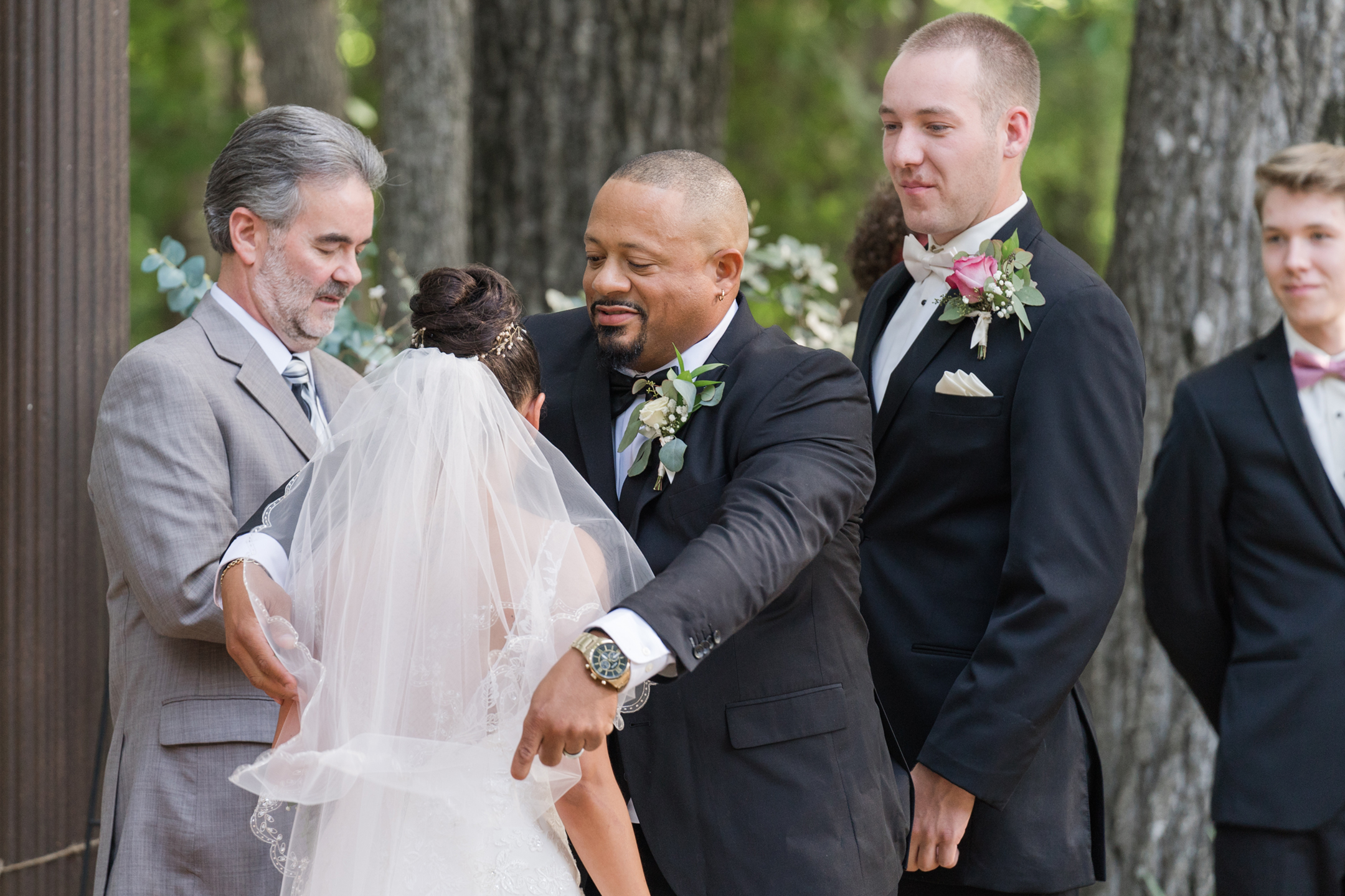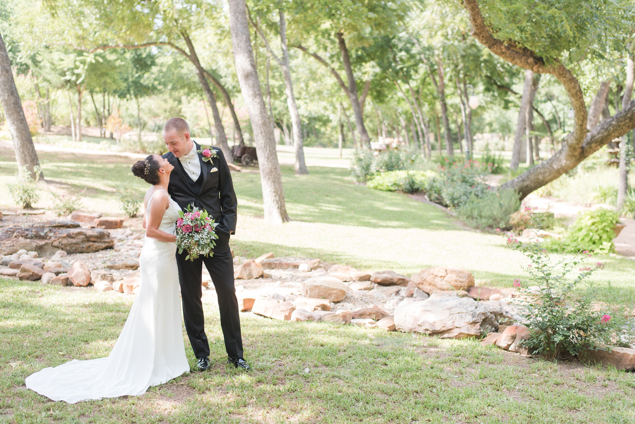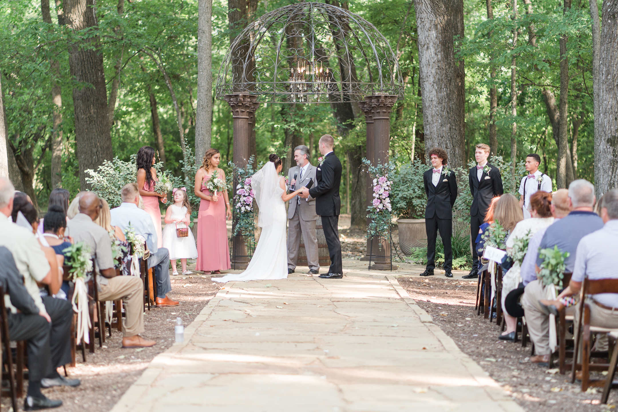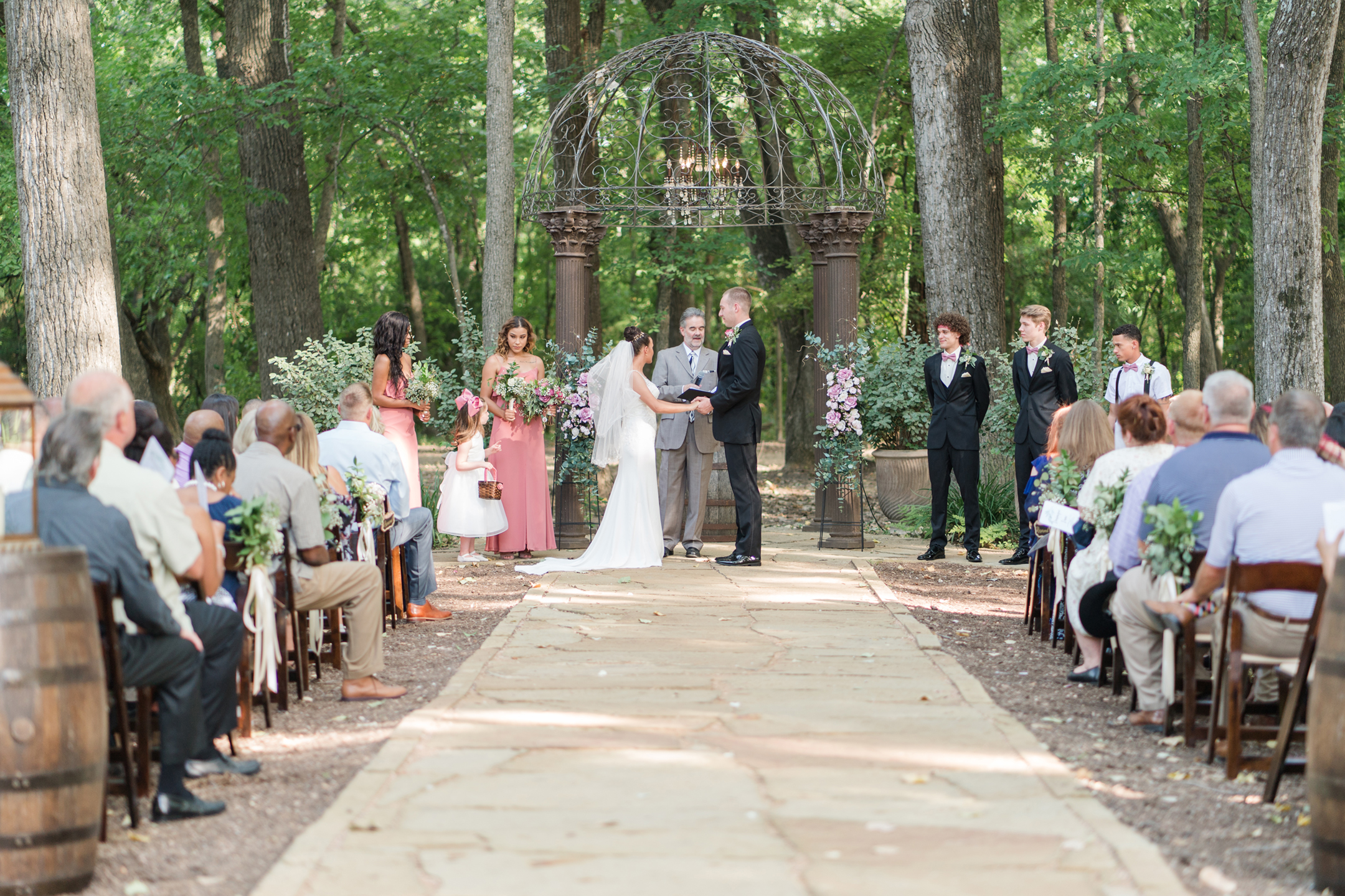 The ceremony was outside the reception hall and is covered in large bloomed trees. It was perfect because the temperature was close to 109 but it didn’t feel like that at all! Perfect for an outdoor Texas wedding! Lots of shade. 🙂 One of the many reasons why Hidden Waters in Waxahachie is amazing!