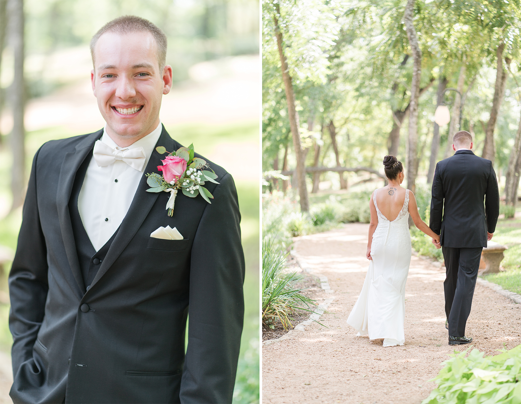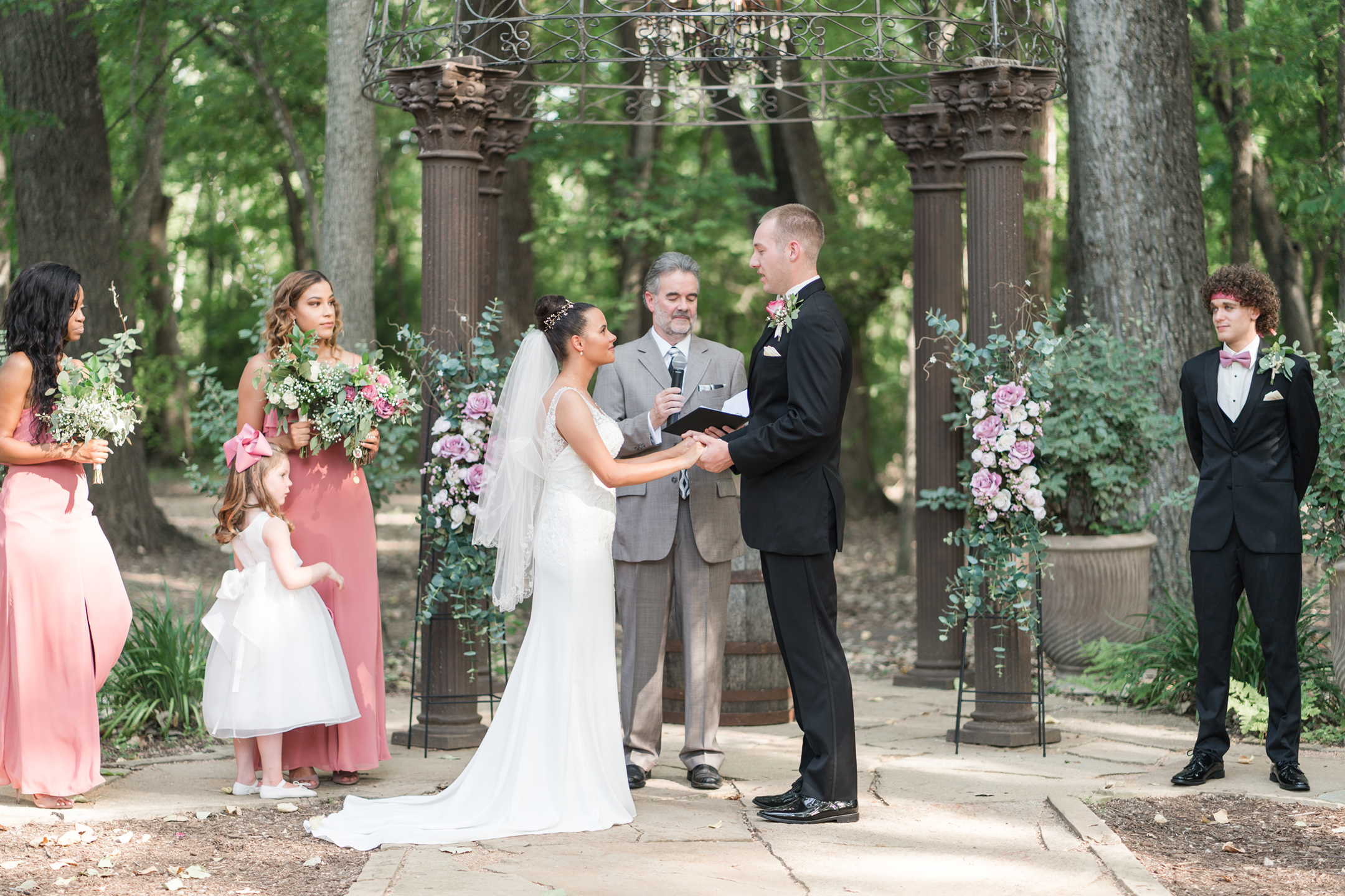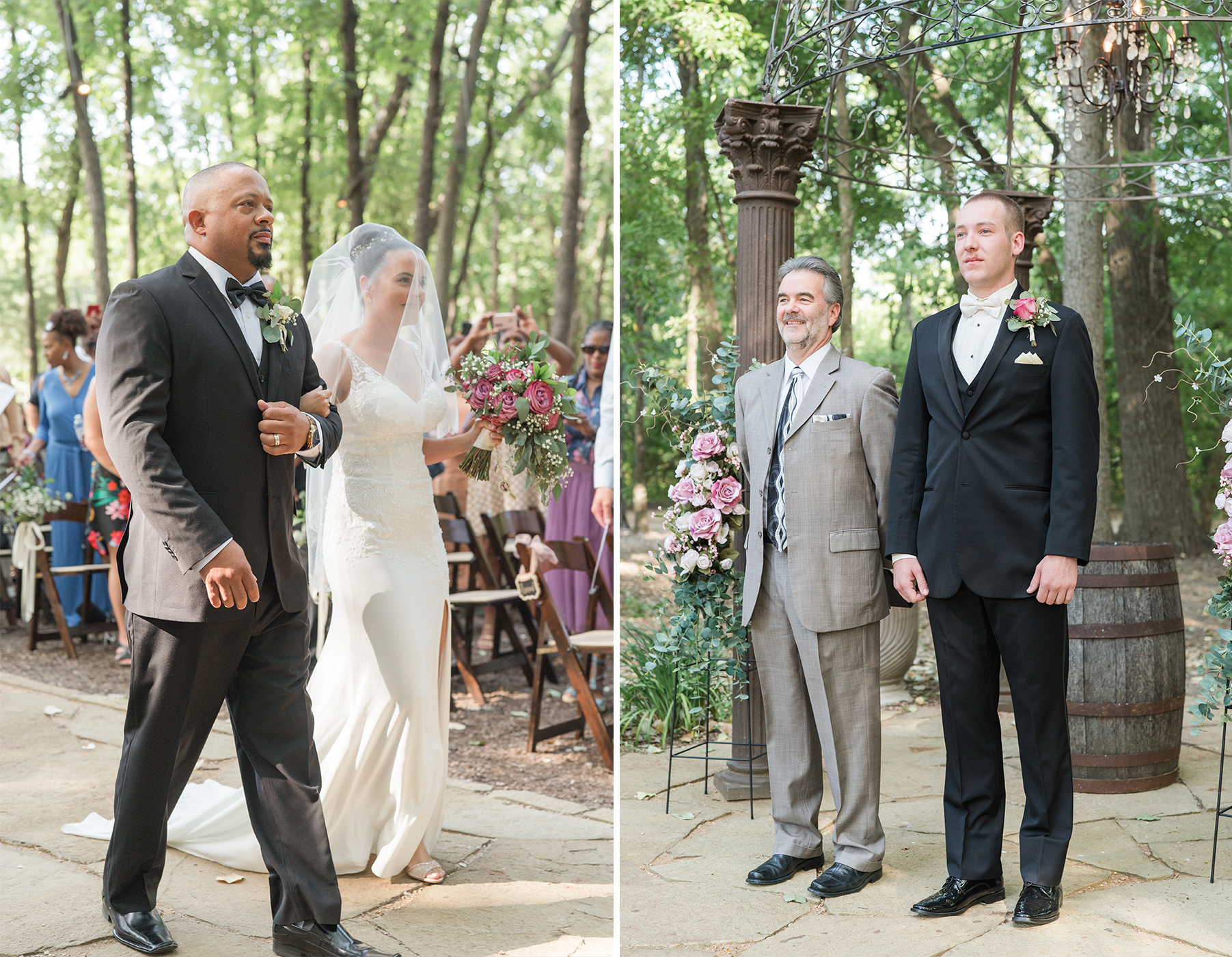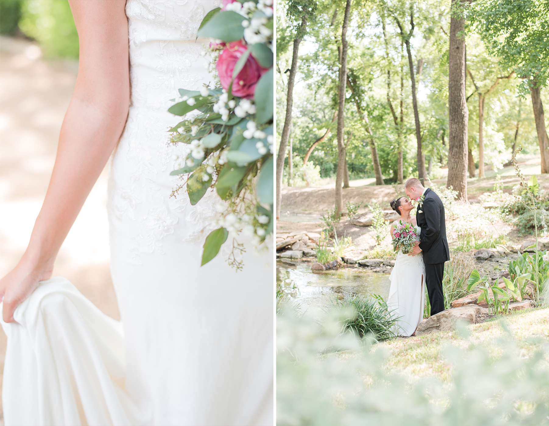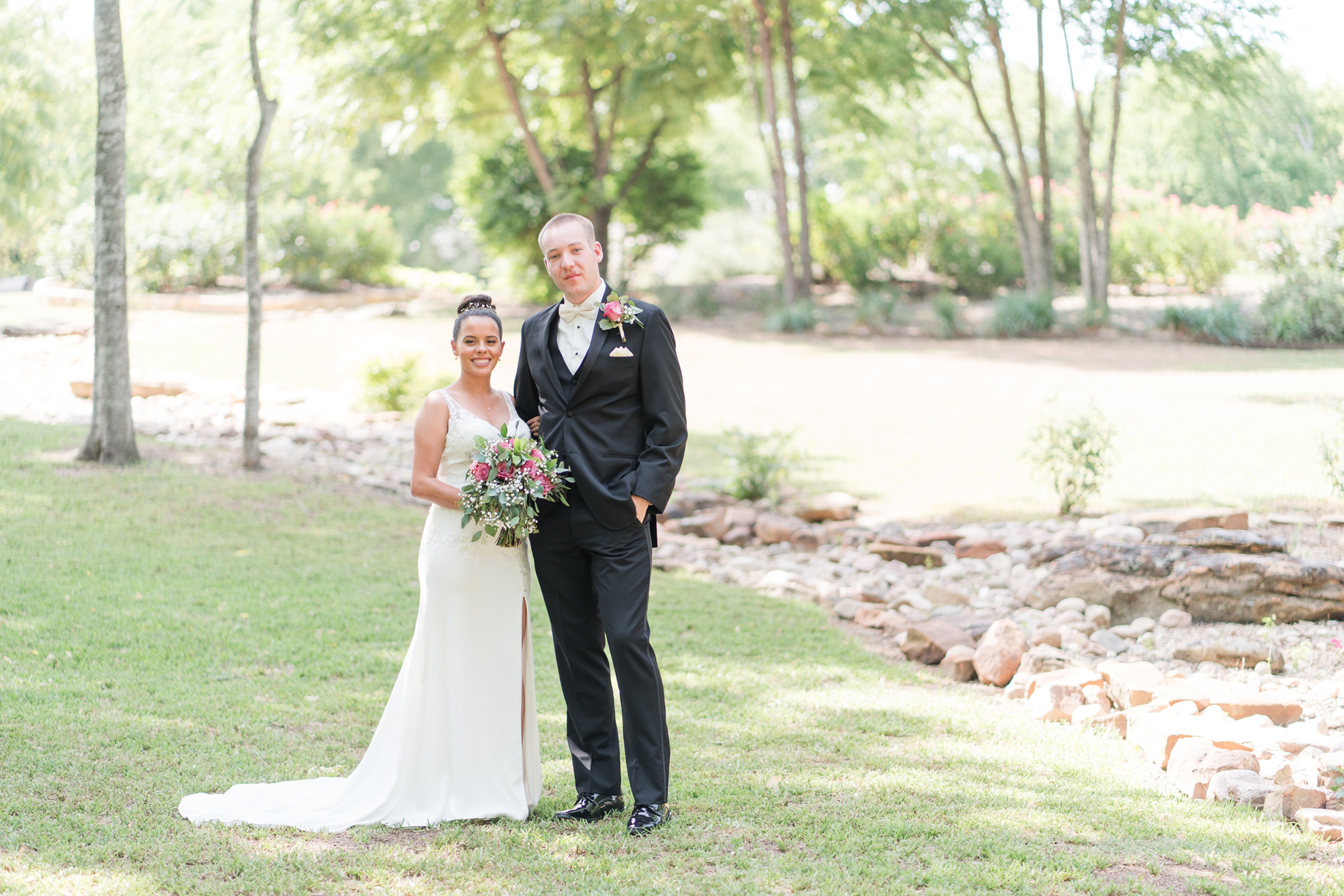 The ceremony was outside the reception hall and is covered in large bloomed trees. It was perfect because the temperature was close to 109 but it didn’t feel like that at all! Perfect for an outdoor Texas wedding! Lots of shade. 🙂 One of the many reasons why Hidden Waters in Waxahachie is amazing!