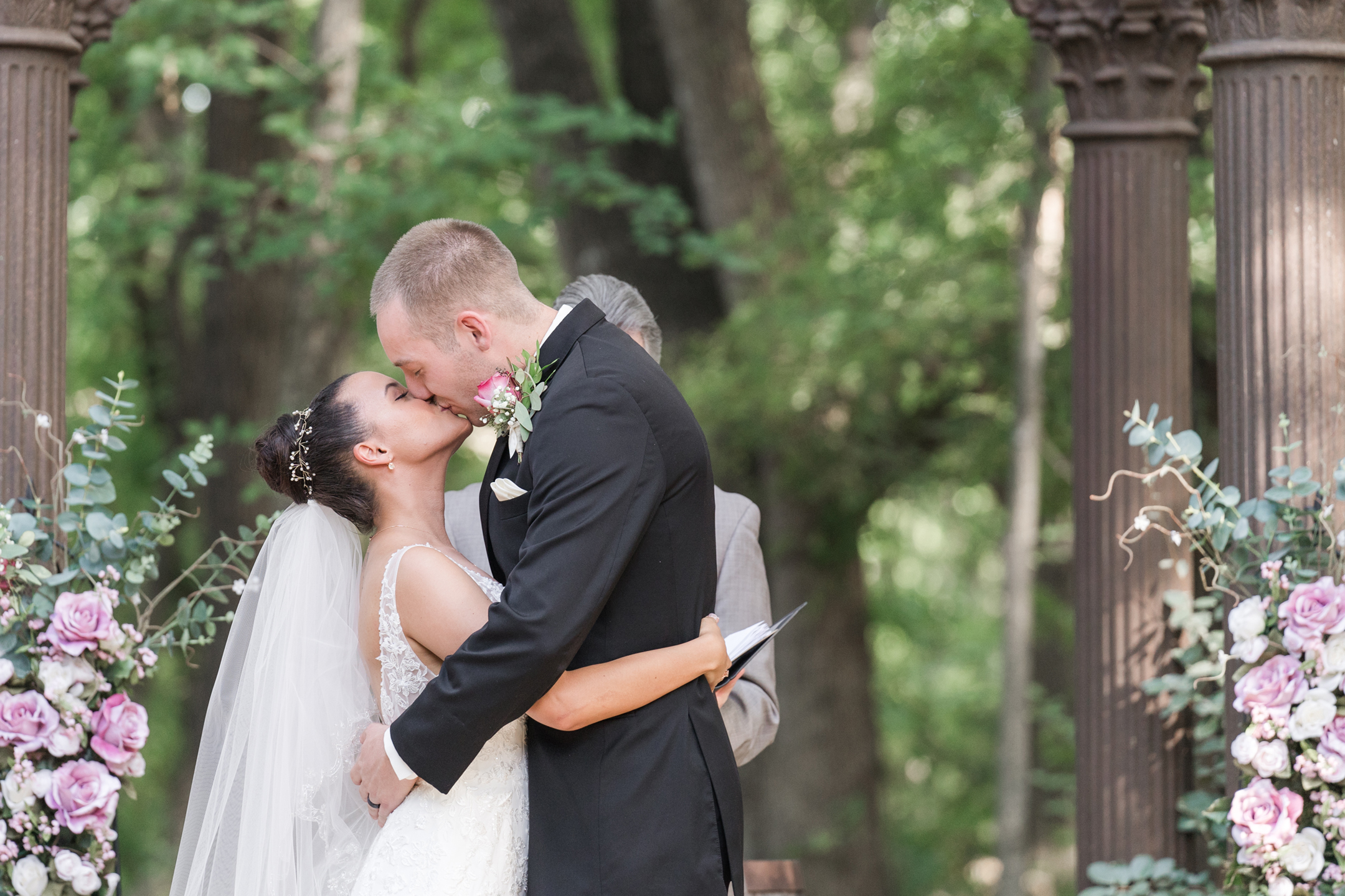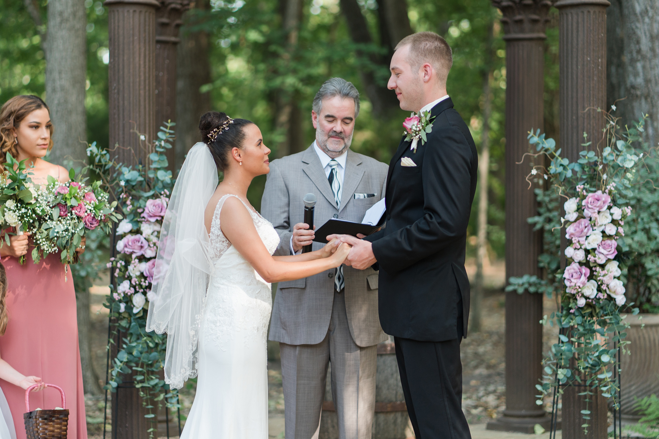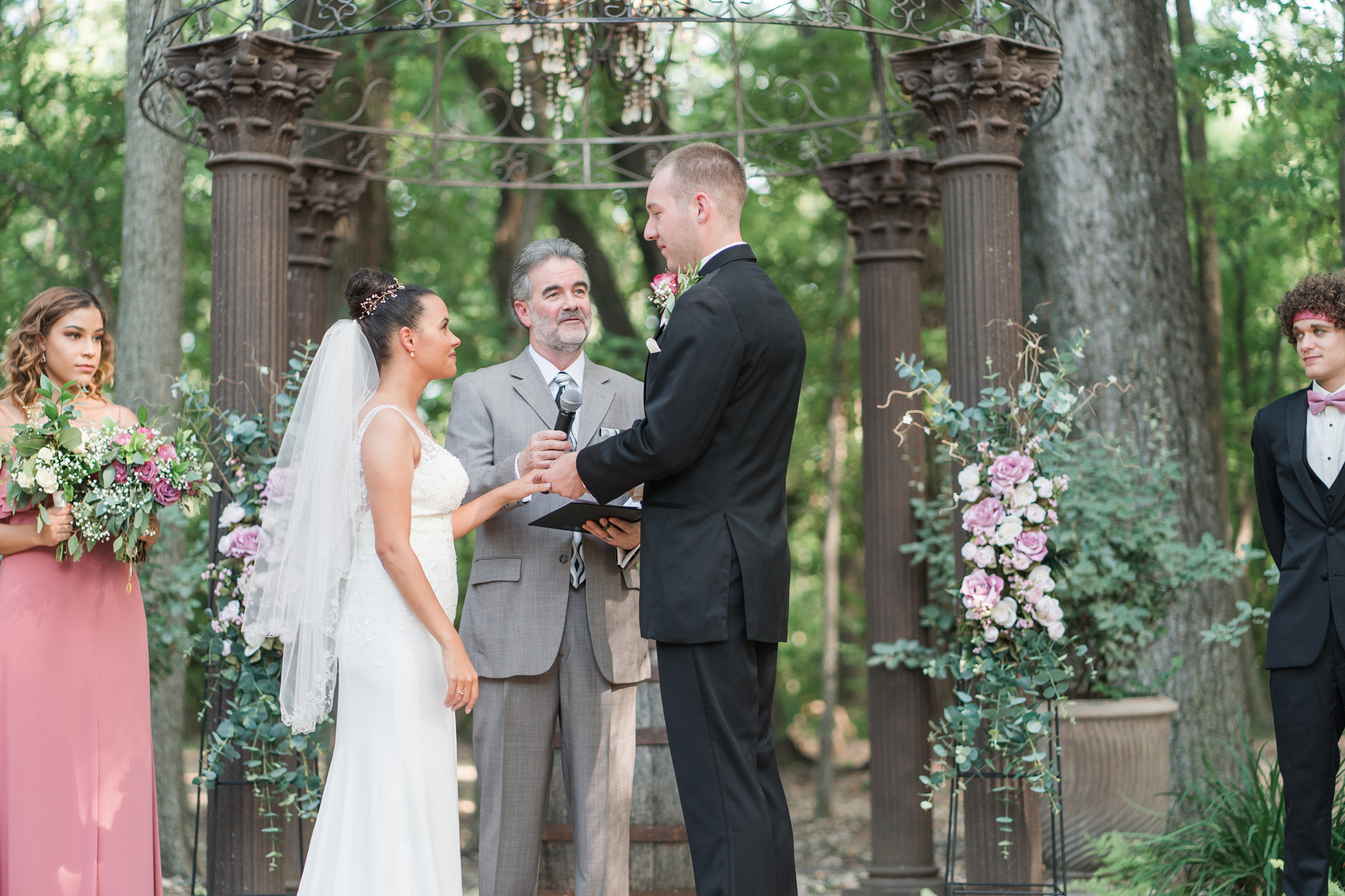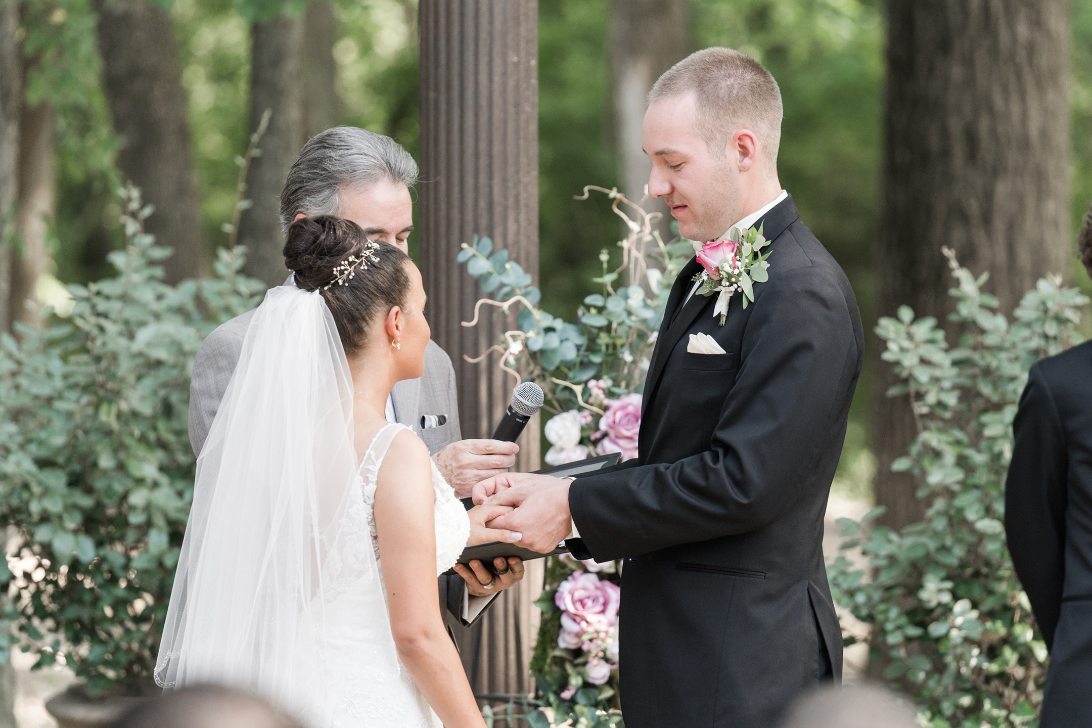 The ceremony was outside the reception hall and is covered in large bloomed trees. It was perfect because the temperature was close to 109 but it didn’t feel like that at all! Perfect for an outdoor Texas wedding! Lots of shade. 🙂 One of the many reasons why Hidden Waters in Waxahachie is amazing!