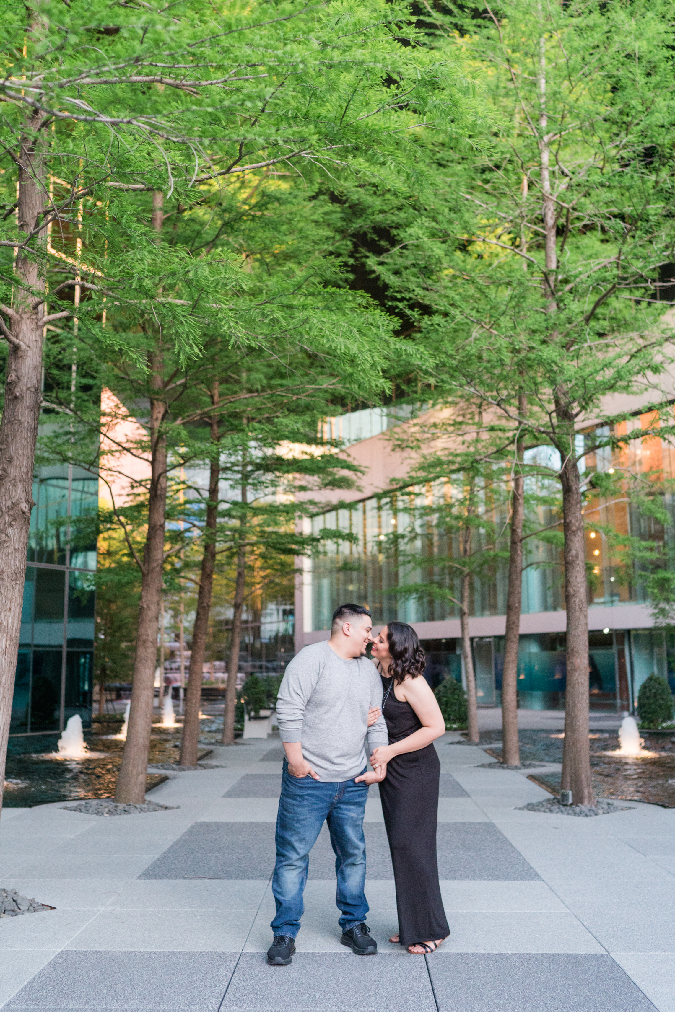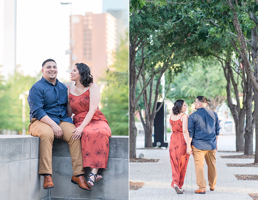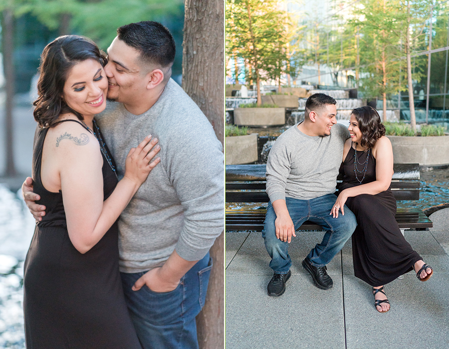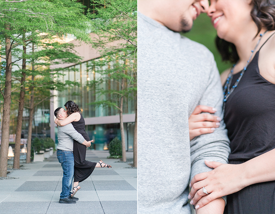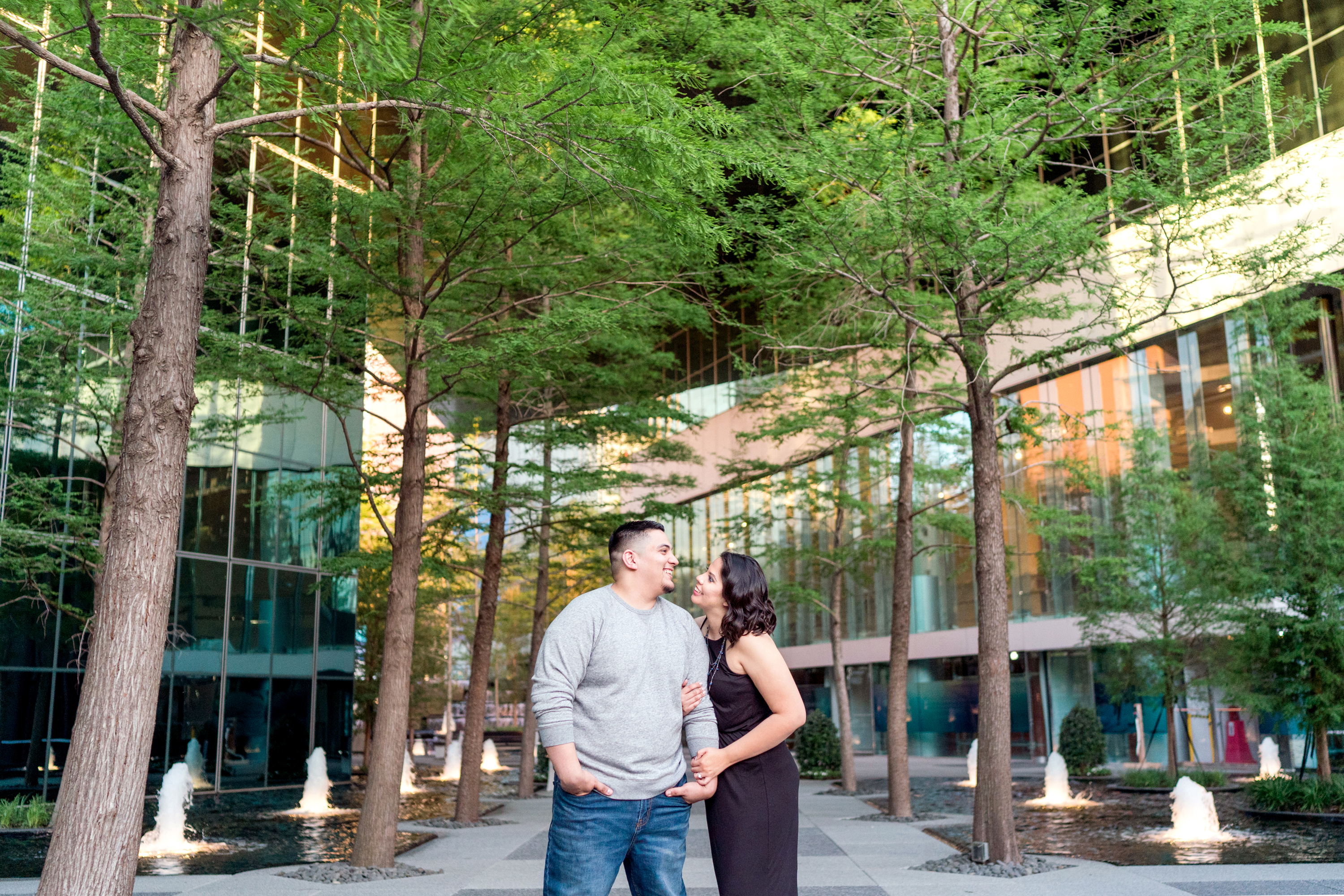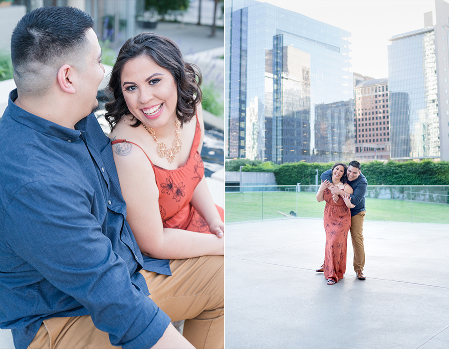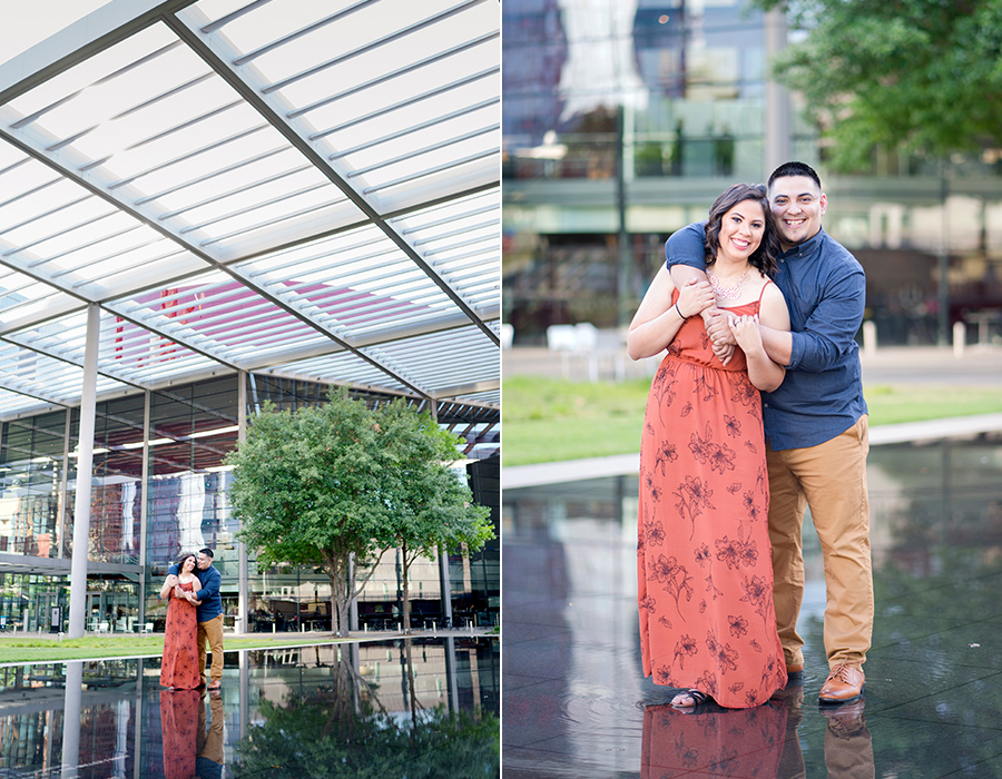Philip and I met Elizabeth + Anthony at the AT&T Performing Arts Theatre in Dallas for their engagement session last Sunday.  I have been wanting to shoot here for some time and I’ll tell you what, it was worth the wait!  Elizabeth was so awesome!  When we were discussing possible locations, she suggested for me to suggest somewhere that I have been wanting to shoot!  I love the complete trust that I receive from my couples!  There was quite a bit going on and lots of people roaming about in true Dallas fashion but we were in our own world and it shows!  After a little time at the Performing Arts Center, we made the very short drive to the Fountain Place!  I could hang out here all day!