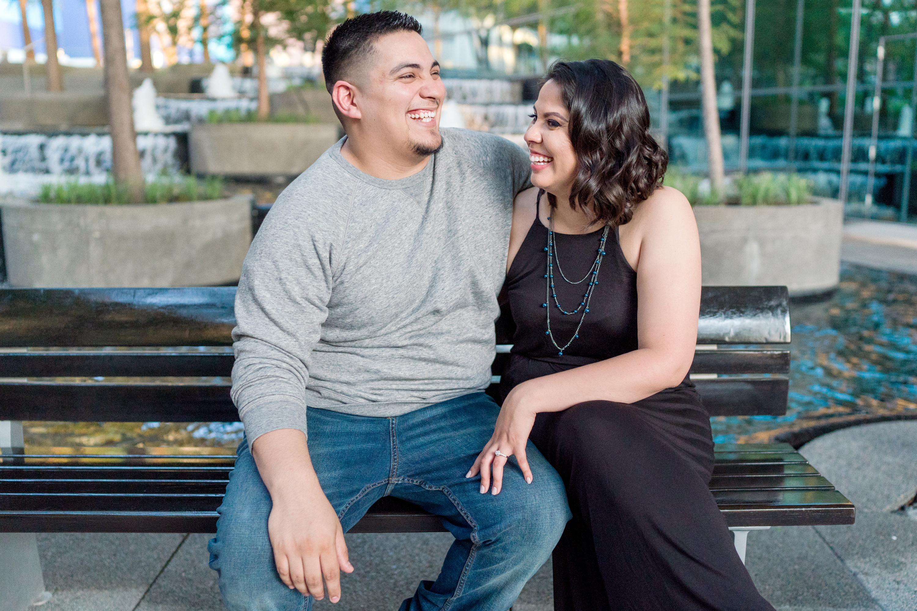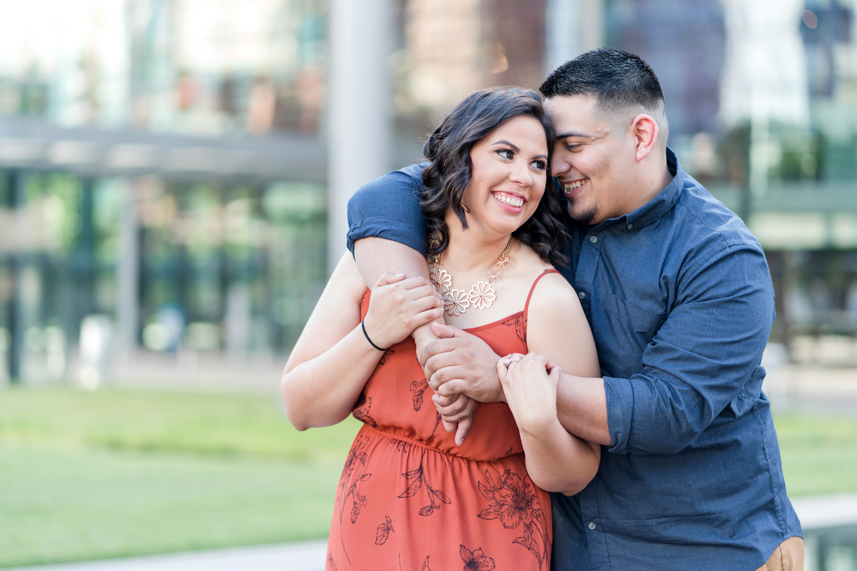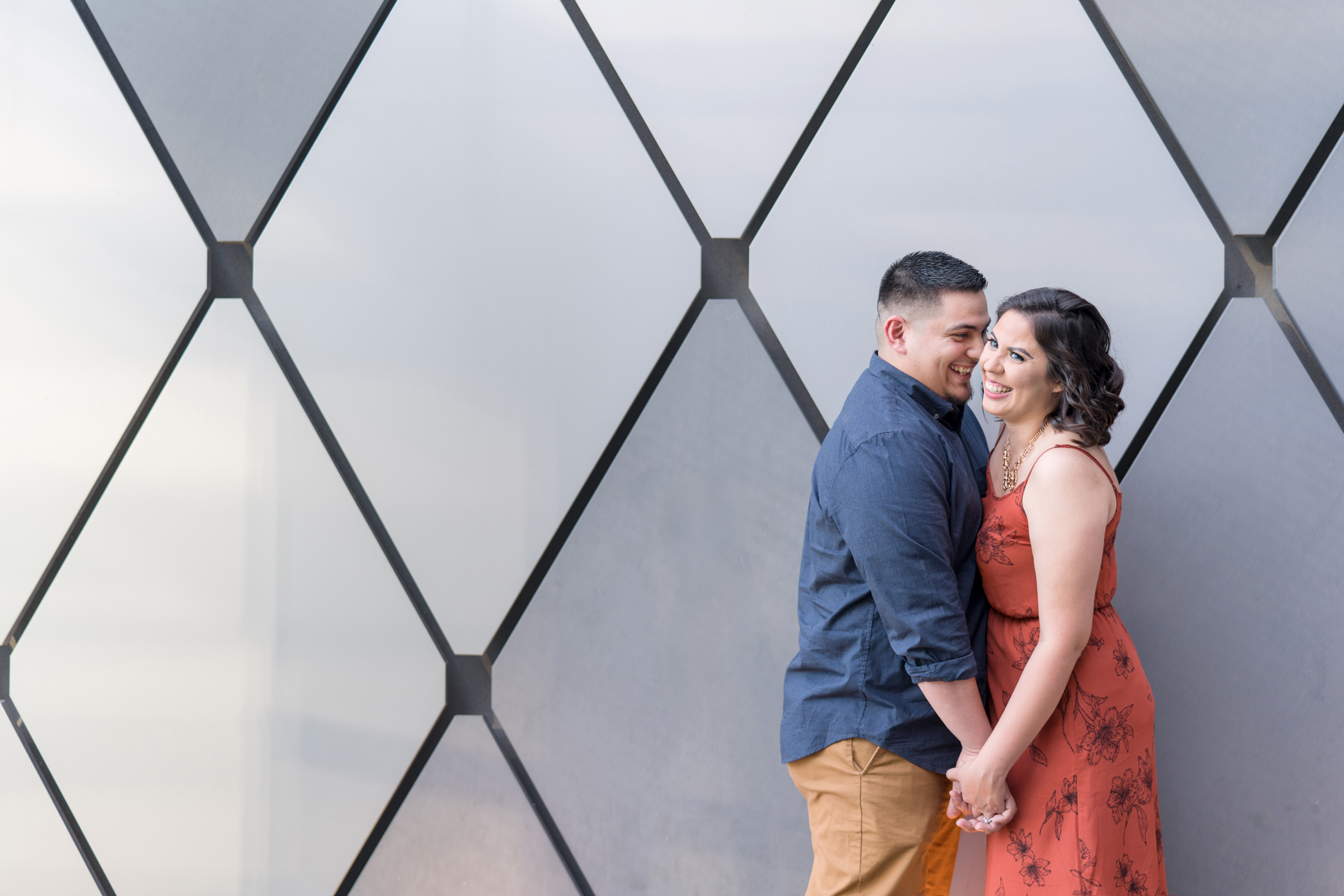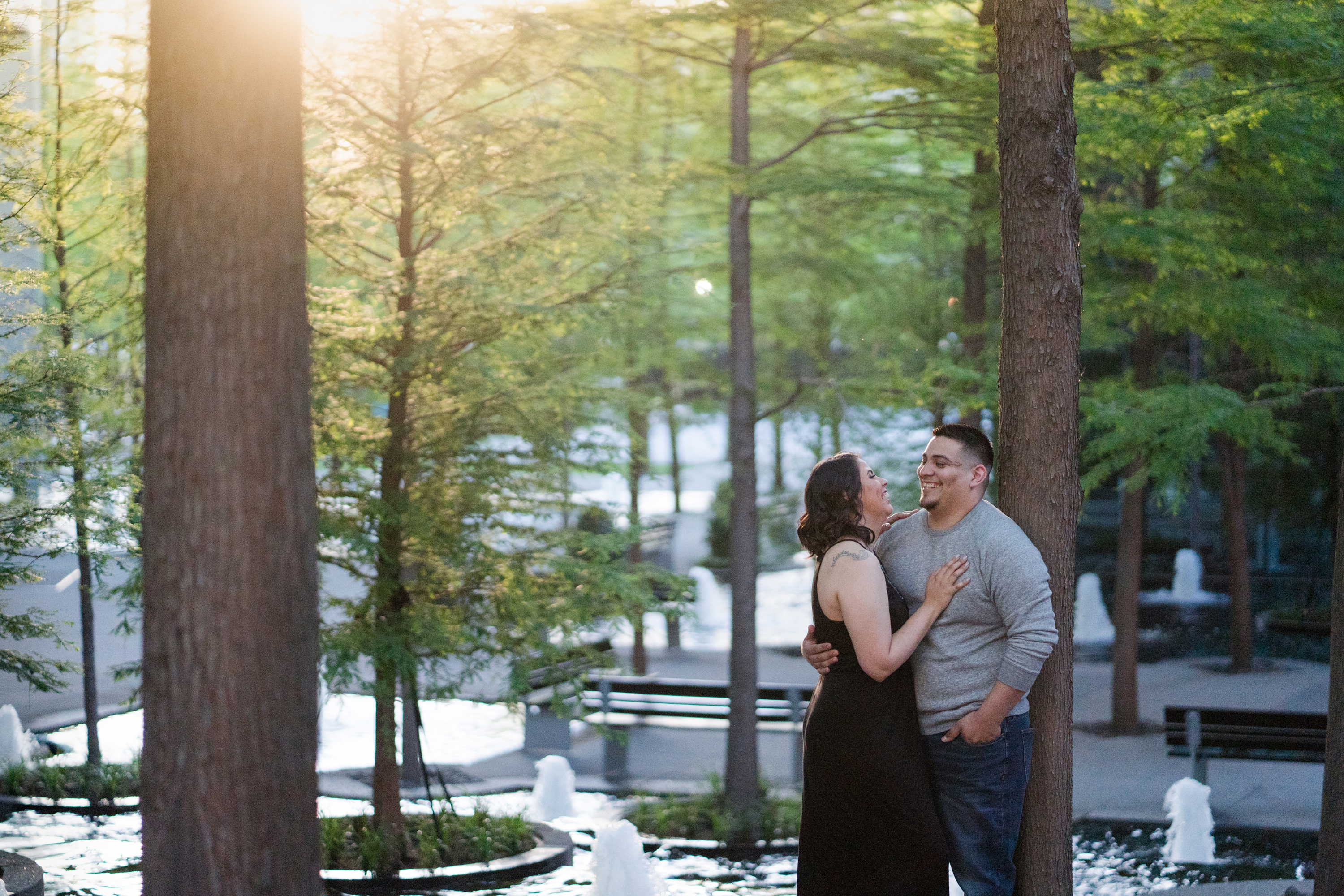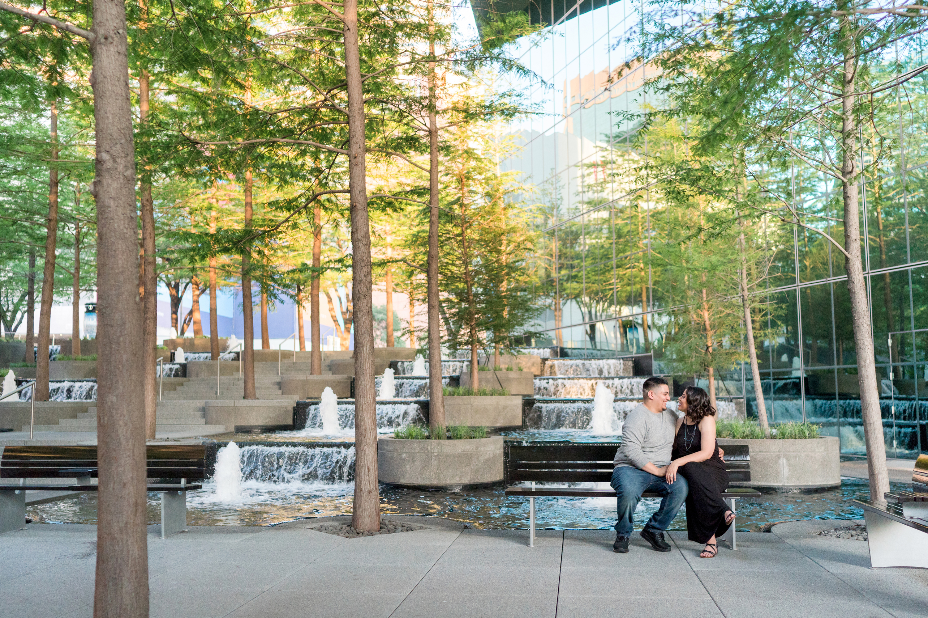 Philip and I met Elizabeth + Anthony at the AT&T Performing Arts Theatre in Dallas for their engagement session last Sunday.  I have been wanting to shoot here for some time and I’ll tell you what, it was worth the wait!  Elizabeth was so awesome!  When we were discussing possible locations, she suggested for me to suggest somewhere that I have been wanting to shoot!  I love the complete trust that I receive from my couples!  There was quite a bit going on and lots of people roaming about in true Dallas fashion but we were in our own world and it shows!  After a little time at the Performing Arts Center, we made the very short drive to the Fountain Place!  I could hang out here all day!