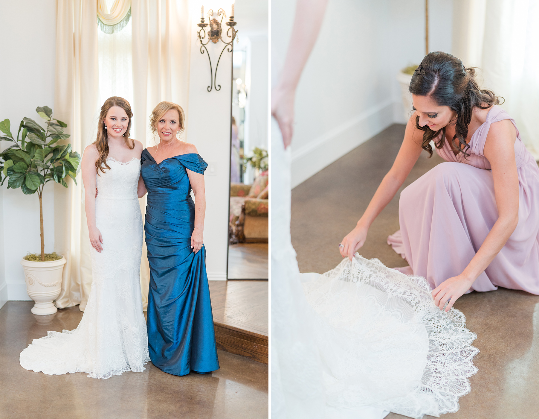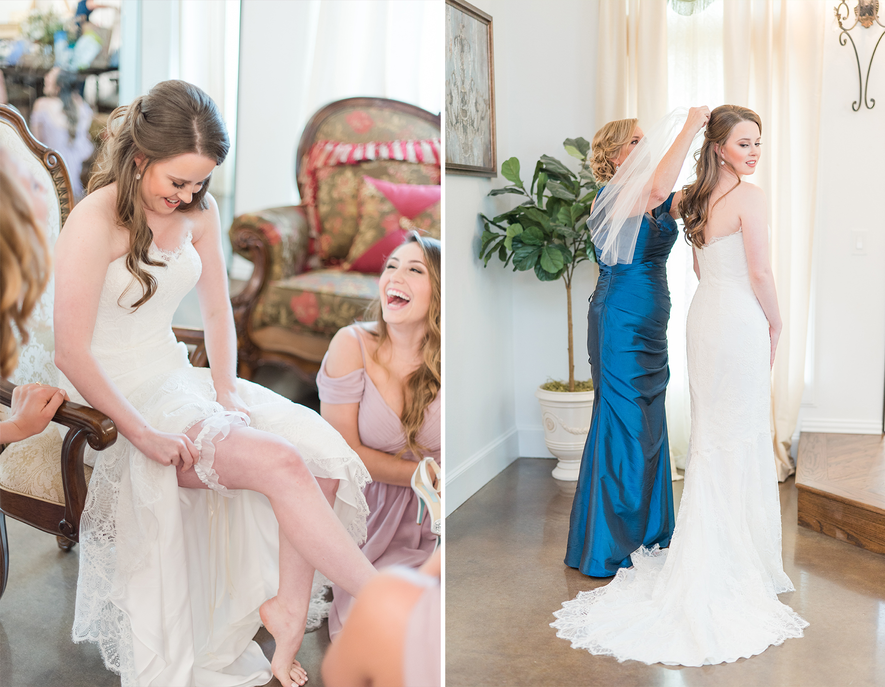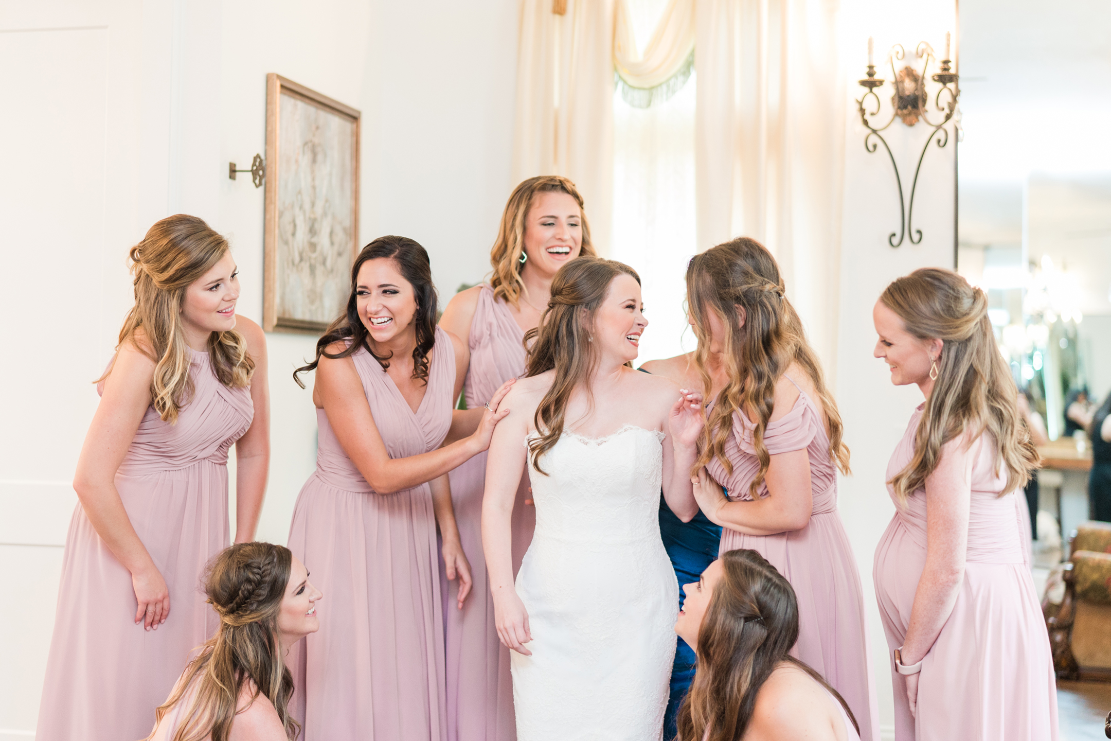 Emily and her Bride Tribe were in full swing of hair and makeup at her parents home in Garland when I arrived. I LOVE it when I walk into a room and I’m greeted with lots of hellos and smiles! You know it’s going to be a fabulous day when you feel like you are one of the girls! And this team of makeup and hair artists was on point! Not only did they do an amazing job, they had a schedule and were right on time!