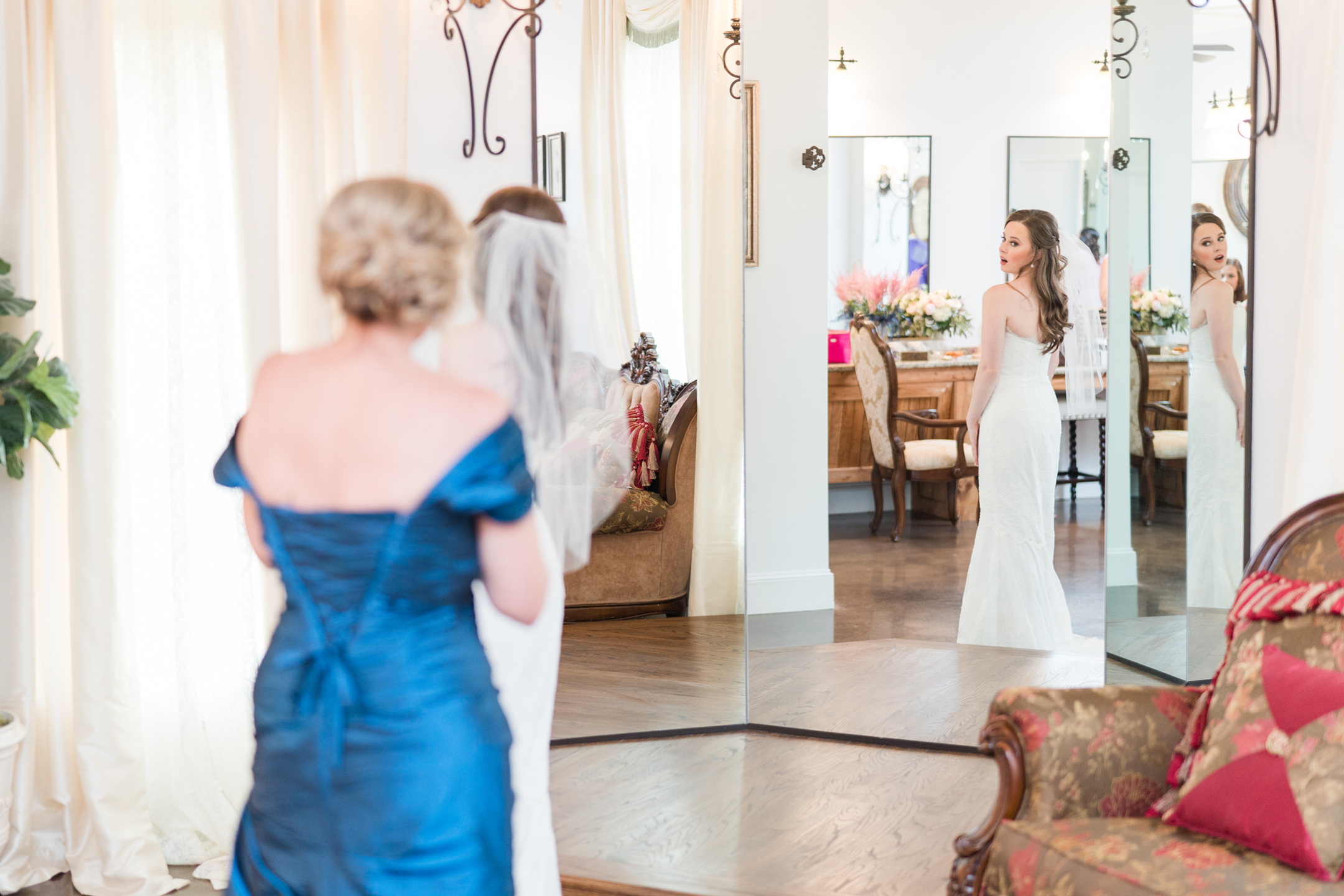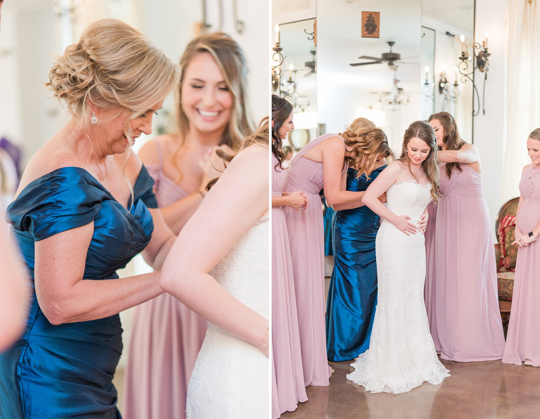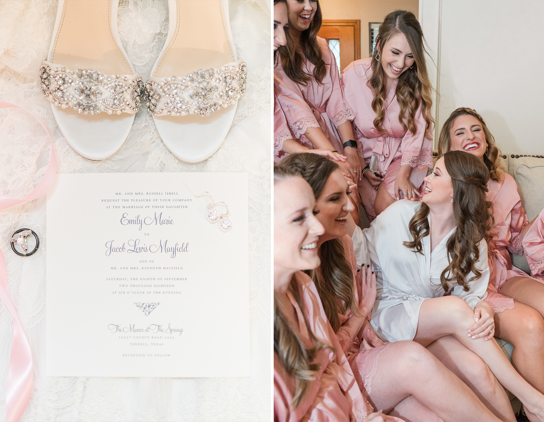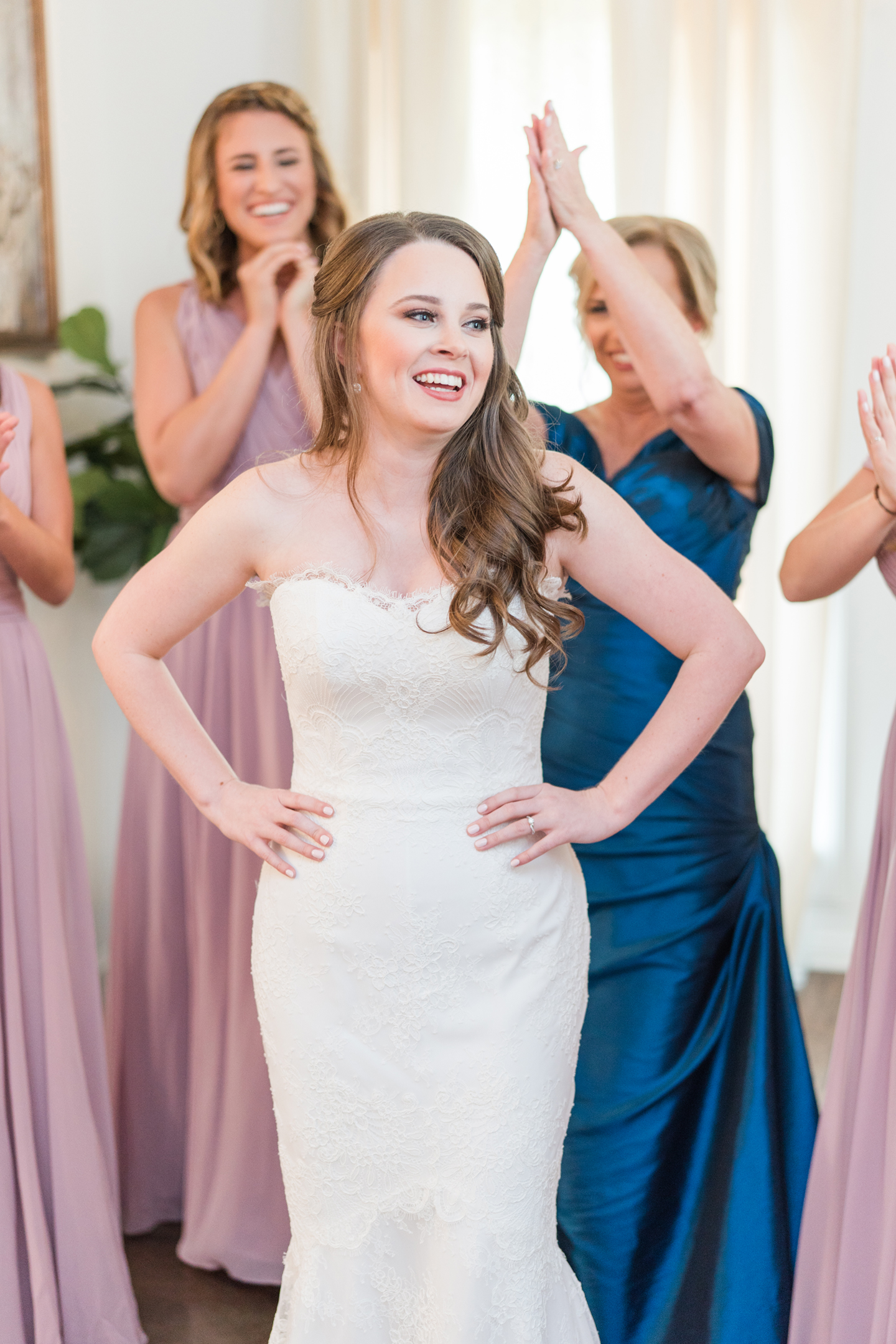 Emily and her Bride Tribe were in full swing of hair and makeup at her parents home in Garland when I arrived. I LOVE it when I walk into a room and I’m greeted with lots of hellos and smiles! You know it’s going to be a fabulous day when you feel like you are one of the girls! And this team of makeup and hair artists was on point! Not only did they do an amazing job, they had a schedule and were right on time!