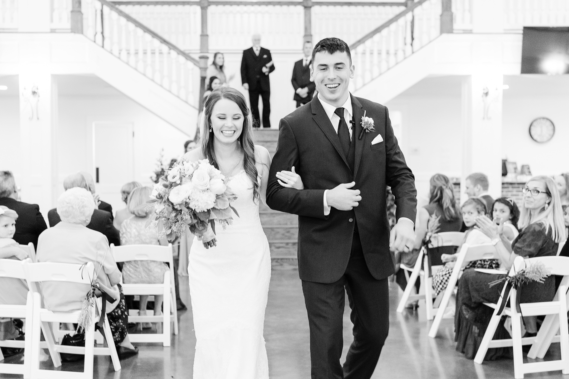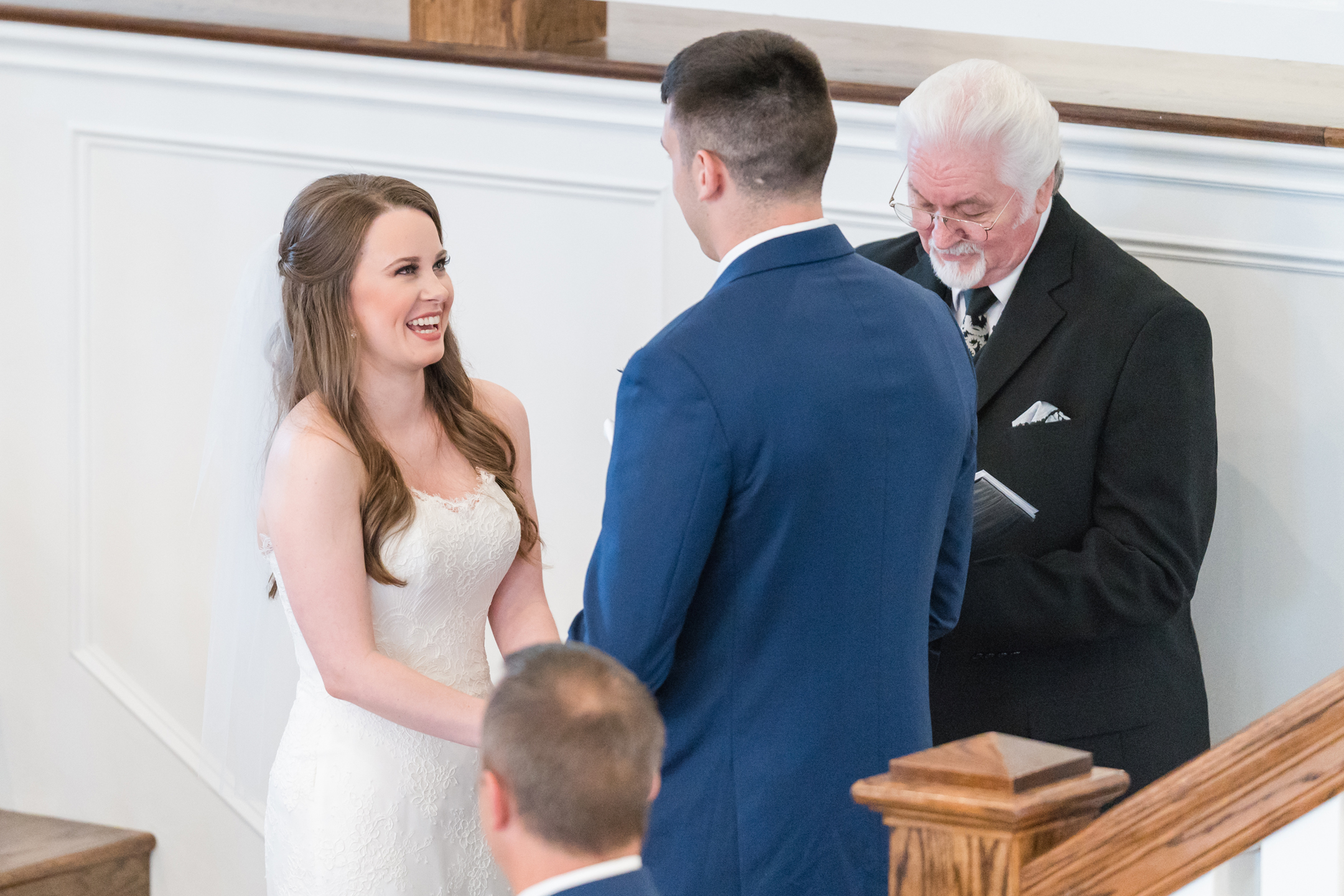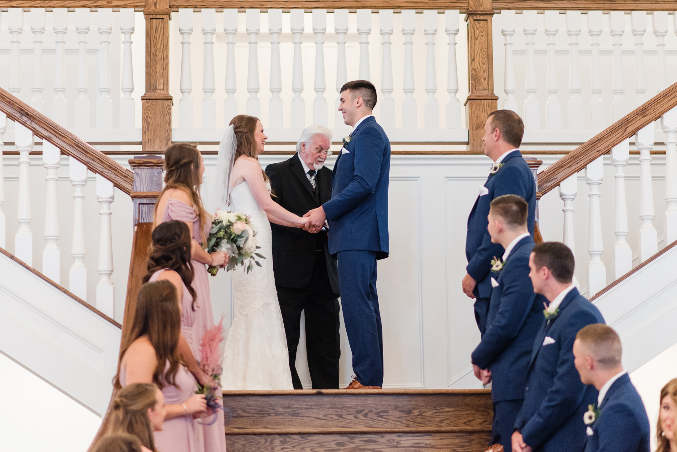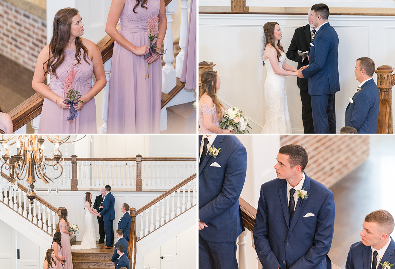 The rain was on our side and decided to give us a little break long enough to take a few bridesmaid and groomsmen portraits outside. Our umbrellas were standing by so there were no surprises! Emily + Jake shared a private prayer just before the ceremony, holding hands without sneaking a peek at each other from either side of the bridal suite. I can imagine how hard it was to not just run in and hold one another! Luckily, they wouldn’t have to wait long before being face to face in front of all of their friends and family.