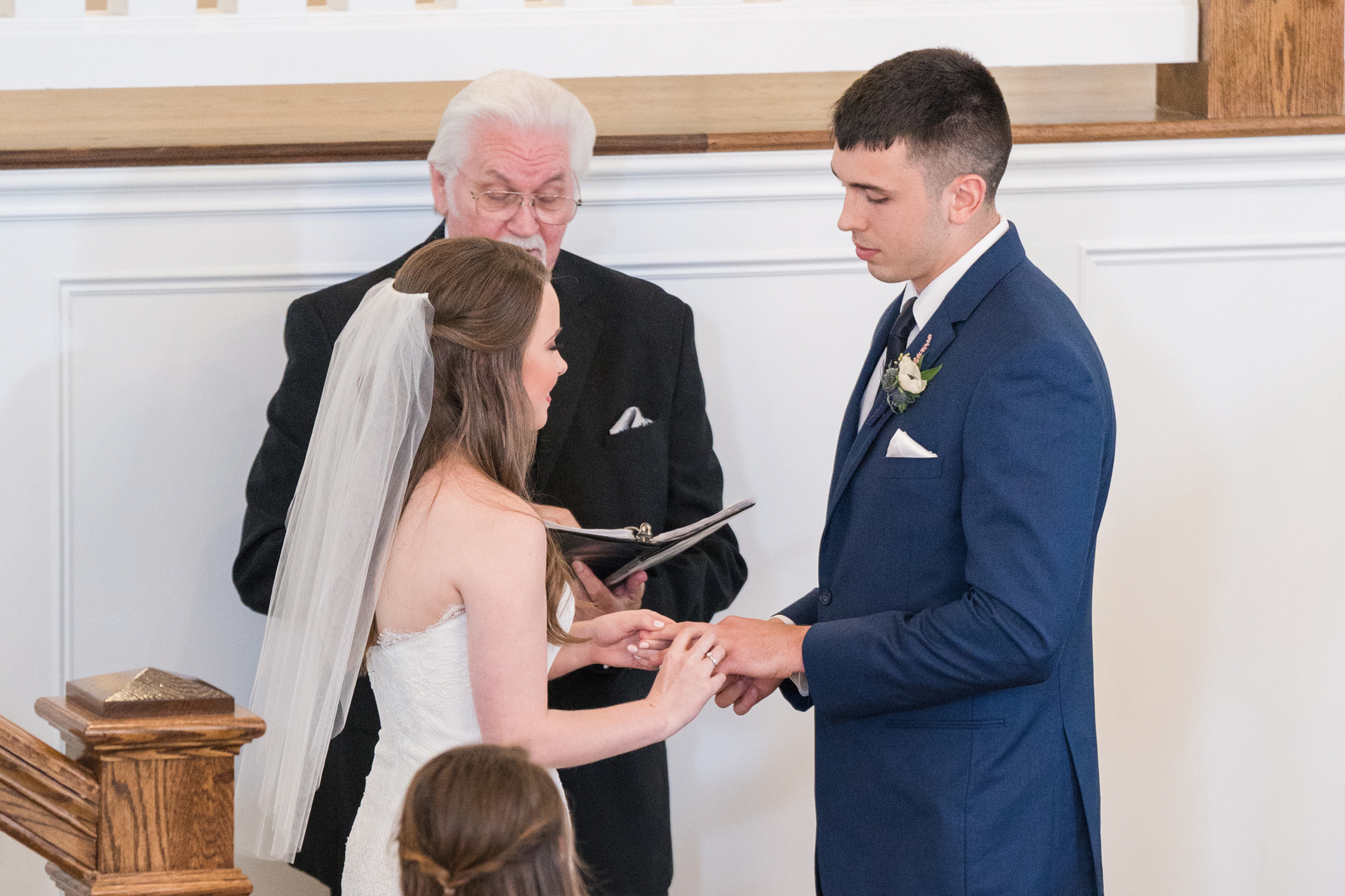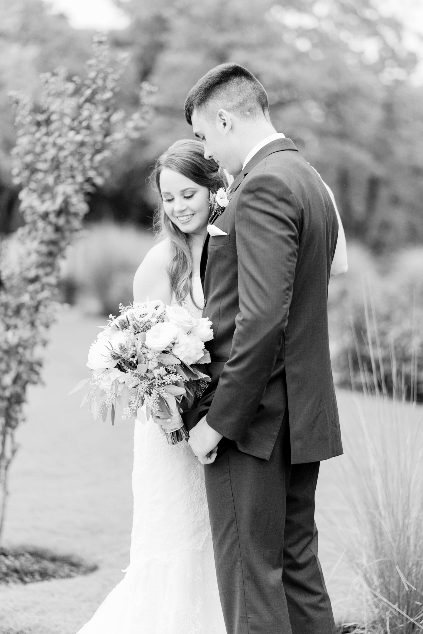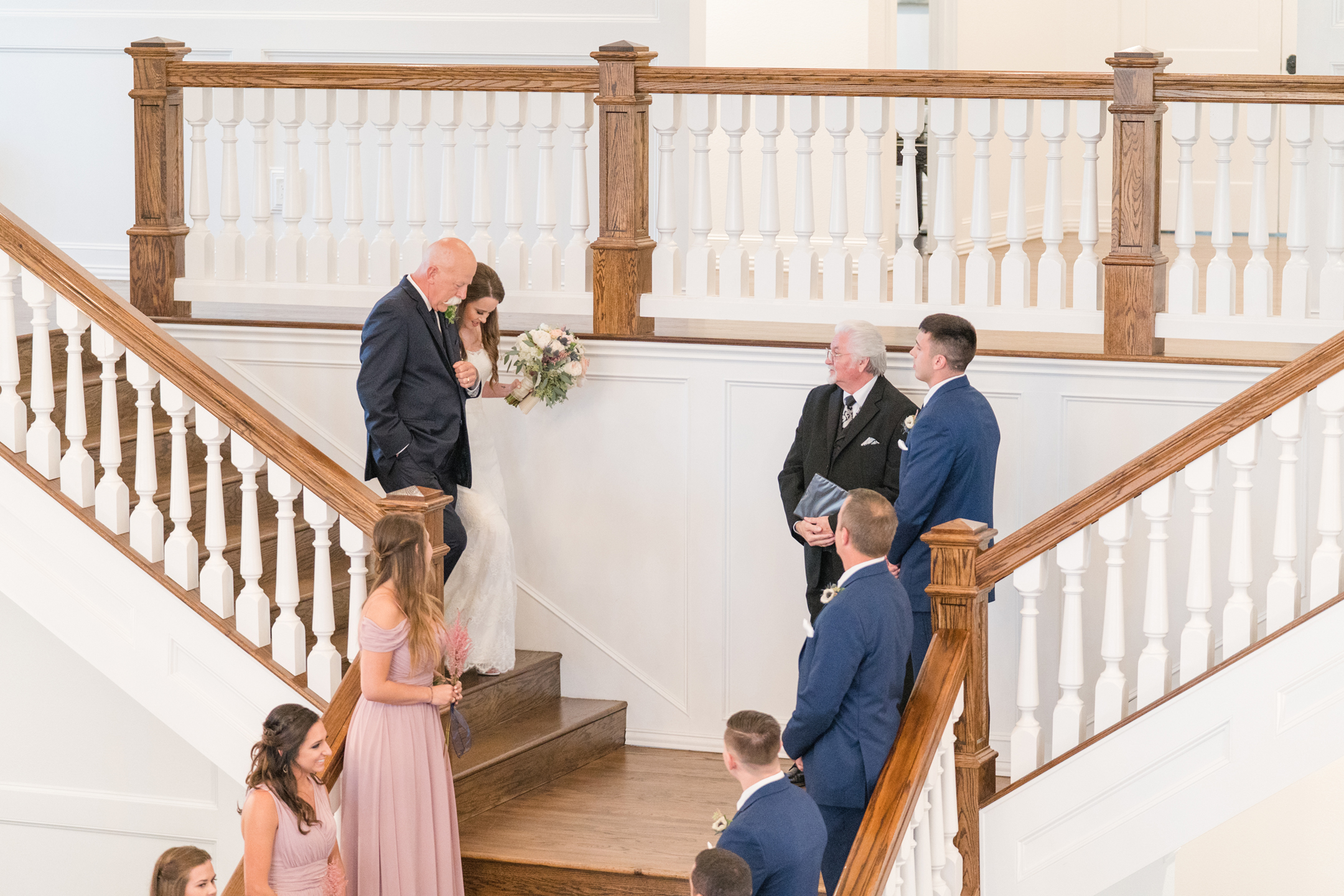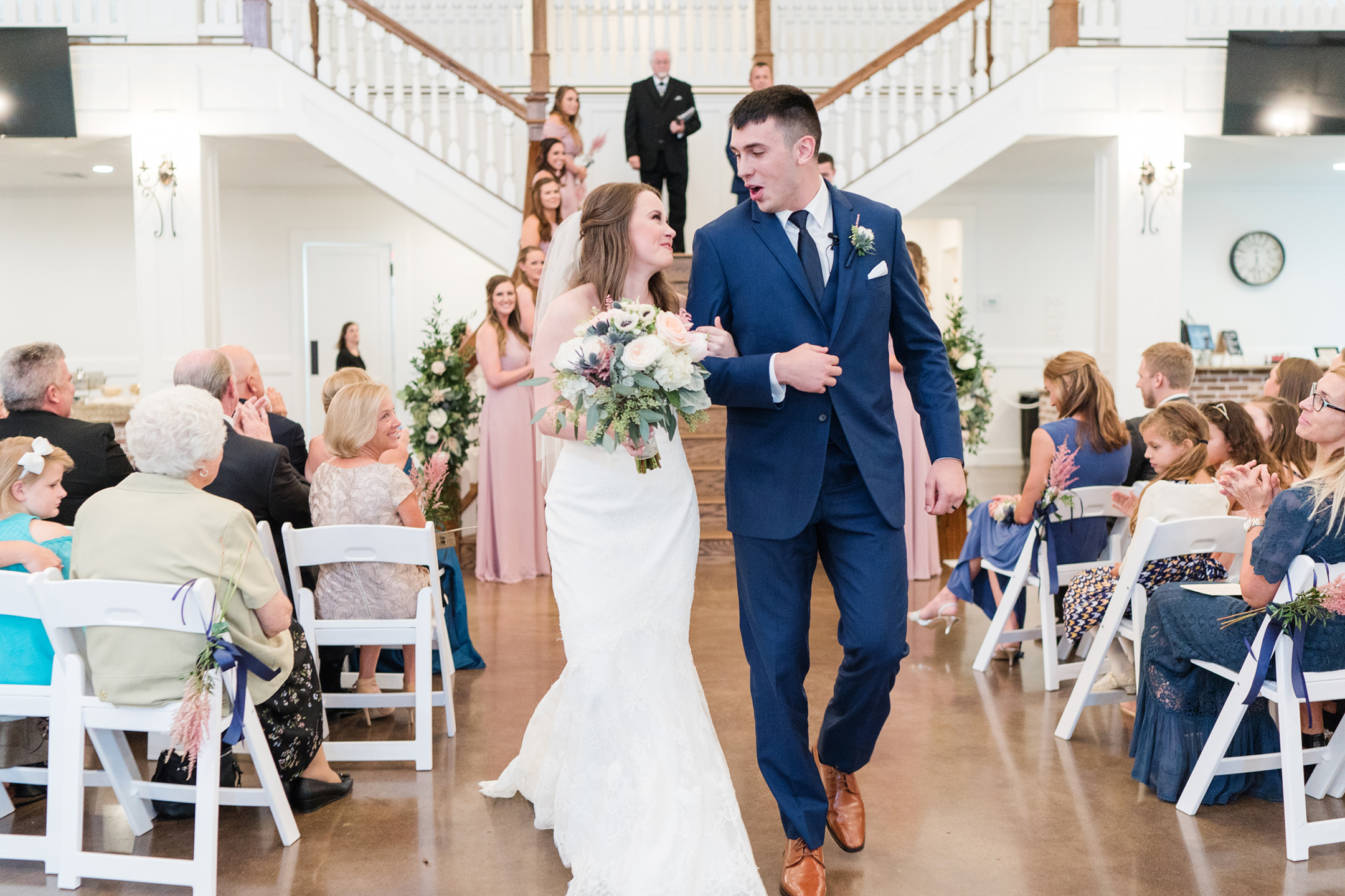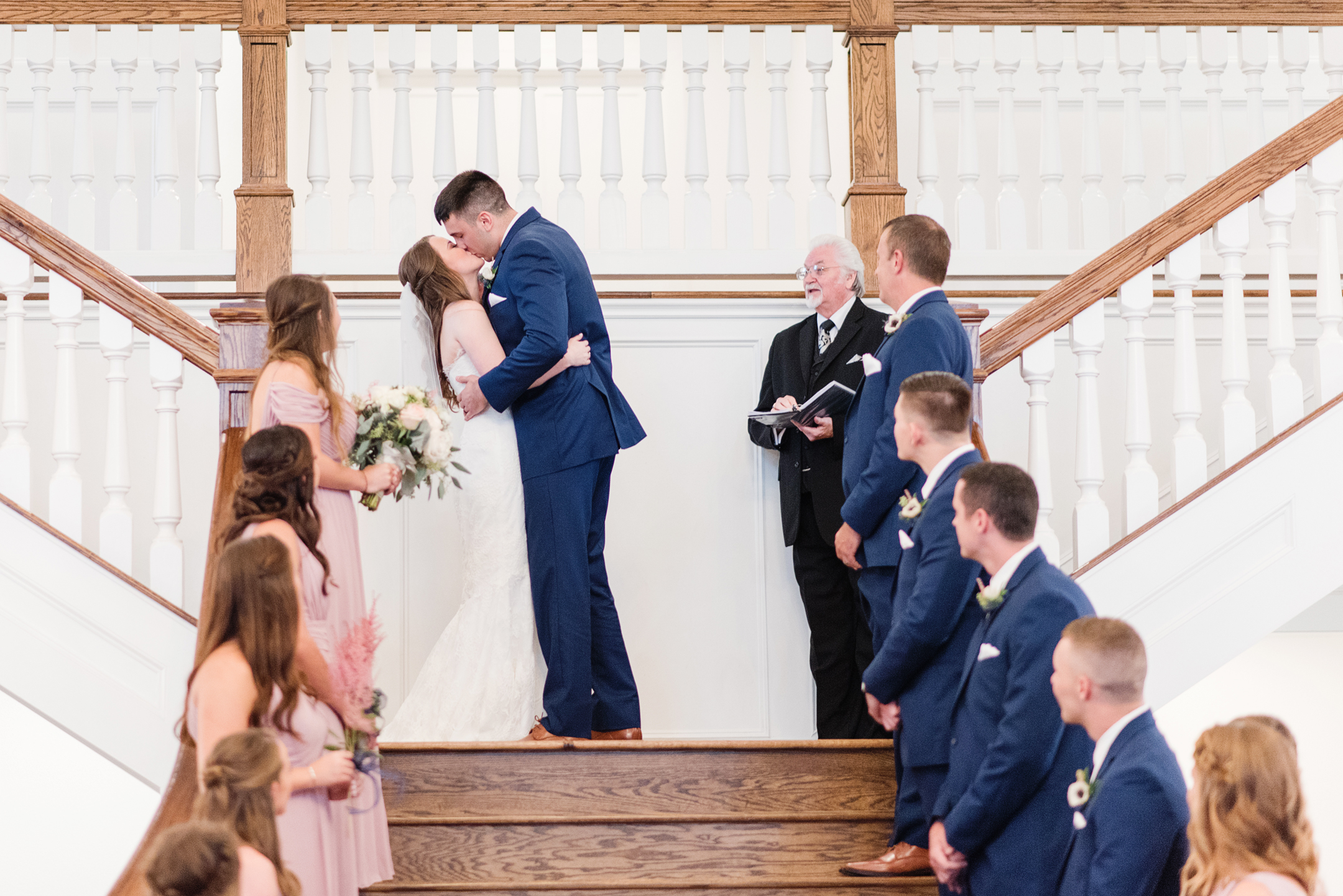 The rain was on our side and decided to give us a little break long enough to take a few bridesmaid and groomsmen portraits outside. Our umbrellas were standing by so there were no surprises! Emily + Jake shared a private prayer just before the ceremony, holding hands without sneaking a peek at each other from either side of the bridal suite. I can imagine how hard it was to not just run in and hold one another! Luckily, they wouldn’t have to wait long before being face to face in front of all of their friends and family.