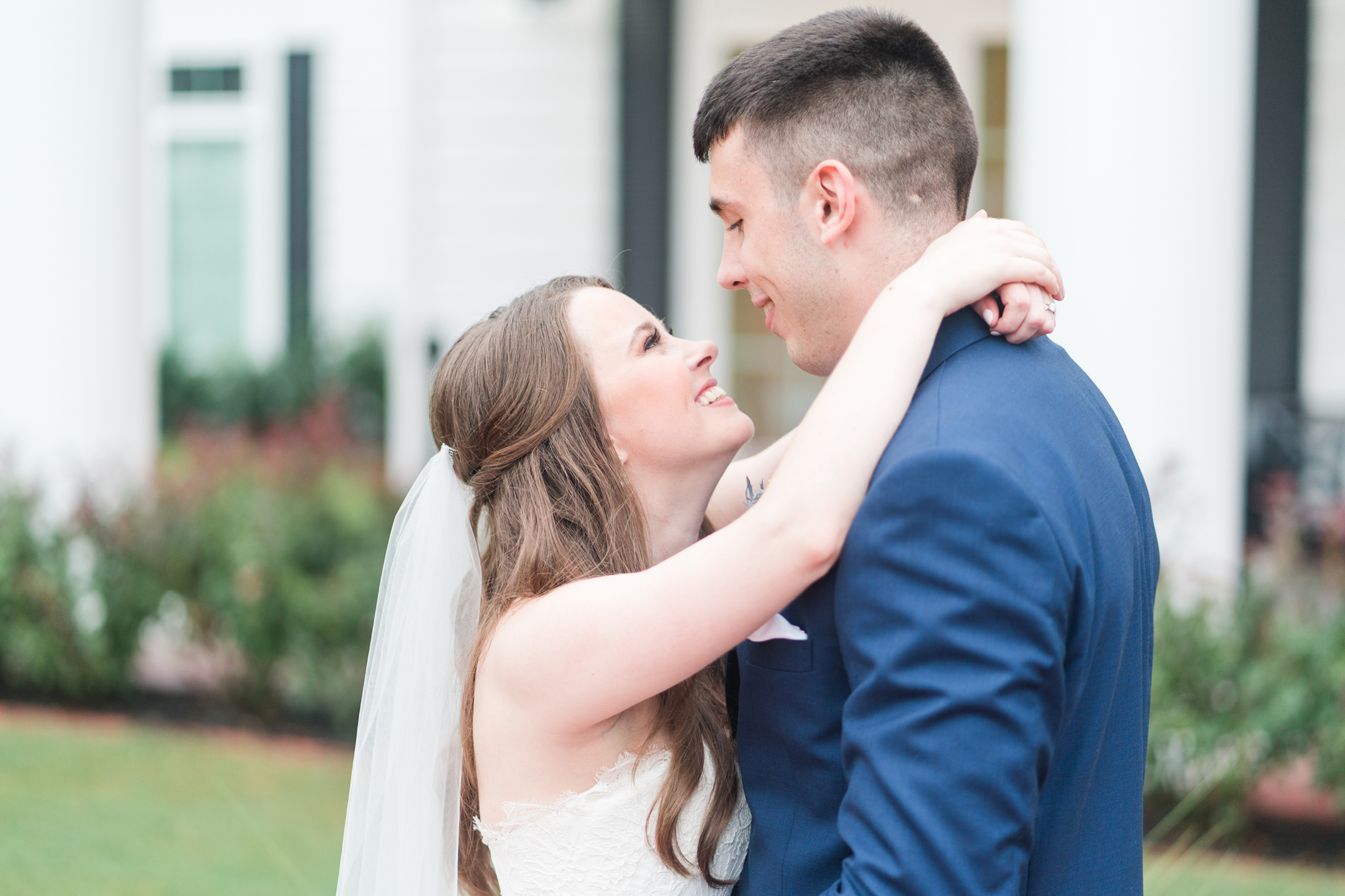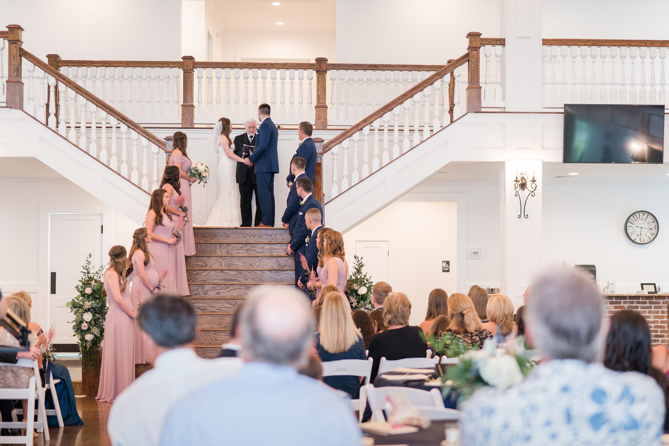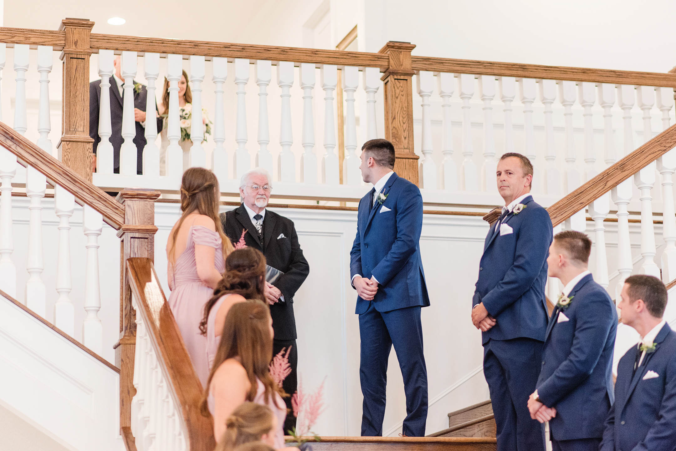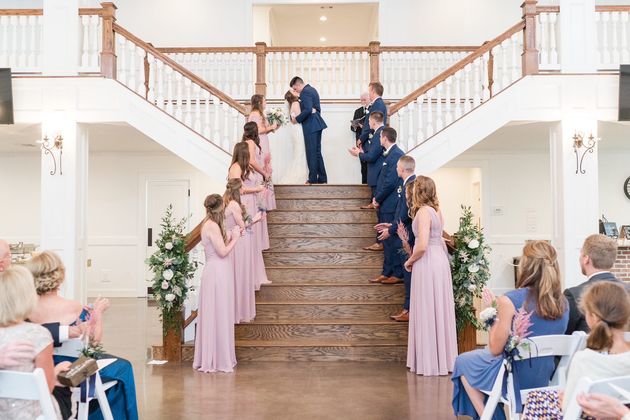 The rain was on our side and decided to give us a little break long enough to take a few bridesmaid and groomsmen portraits outside. Our umbrellas were standing by so there were no surprises! Emily + Jake shared a private prayer just before the ceremony, holding hands without sneaking a peek at each other from either side of the bridal suite. I can imagine how hard it was to not just run in and hold one another! Luckily, they wouldn’t have to wait long before being face to face in front of all of their friends and family.