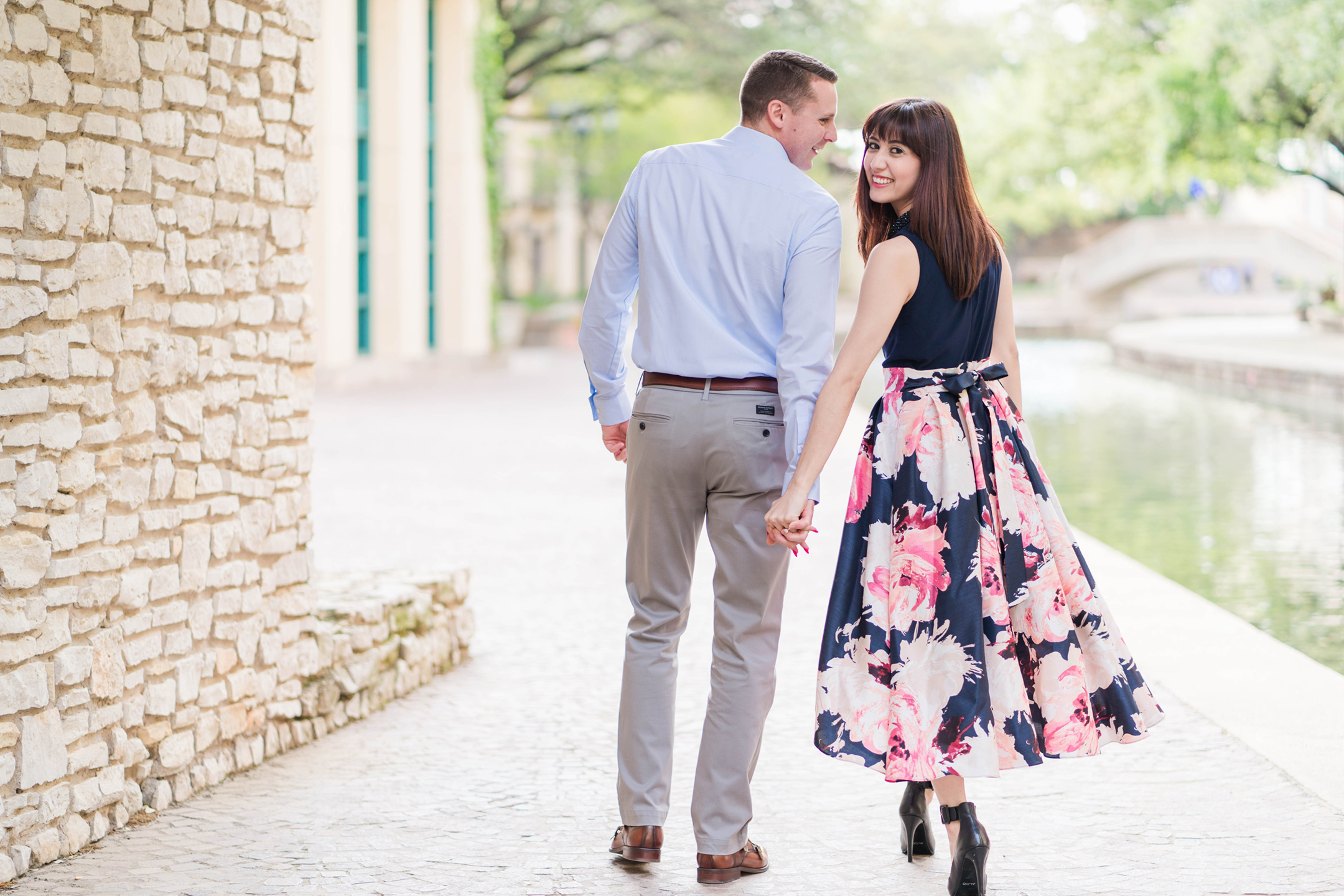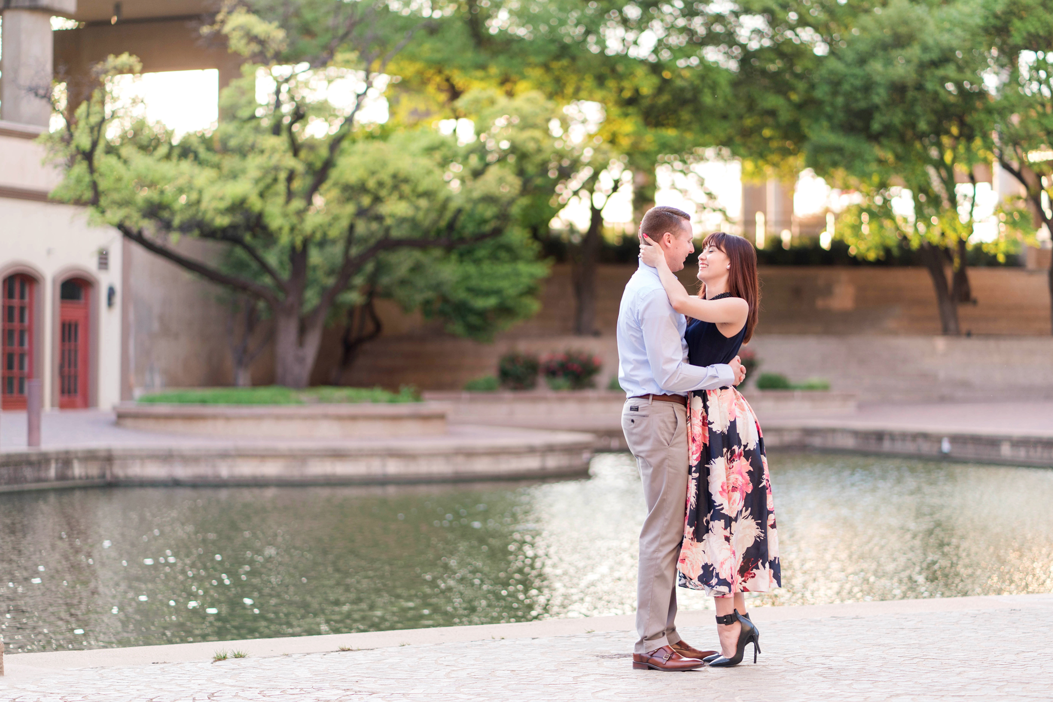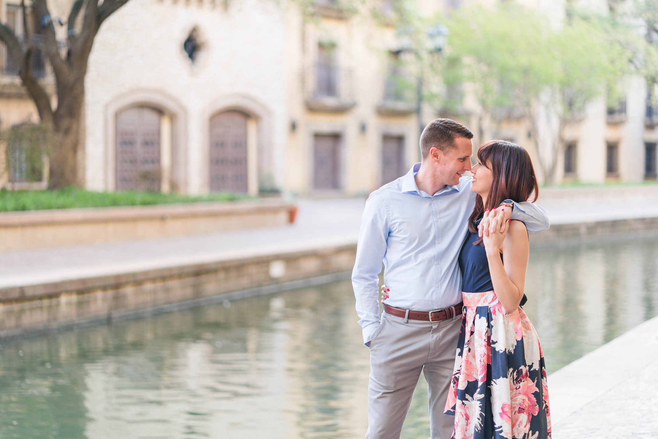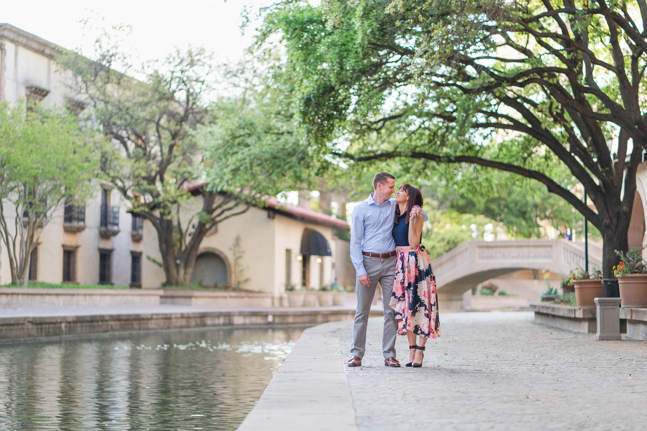 Janelle + Sean met us at the Mandalay Canals in Las Colinas Monday afternoon for their engagement session.  It turns out that Janelle works just minutes from the Canals and had no idea!  I can see walking lunches in her future!  : )  I know I would!  The canals are so beautiful! It’s been a while since I have gotten to visit them and I hope we will get to return again soon.  It was a plus too because we pretty much had the entire canals to ourselves!  Photography win!