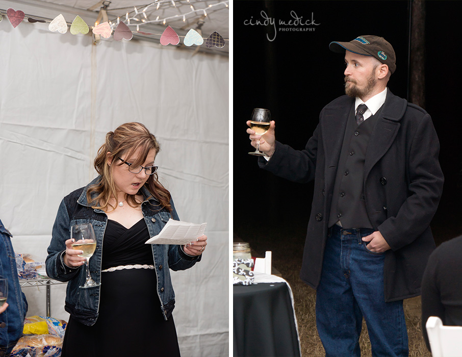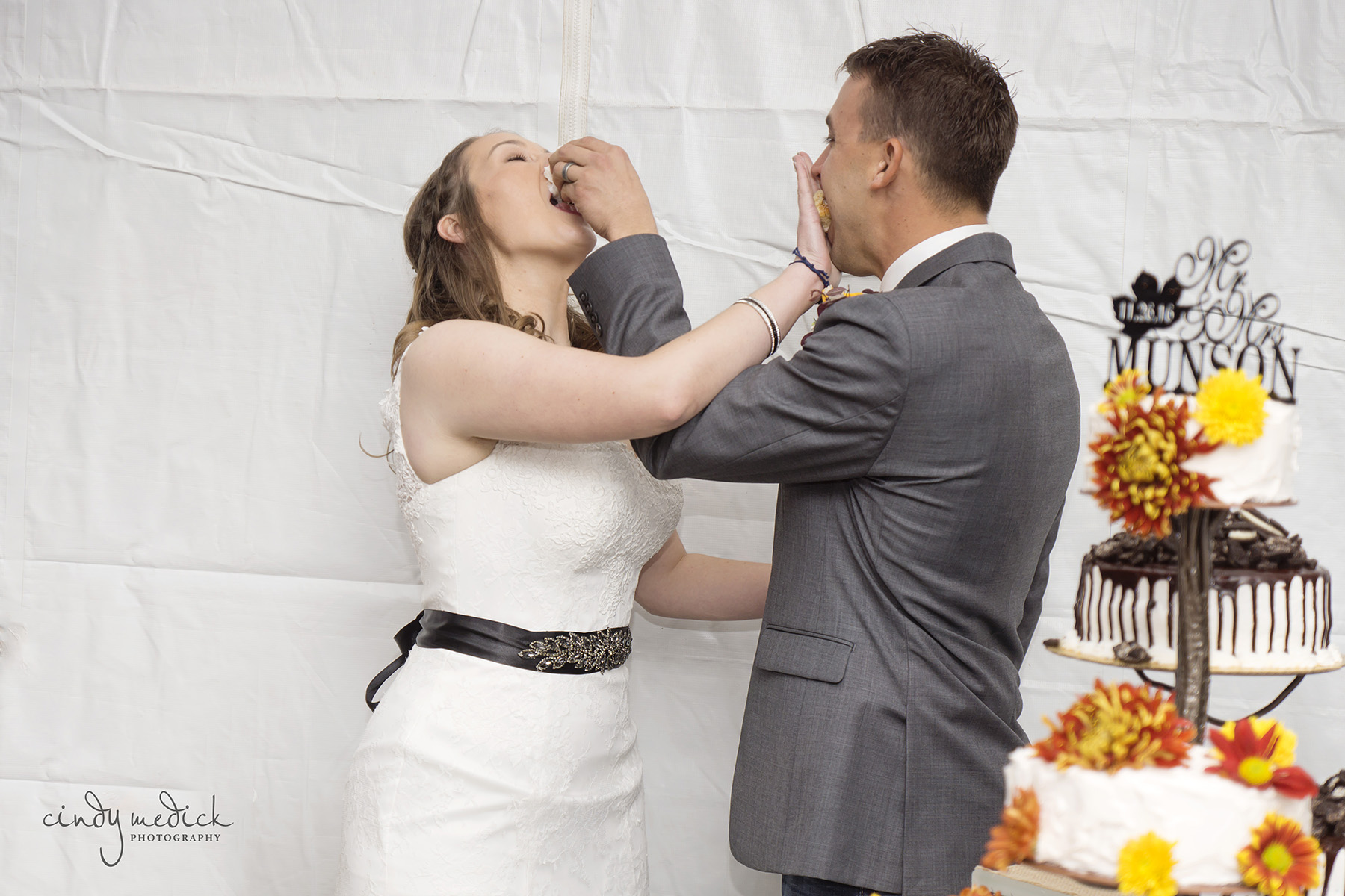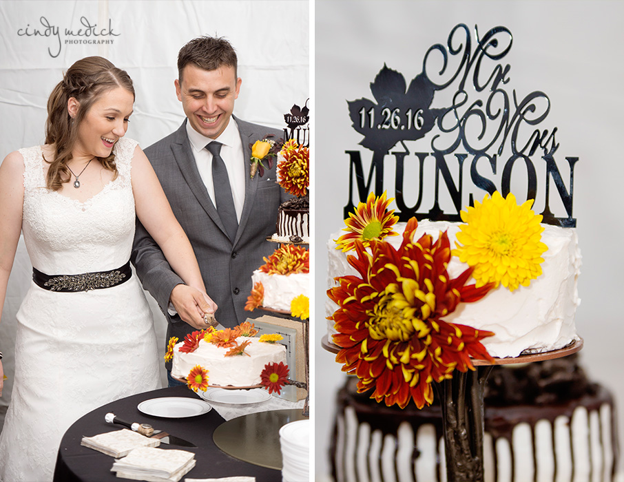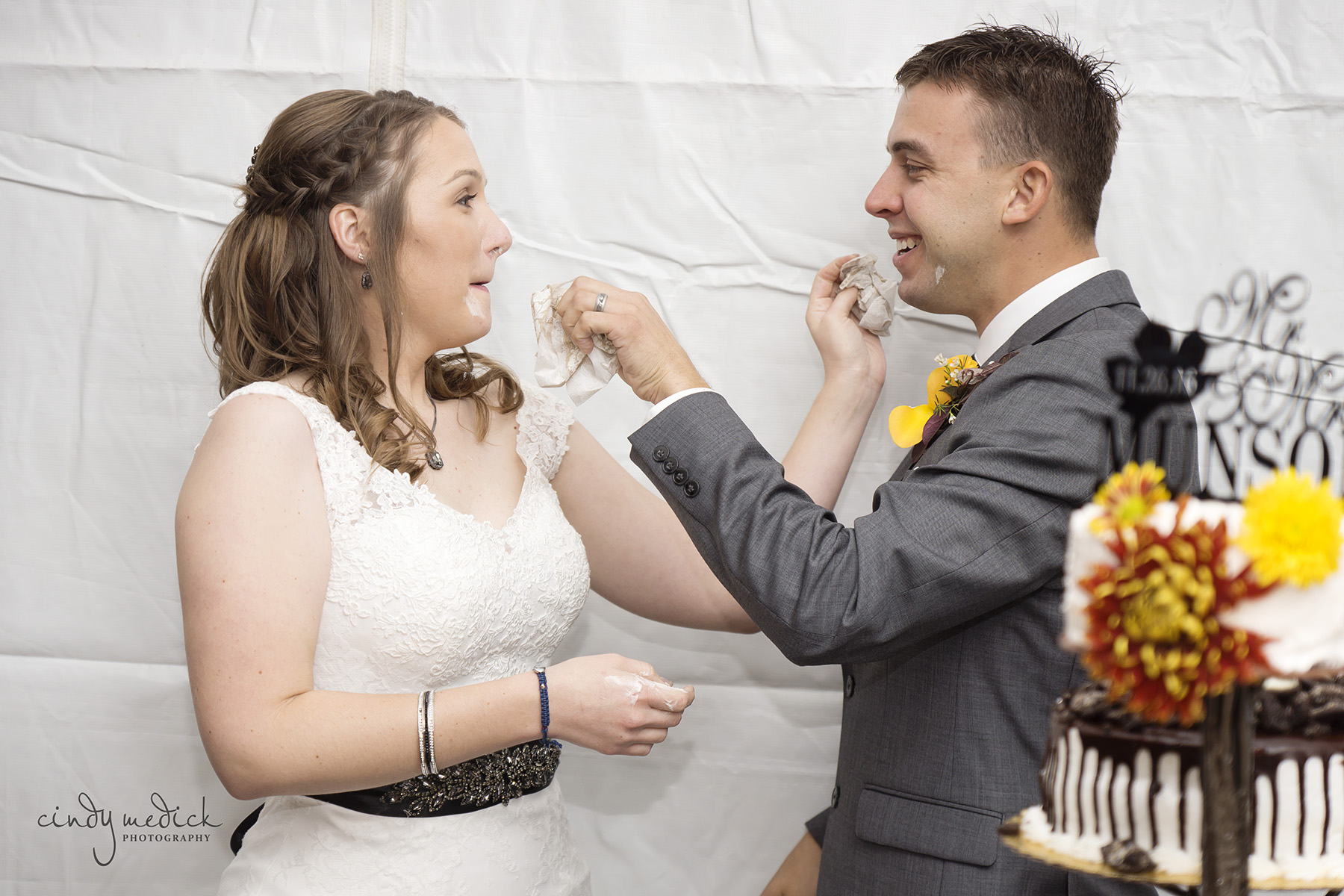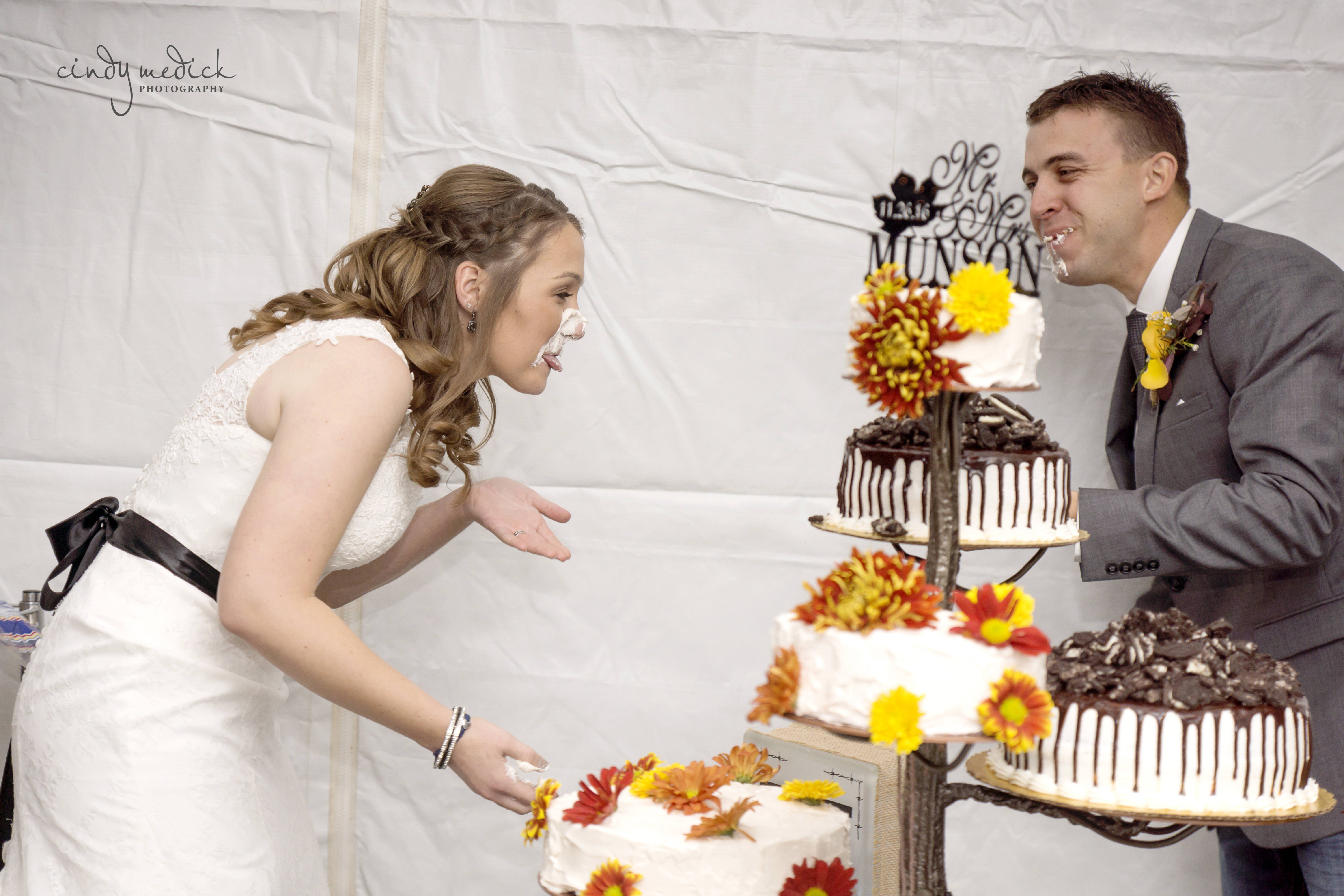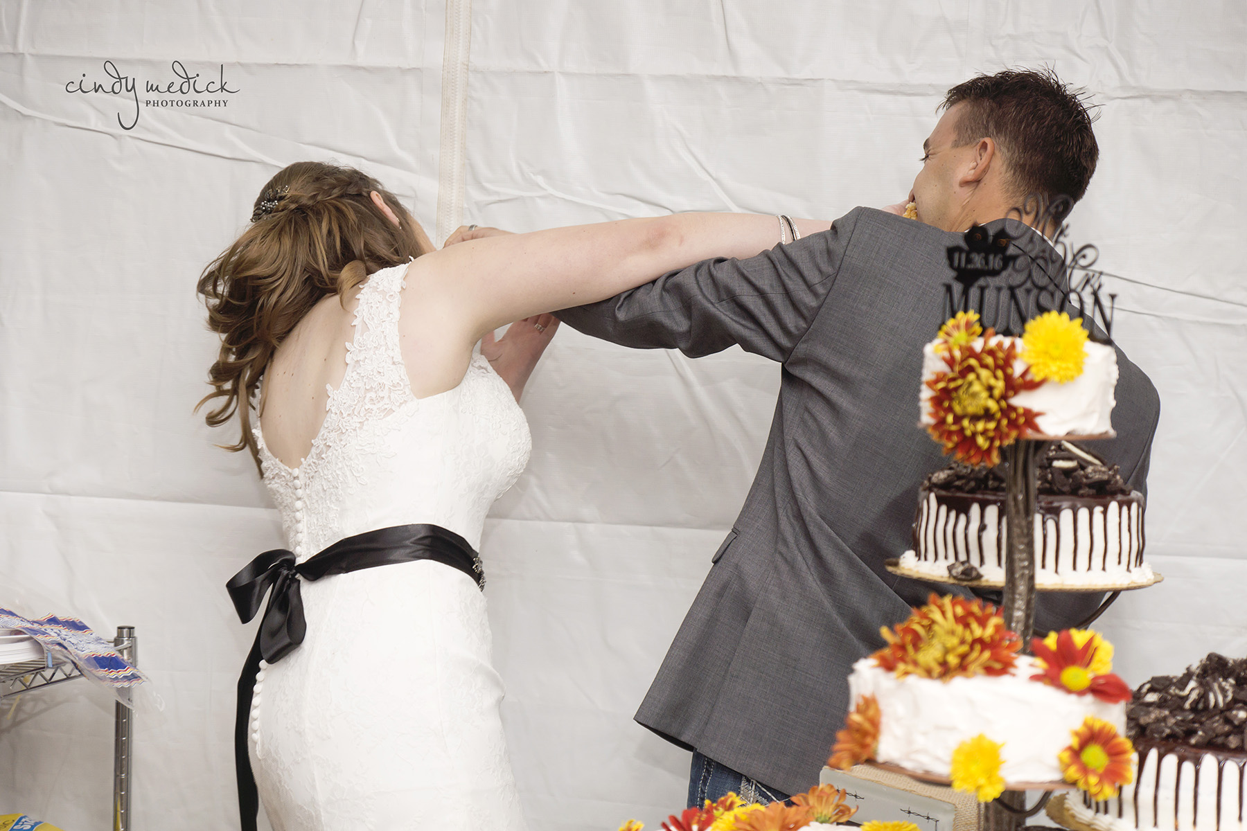 Let’s talk cake. Kelli’s sister Kira made the brides cake and don’t they look delicious? Right before the bride and groom were about to cut their cakes, Kelli said, “oh this is about to go down”. Or something to that affect. Ha! They both knew before hand that some cake was about to get smashed. But look how sweet they both are to help clean each other up. Love it!