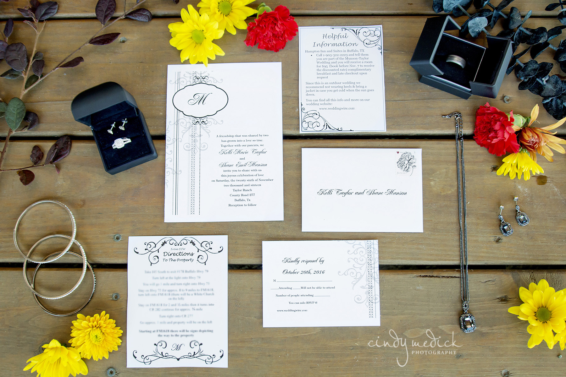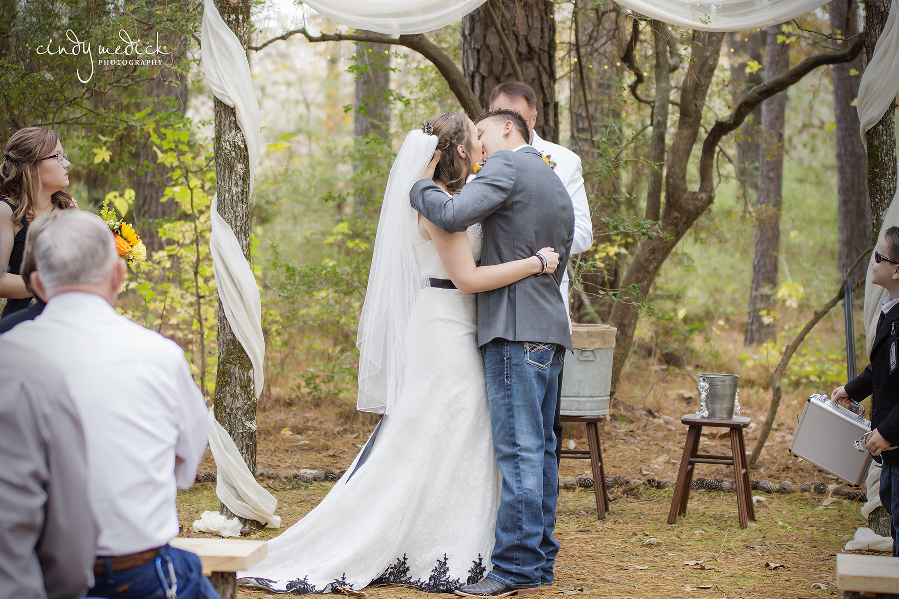 Kelli + Shane were married on her parents property in Buffalo, TX. Her father built the cabin himself and they take trips to spend time with family and go hunting. Kelli + Shane both have a passion for hunting and go often together. Shane told me that some of her trophies are on the wall in the cabin.