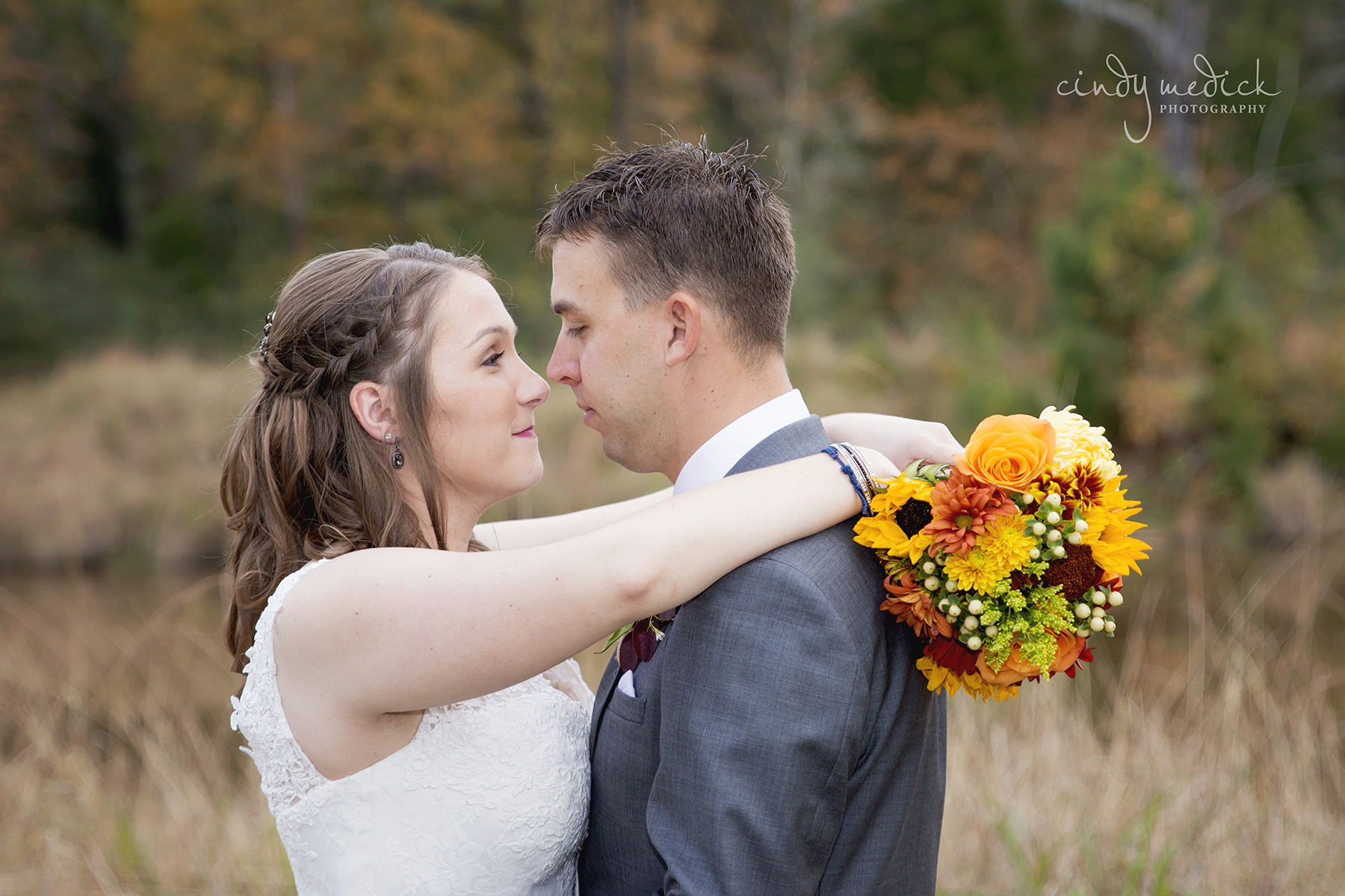 I was ecstatic when I heard they wanted to spend a little time after the ceremony to take pictures with just the two of them. I feel this is so important to have portraits of just the bride and groom because it is the reason for the celebration. The love and union of two people. It worked out perfectly with the timing and sun. Their ceremony was at 3pm so we were walking by 4pm. It was such a beautiful November day that was a little cool but not too cold. Their property was the perfect location. I just can’t get over all the beautiful landscapes their property offers. So serine.