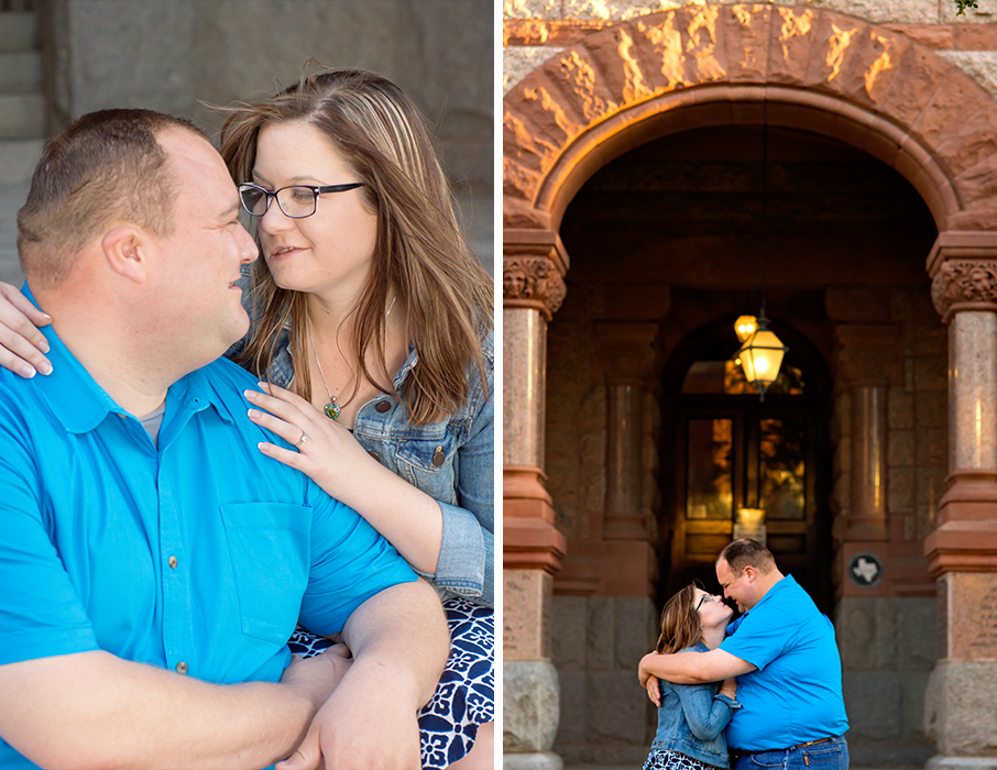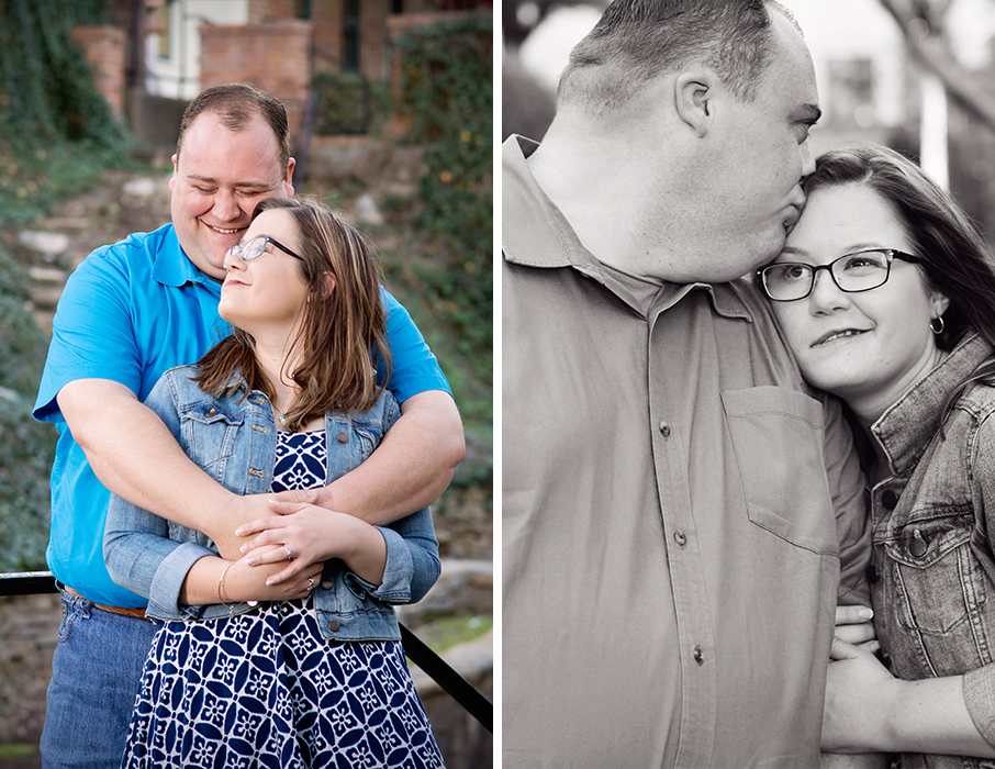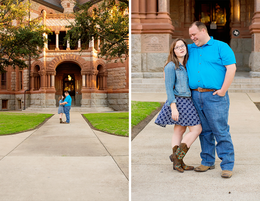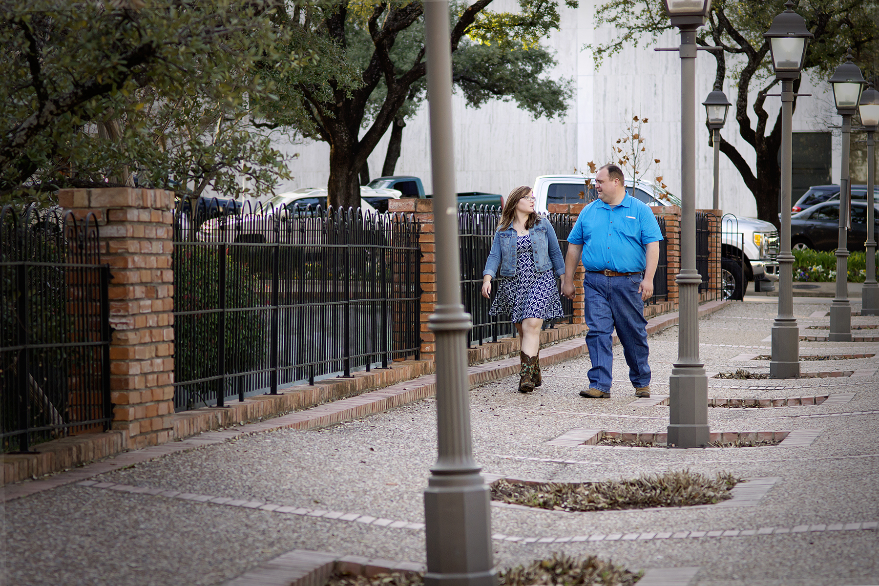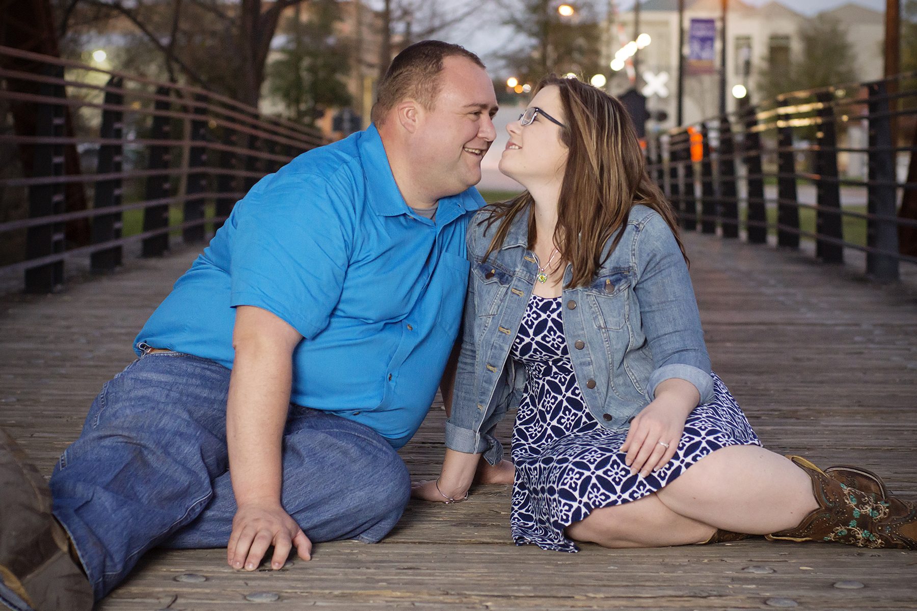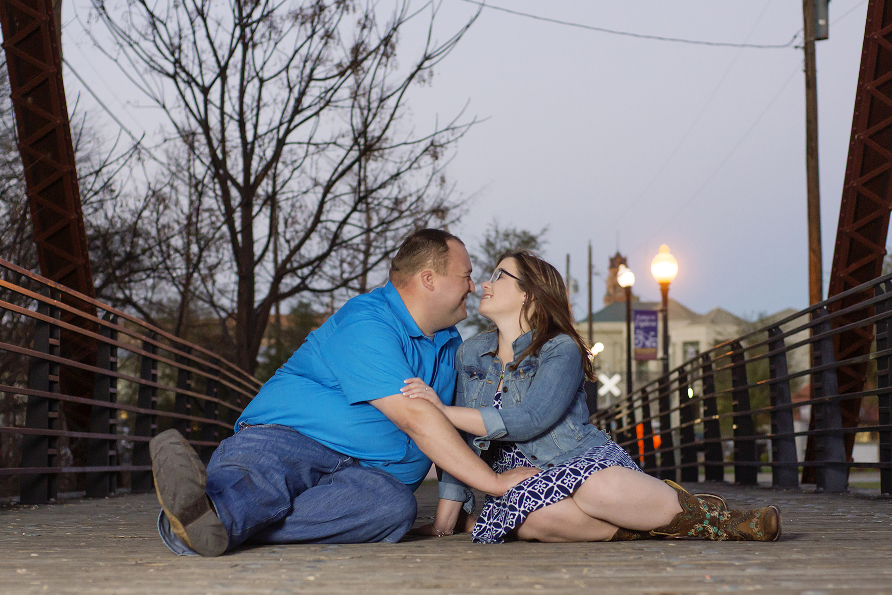 We met for our engagement session in Downtown Waxahachie. It has such an authentic cozy feel to it. I actually grew up in Waxahachie so it brings back so many memories to walk around this, not so small anymore, town. We started at the corner of College and Water street and it is just beautiful. It’s a little hidden which makes it even more special. Full of trees and green ivy, it is a perfect backdrop. We then made our way through downtown and ended on the bridge by the old train station. It was a perfect day!