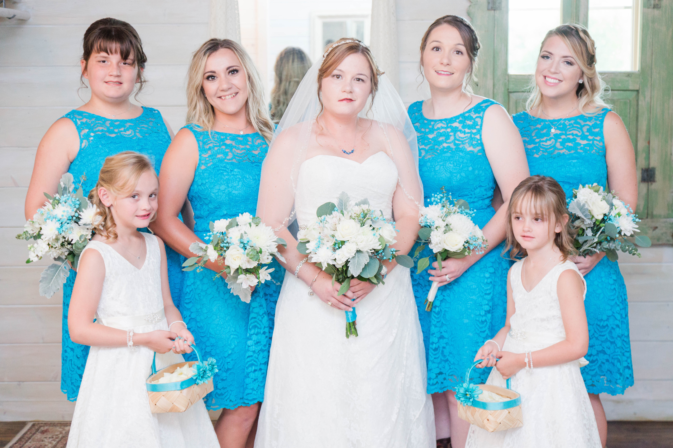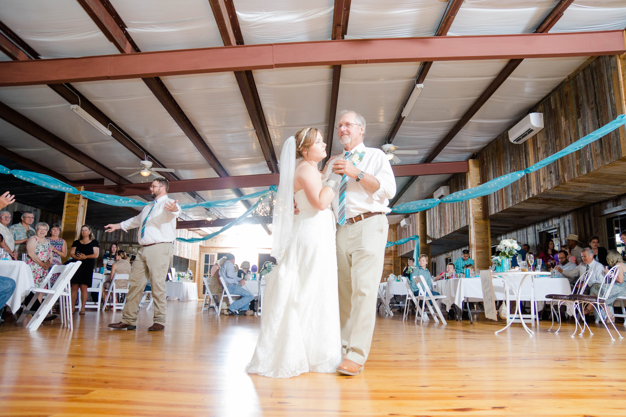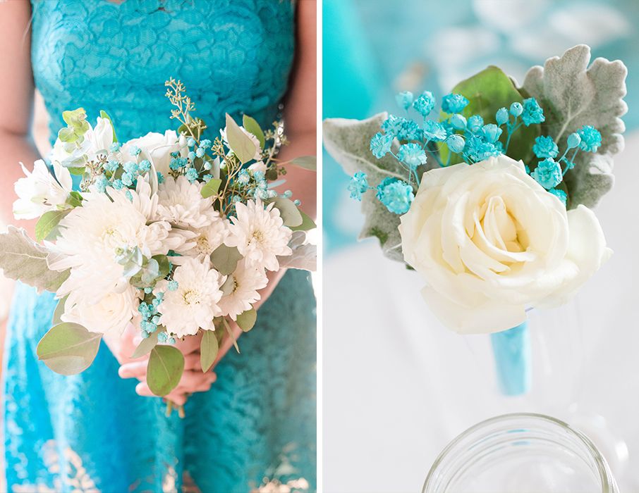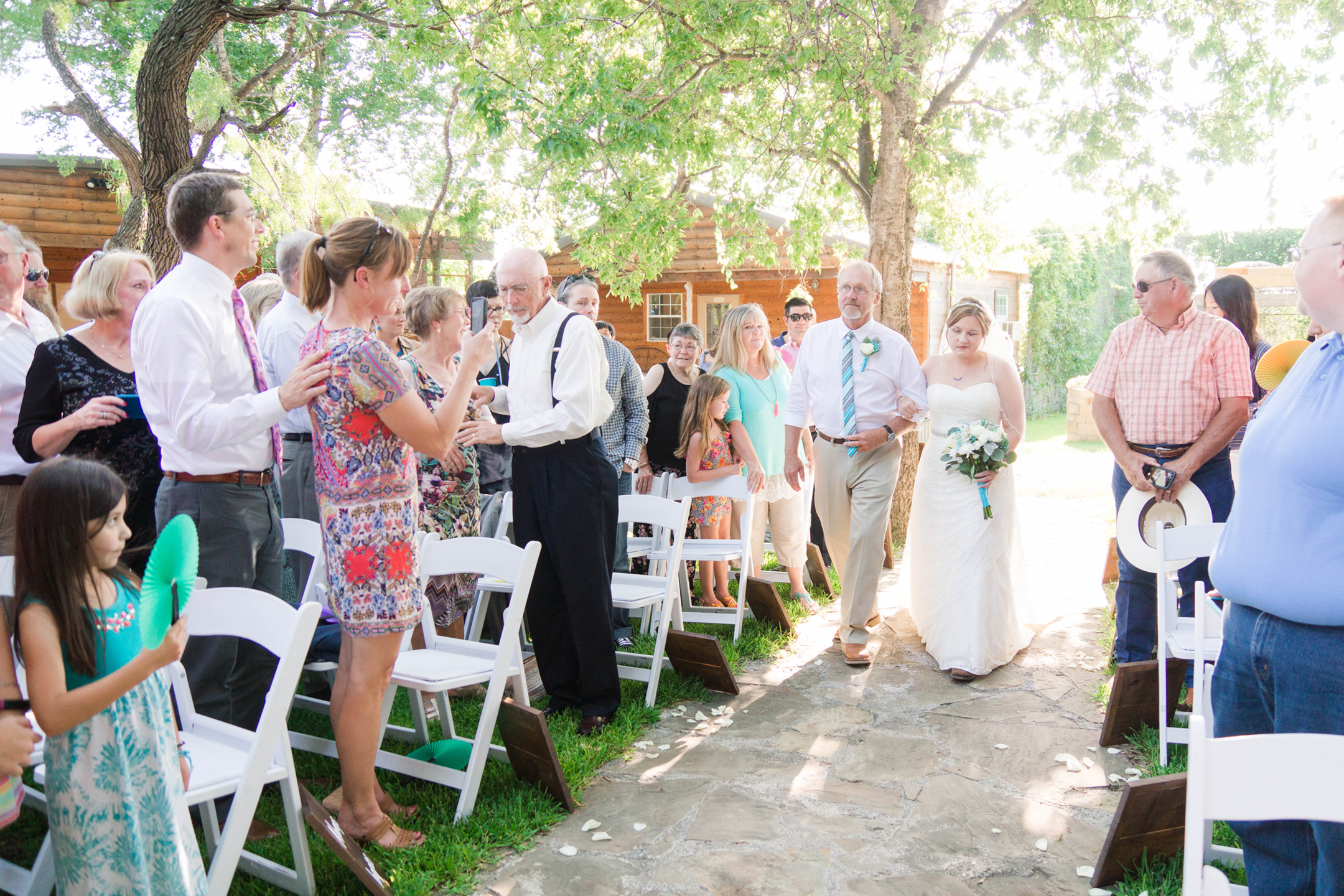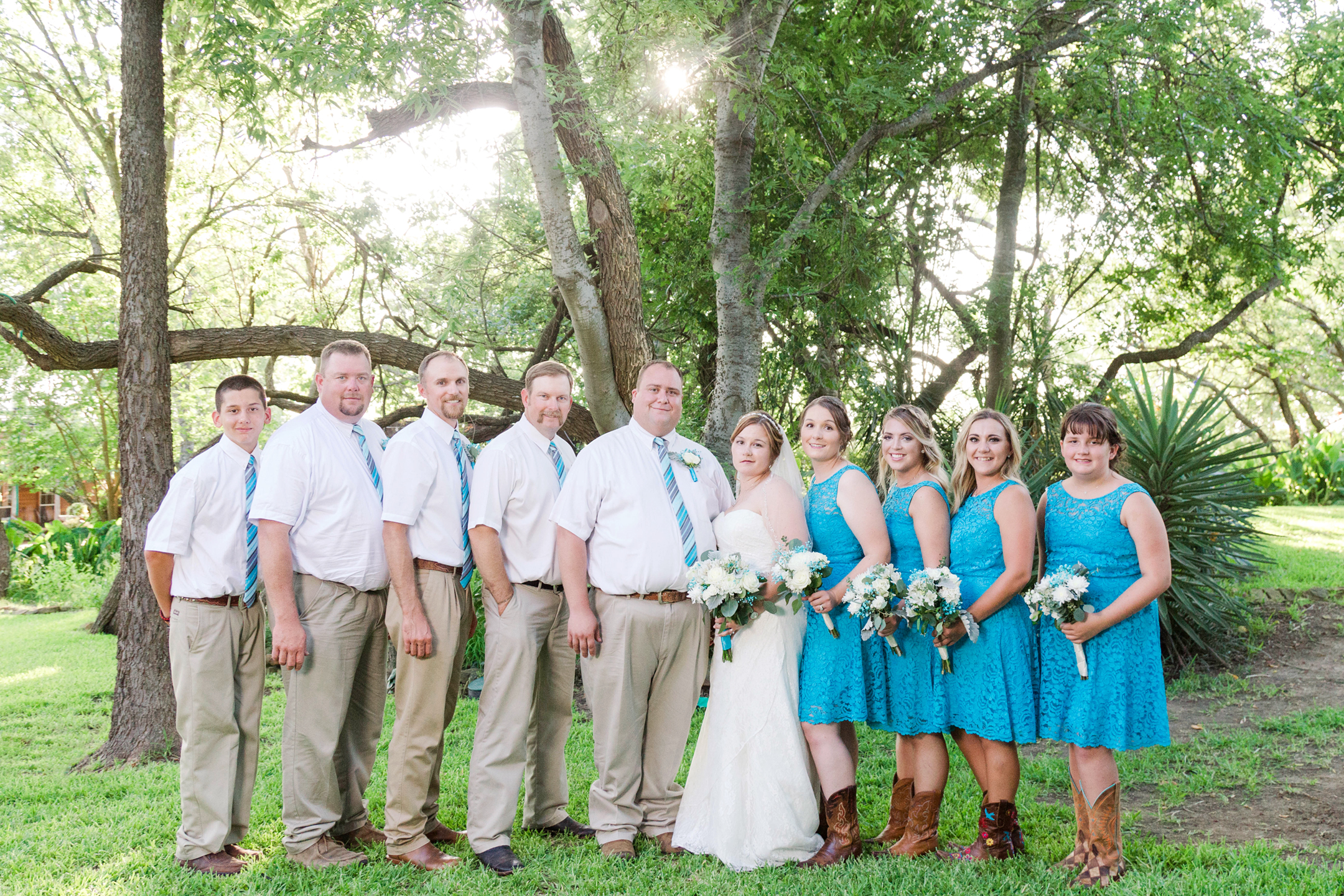 When we arrived, everyone was putting the final touches to the cabin where the reception was being held. The centerpieces doubled as the bridal and bridesmaids bouquets. Each place setting had a mason jar and champagne glasses for the toasts. The table runners, candle holders, drapes, and vases filled the room with turquoise giving this reception such a bright and airy feel. My fav! A projector was running pictures of the bride and groom from when they were babies to the present. Everything was just wonderful! The ceremony location, which is right next to the cabin, was lined with white chairs and wooden signs with 1 Corinthians 13:4-7 all along each row. Kira said it was a team effort to make each sign. Larry made the wood plaques and she painted the words on. So sweet! I imagine these will hold a place somewhere in the home they will share. Overlooking the alter, the trees providing the shade move with the breeze and create a sparkle when the sun shines through. Feels magical!