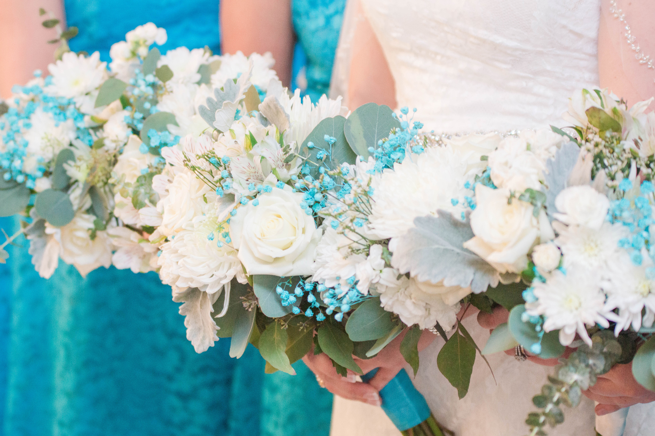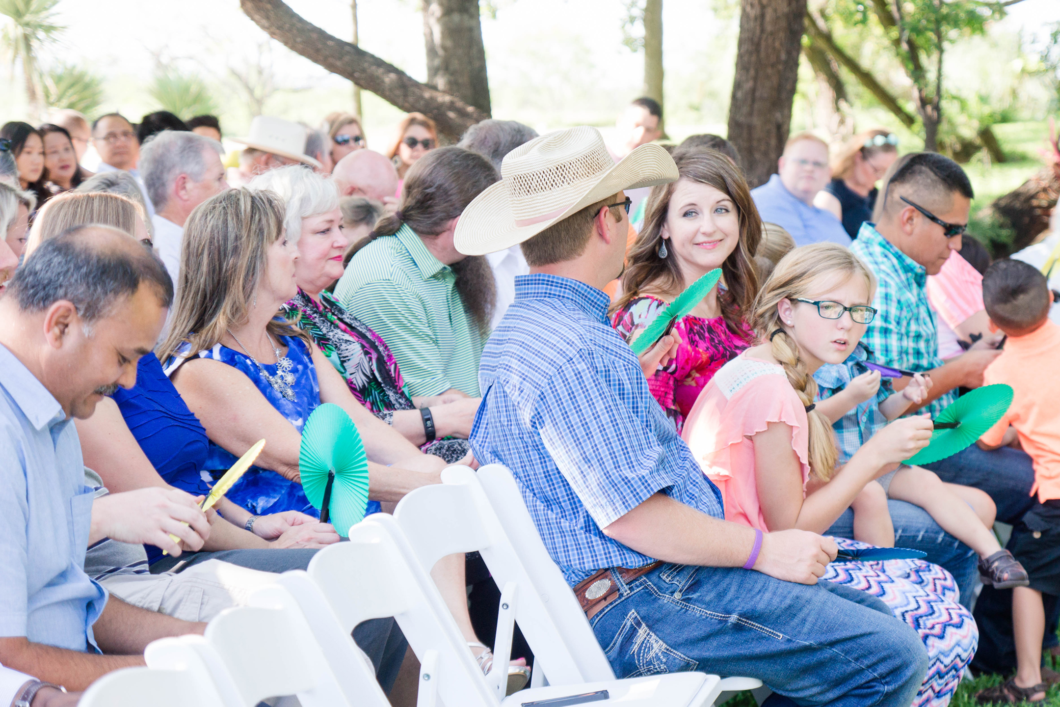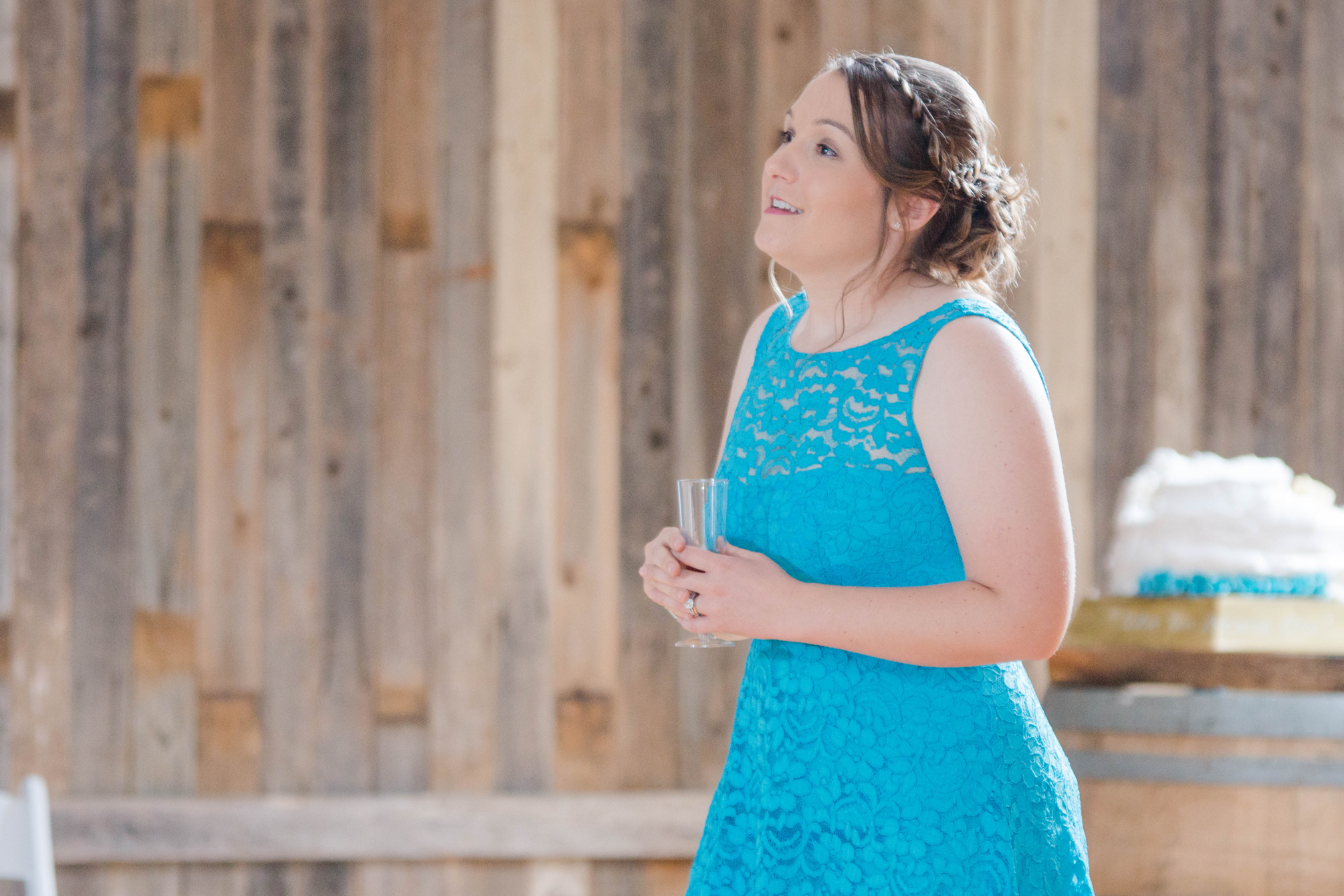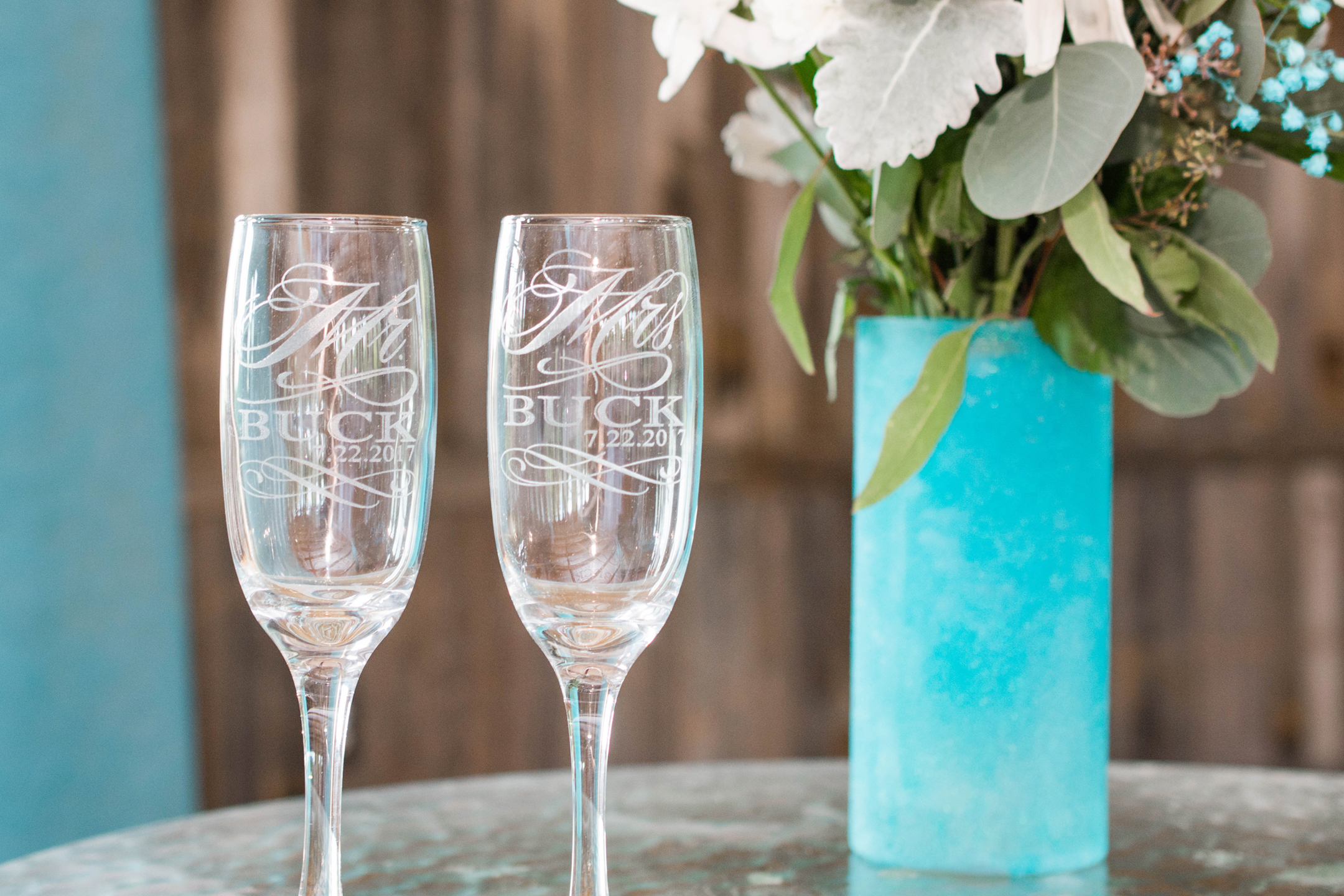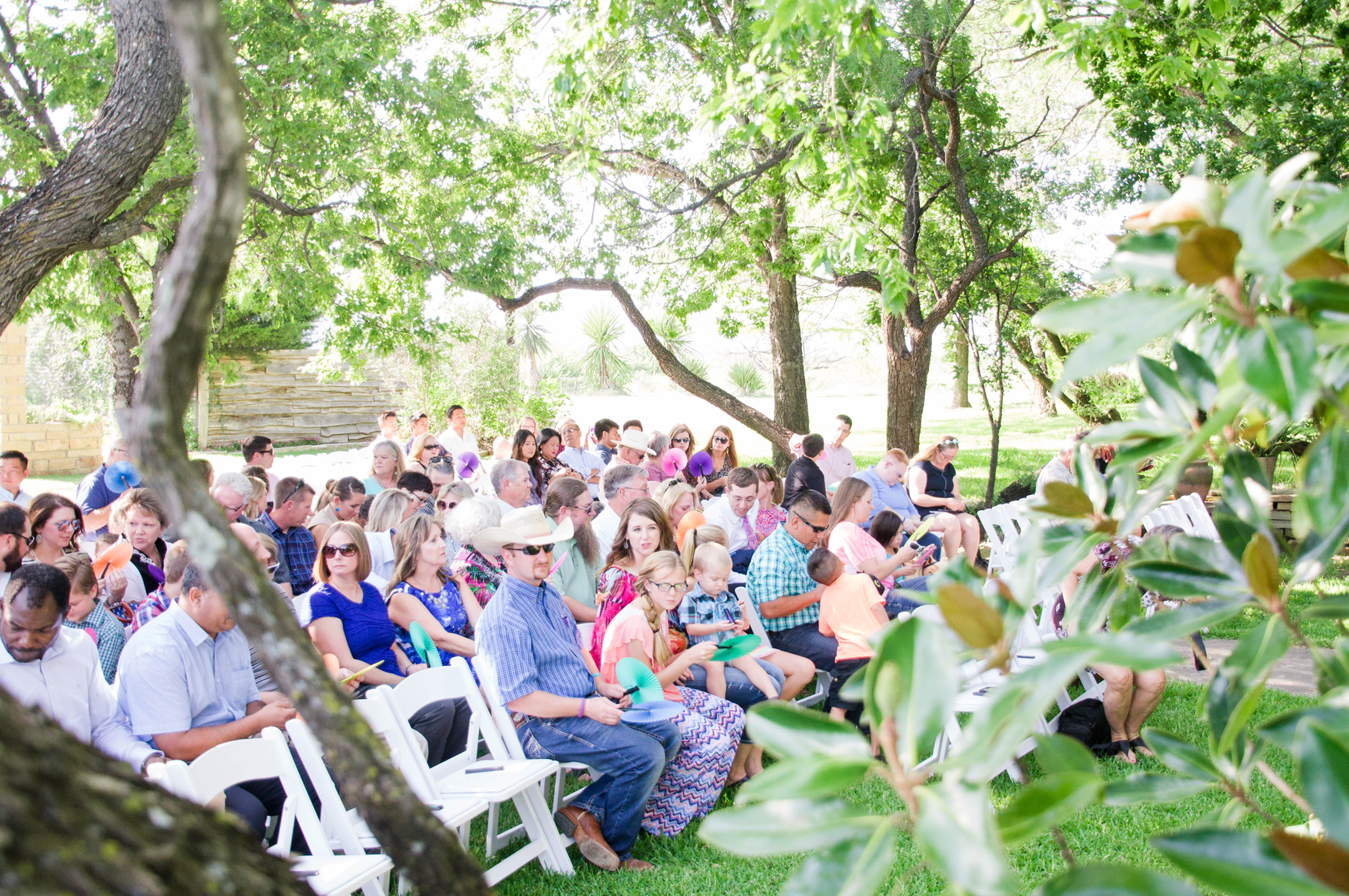 When we arrived, everyone was putting the final touches to the cabin where the reception was being held. The centerpieces doubled as the bridal and bridesmaids bouquets. Each place setting had a mason jar and champagne glasses for the toasts. The table runners, candle holders, drapes, and vases filled the room with turquoise giving this reception such a bright and airy feel. My fav! A projector was running pictures of the bride and groom from when they were babies to the present. Everything was just wonderful! The ceremony location, which is right next to the cabin, was lined with white chairs and wooden signs with 1 Corinthians 13:4-7 all along each row. Kira said it was a team effort to make each sign. Larry made the wood plaques and she painted the words on. So sweet! I imagine these will hold a place somewhere in the home they will share. Overlooking the alter, the trees providing the shade move with the breeze and create a sparkle when the sun shines through. Feels magical!