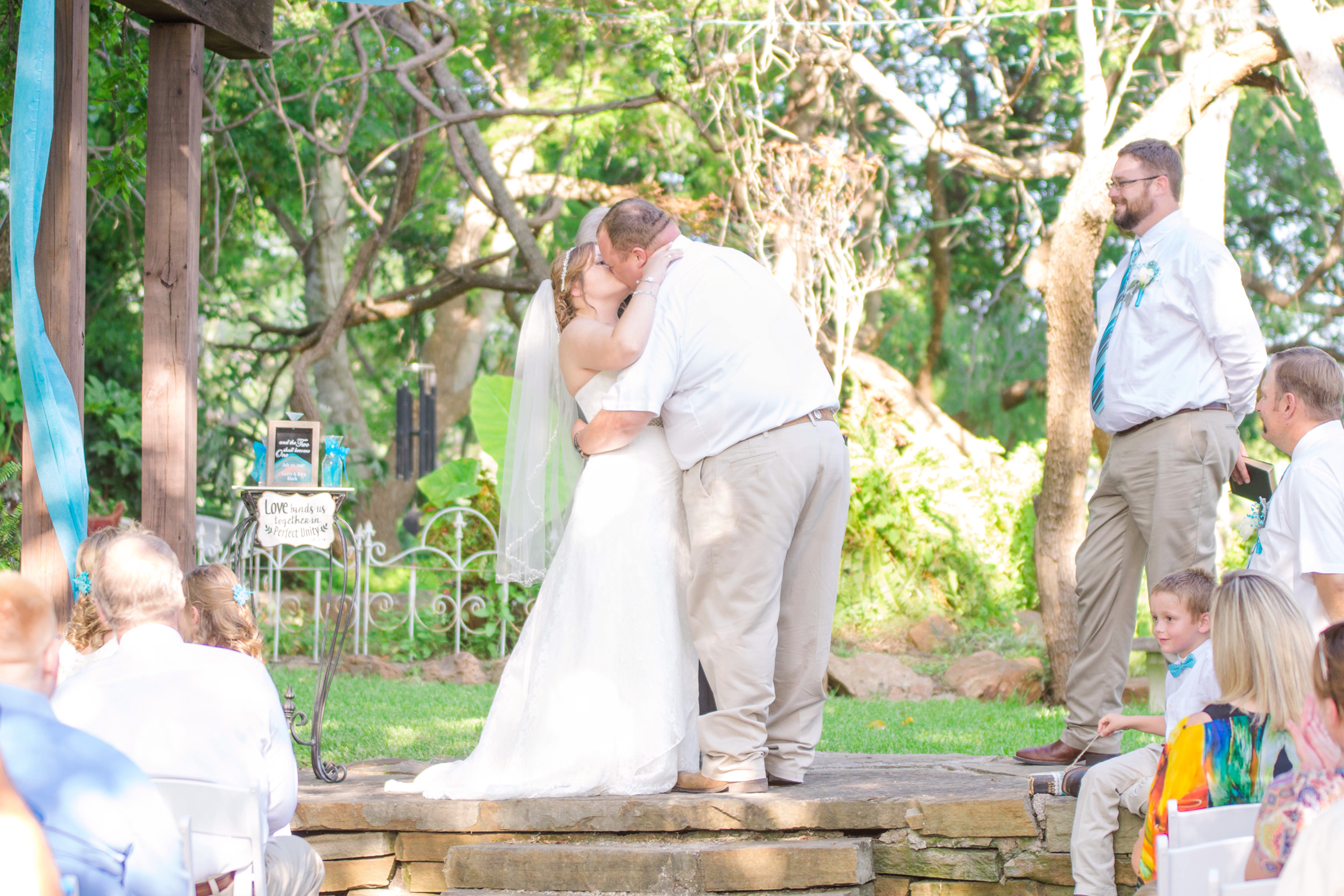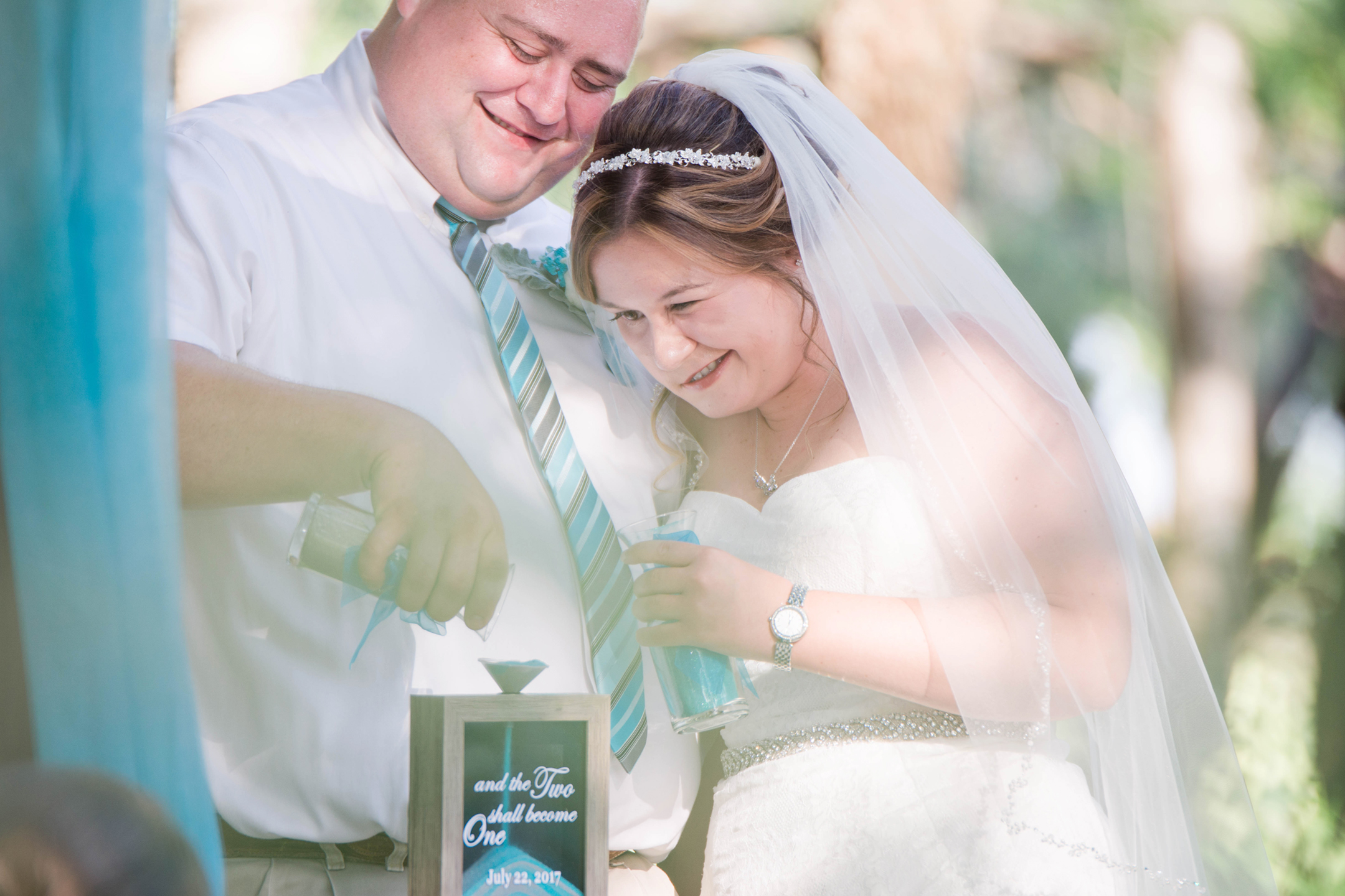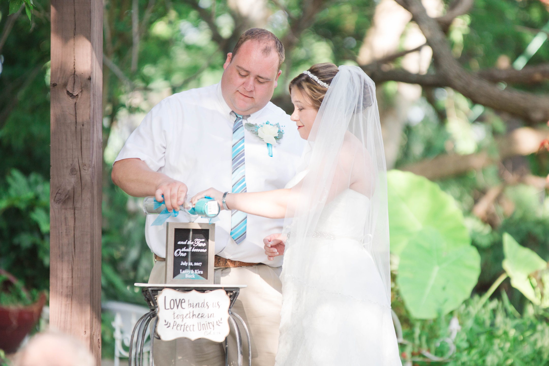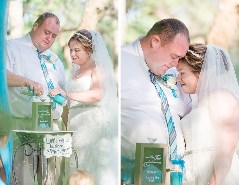 Kira was running right on time and was ready to start the wedding early! She couldn’t wait to see Larry and to become his wife. After a few pictures, a prayer, and hugs, it was time to start the ceremony. When Kira made her way toward her fiance, they shared a sweet glance and Larry was overcome with emotions. They love each other so much! During the ceremony, led by Larry’s father Fred and brother Ryan, they poured sand into a keepsake box to symbolize their coming together as one. They held each other when they were finished then headed back for their rings and their first kiss as Mr. and Mrs. Buck.