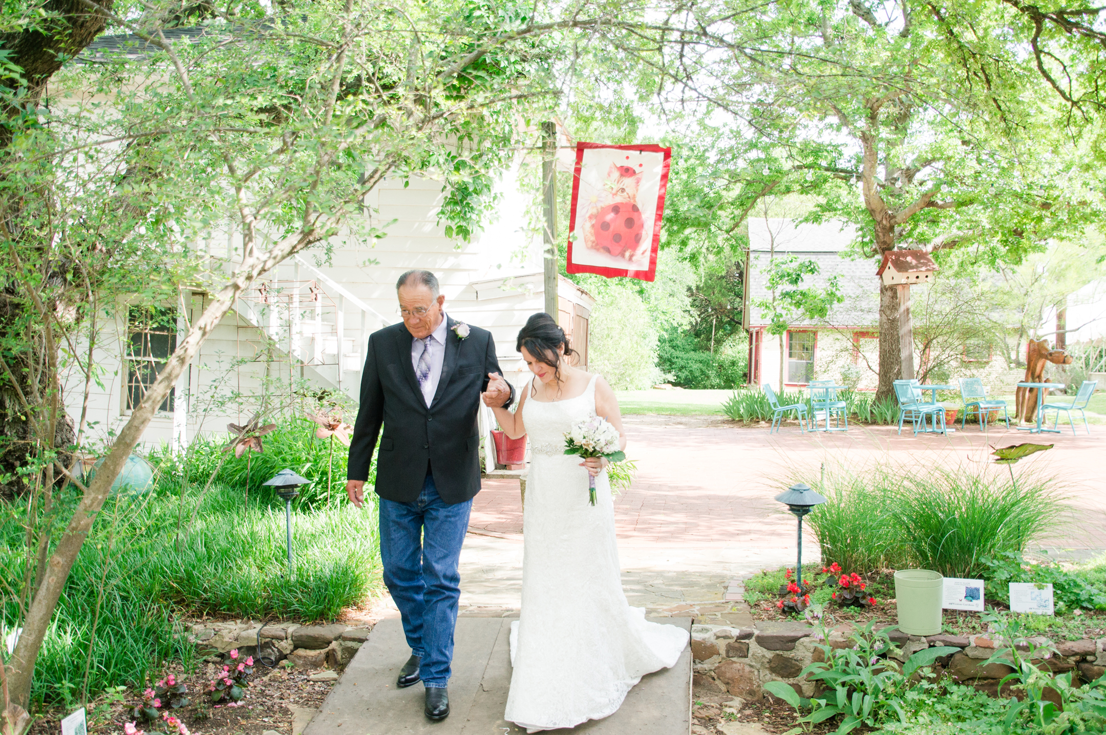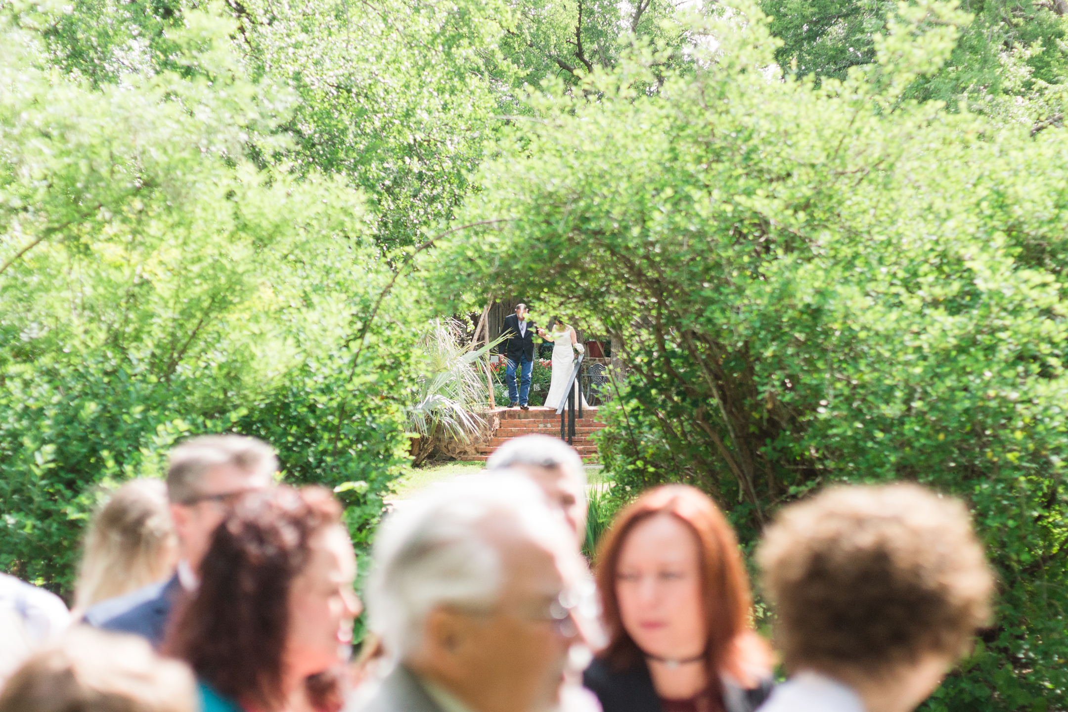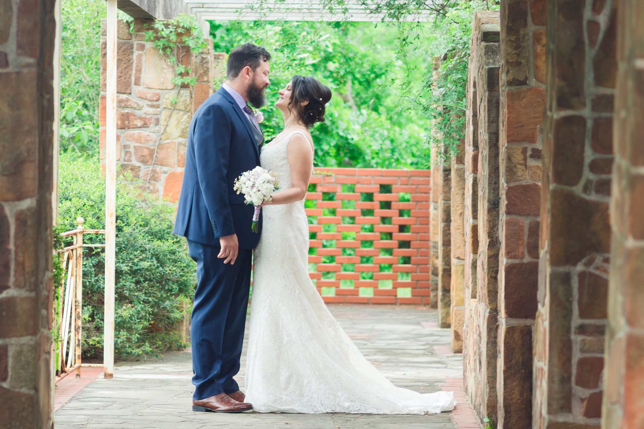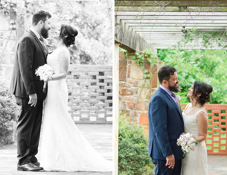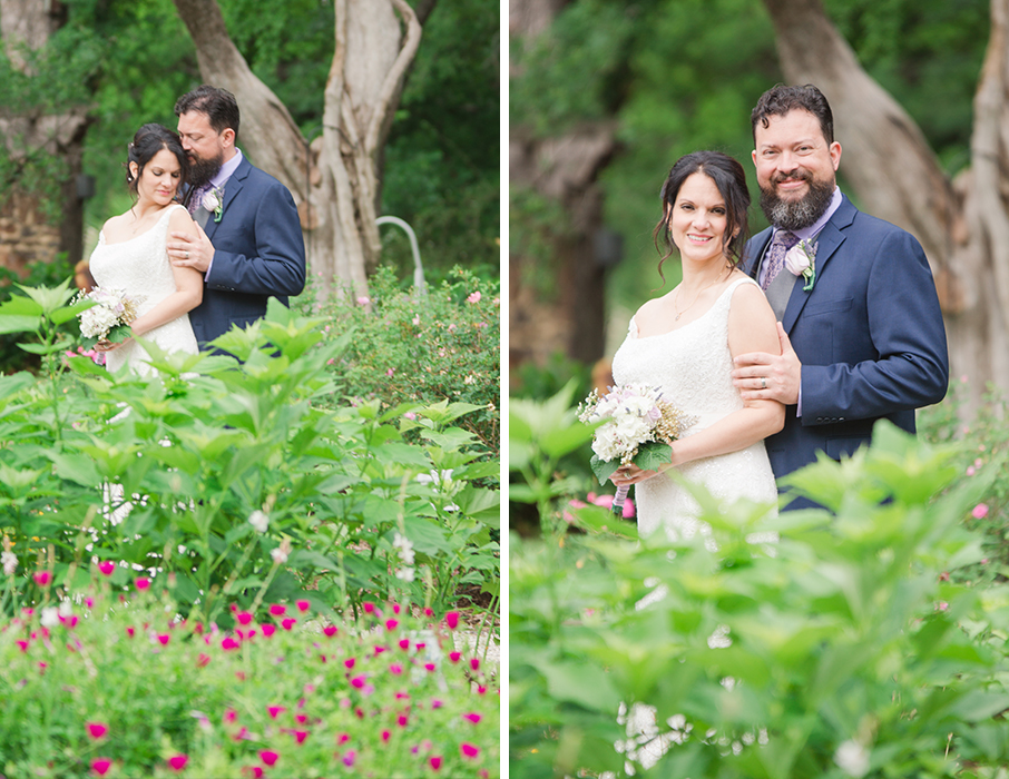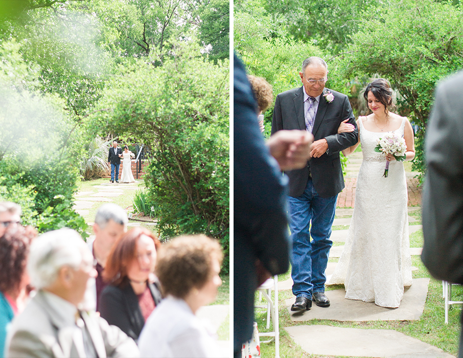 Mari + Nathan were married at the Weston Gardens in Fort Worth. It was a little chilly at first but the sun came out just in time for the ceremony. Mari was hiding out in her chariot with some of her family members until it was time to walk down the aisle. She looked so lovely in her gown all cozied up in the back of the SUV. Before I spoke with Mari, Nathan came straight over to find us. We got to take a few shots of him before the ceremony. He was all smiles and ready to meet his Bride down the aisle.