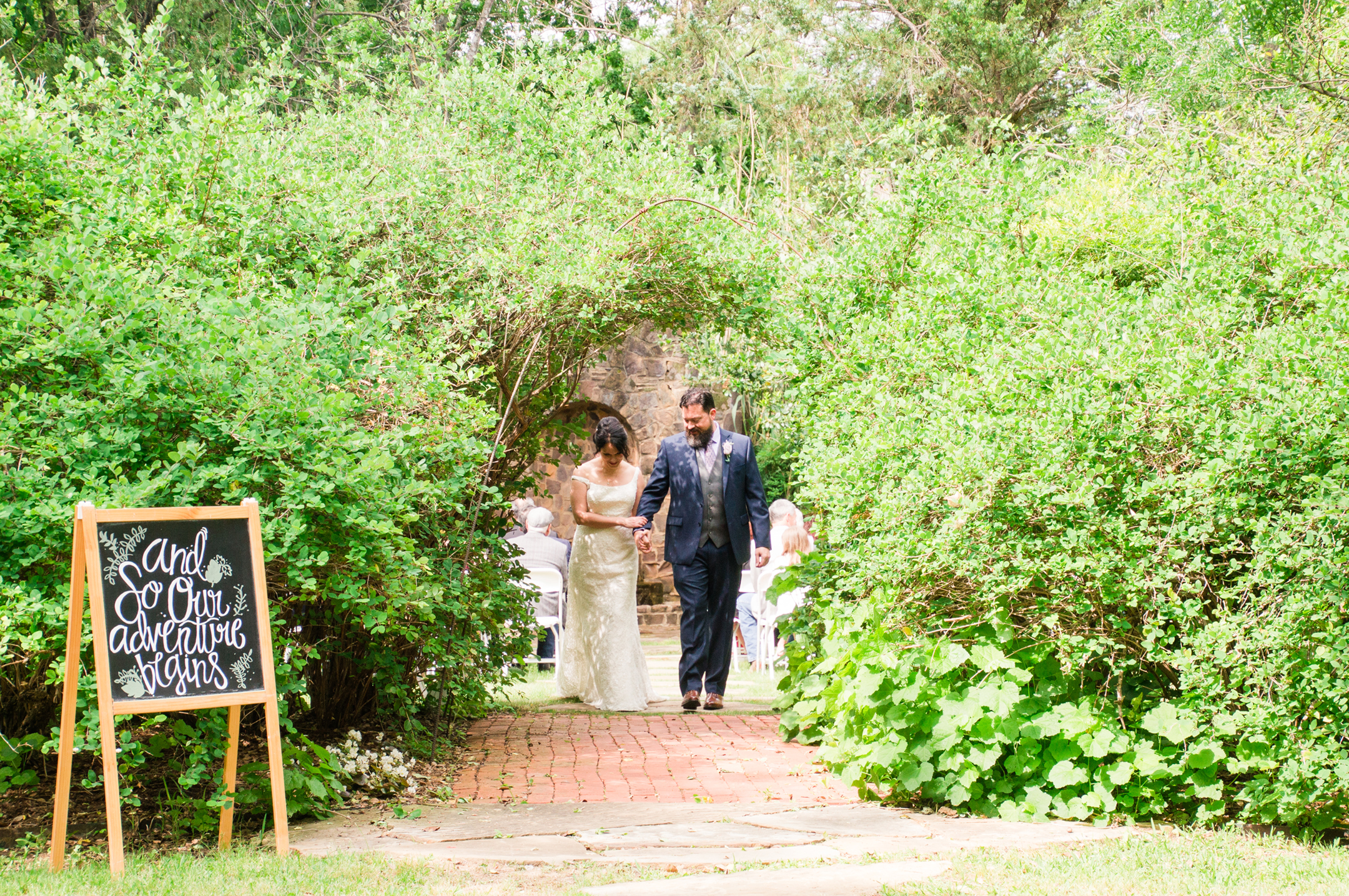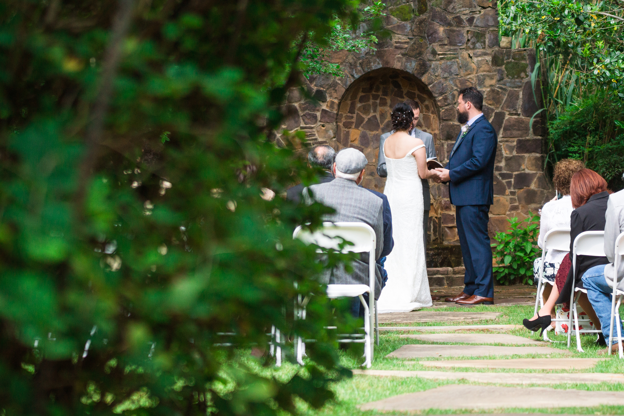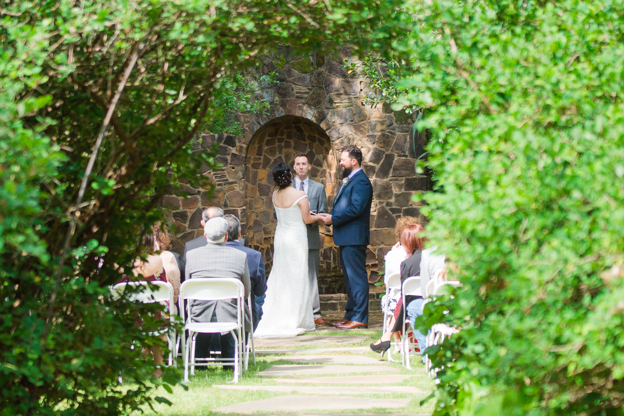 Weston Gardens has one of the most well-kept gardens I’ve seen. It was my first time visiting there and I’ll tell you it won’t be the last. What a beautiful place! The ceremony was held in a little hidden space that had a beautiful archway made of greenery. The stone wall with a fountain was a perfect touch into this secret garden space. Most of their wedding guests were family and the friends they do have might as well be. What a wonderful group of people.