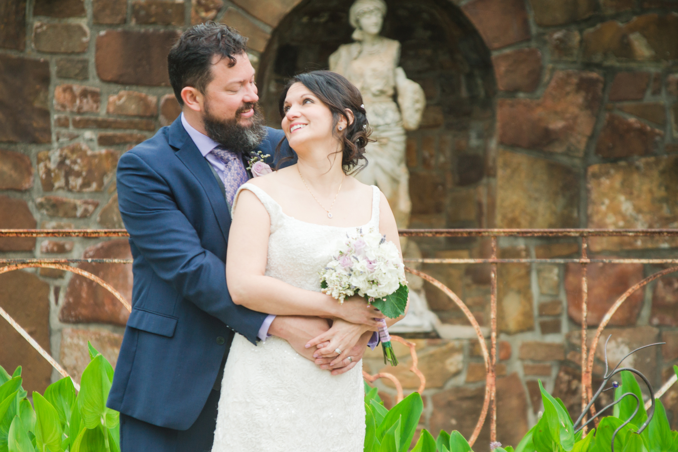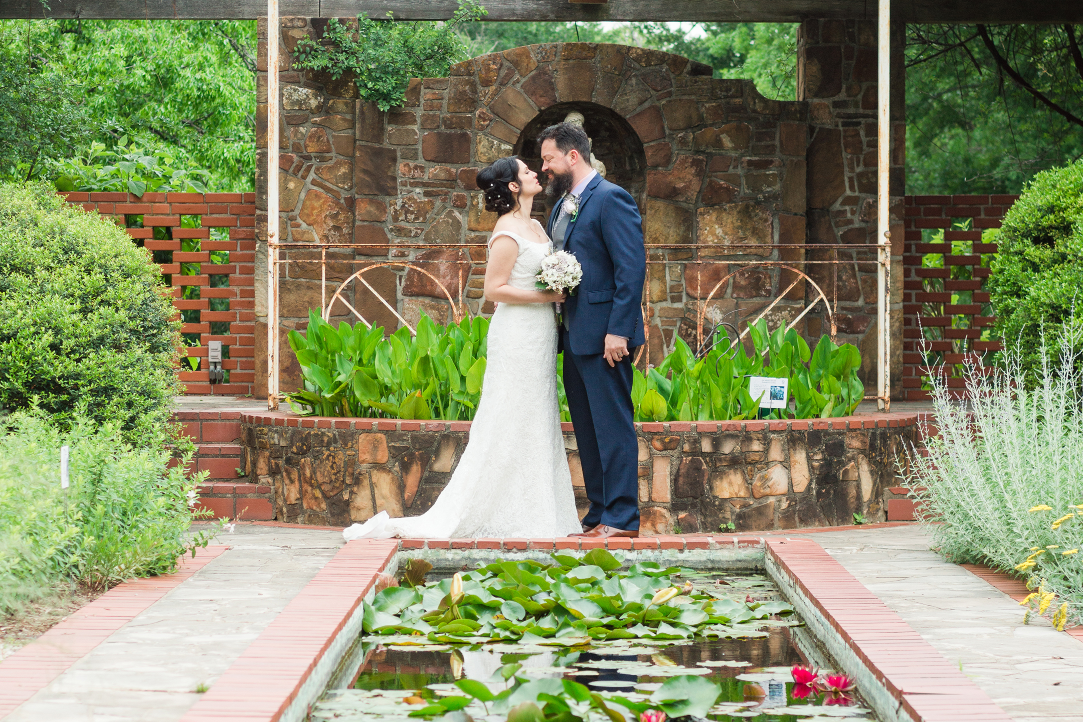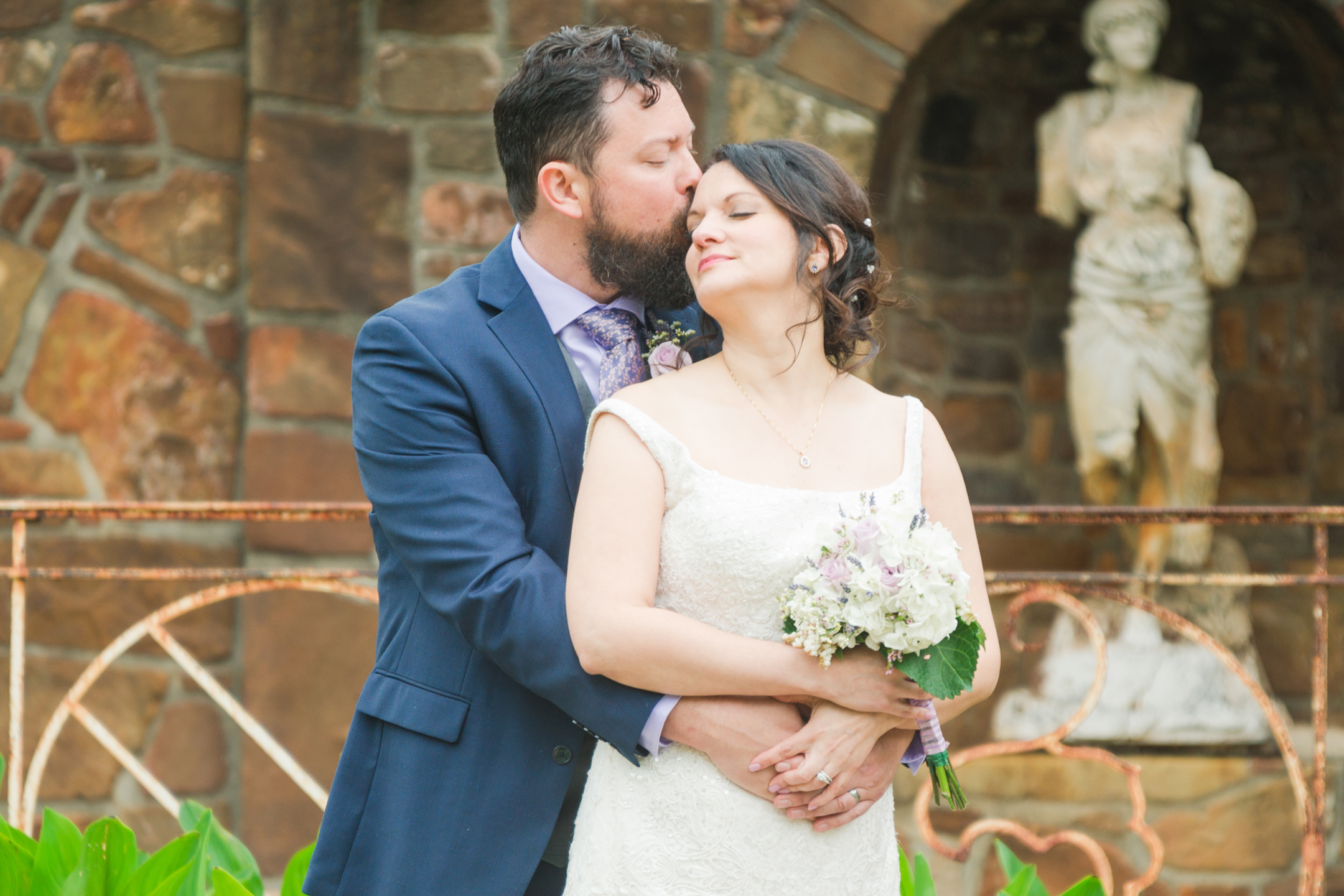 Weston Gardens has one of the most well-kept gardens I’ve seen. It was my first time visiting there and I’ll tell you it won’t be the last. What a beautiful place! The ceremony was held in a little hidden space that had a beautiful archway made of greenery. The stone wall with a fountain was a perfect touch into this secret garden space. Most of their wedding guests were family and the friends they do have might as well be. What a wonderful group of people.