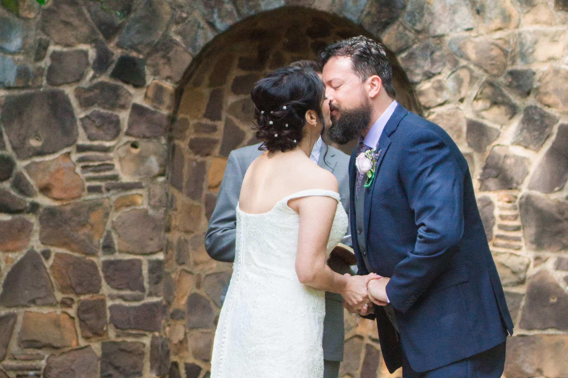 Everyone was anxiously awaiting for Mari + Nathan to walk over to the stone ship that is just behind the ceremony site. Nathan led his wife on a very unique style bride over to the stone ship. After our time there, we headed back to take family formals then it was time for our portrait session at the gardens. We strolled around, talked, and laughed. Right as we were wrapping up, we felt a rain drop. I took two more quick snaps, then the heavens dropped! Luckily the rain didn’t last too long. I’ve heard it is good luck!