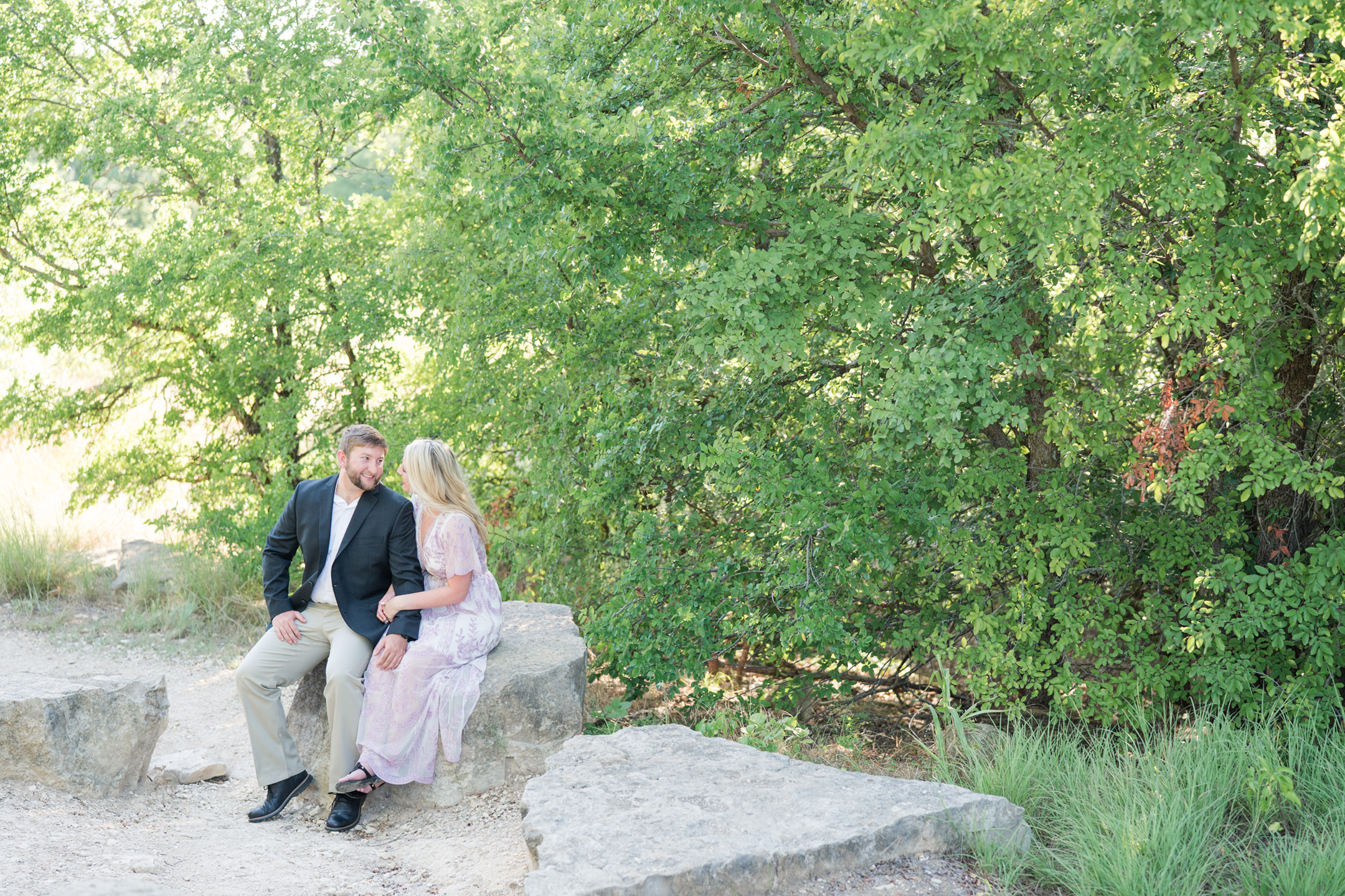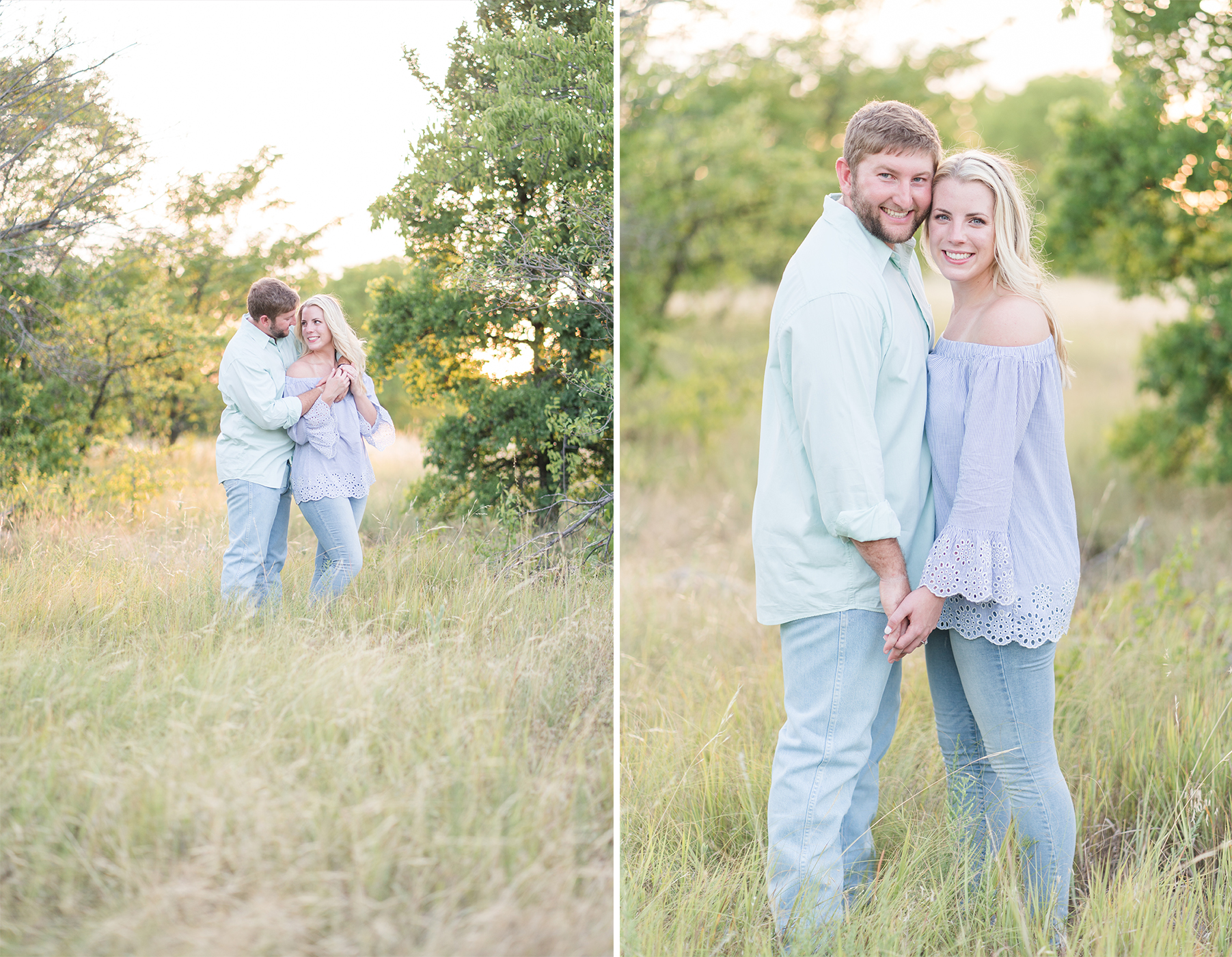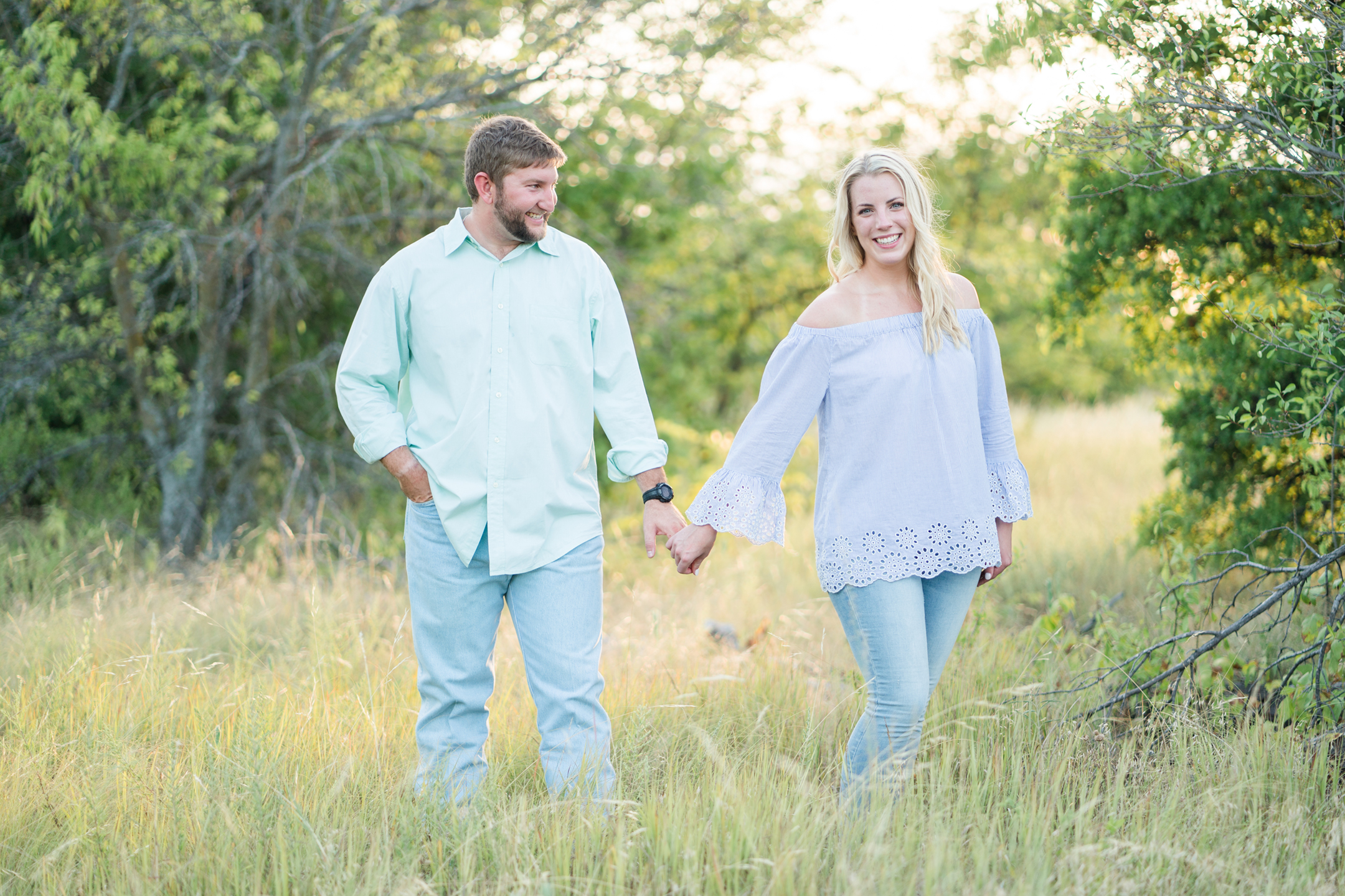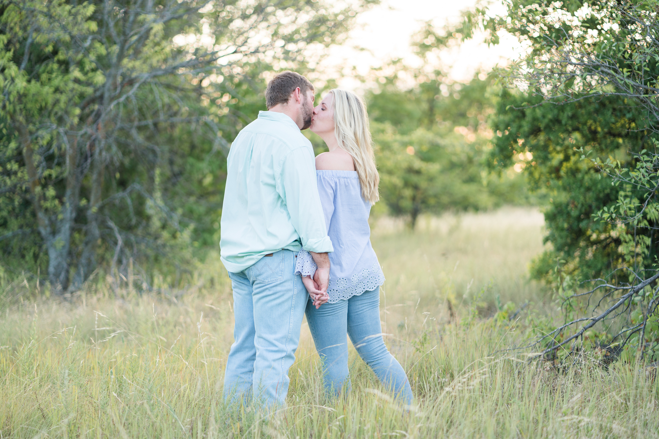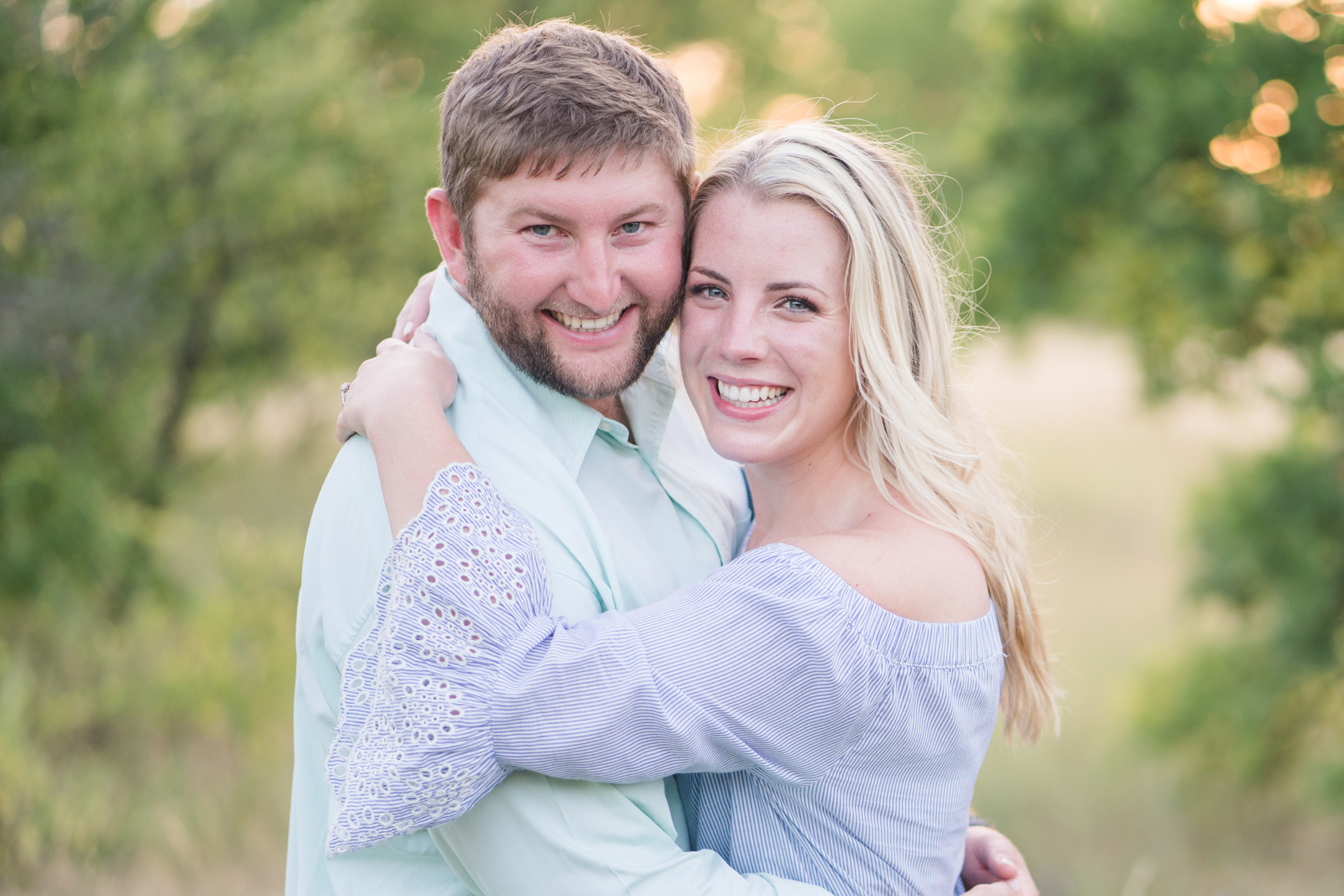 We met Megan + Carter at Arbor Hills in Plano on a July Saturday afternoon!  There was plenty of shade for us and it was perfect!  I love Arbor Hills in the Summer.  What a perfect day and location just for them!  Carter is currently in Lubbock and is a football coach and Megan is a speech pathologist!  I loved getting to hear what their passions are and where they see each other in the future!