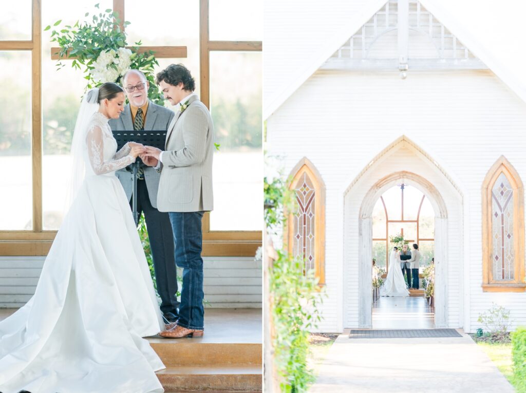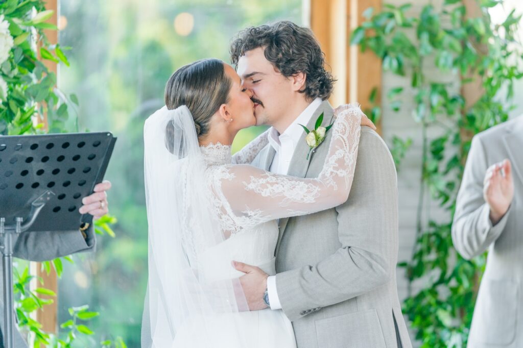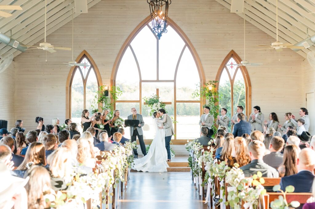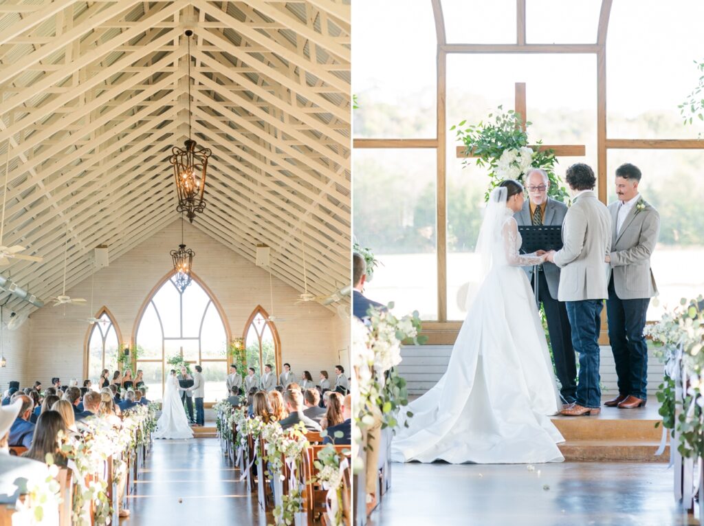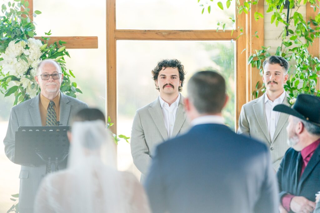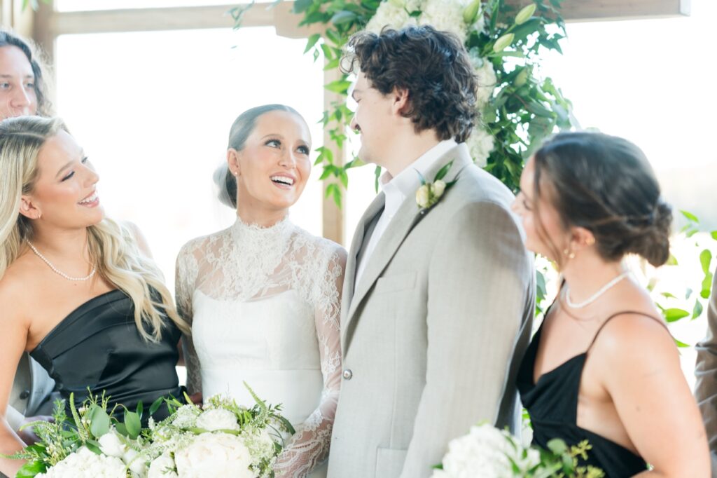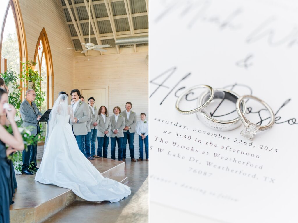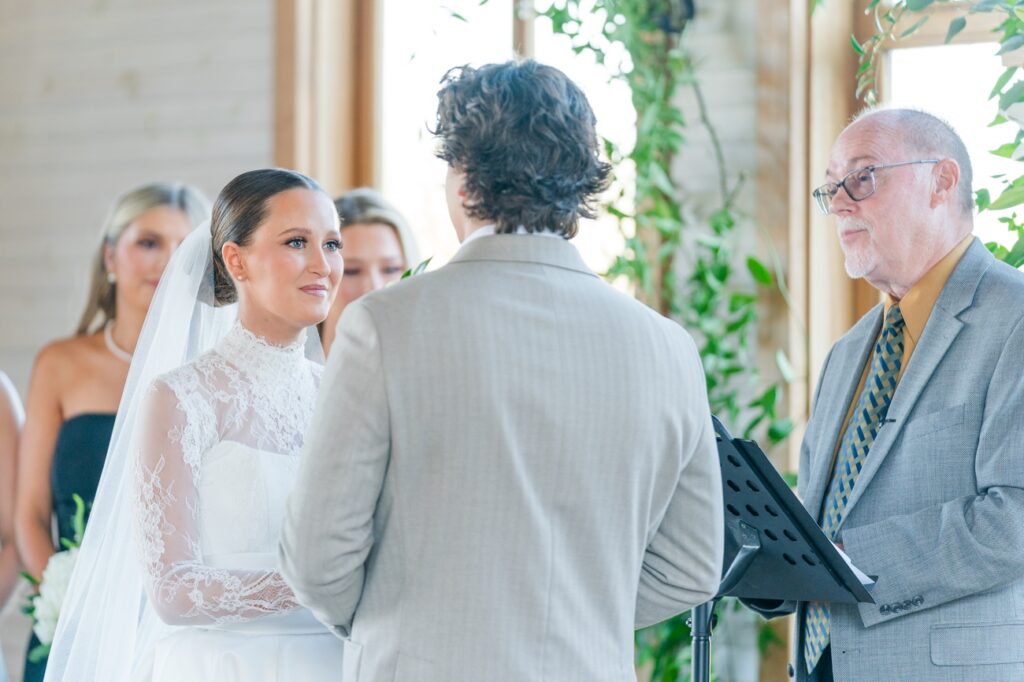 The chapel at The Brooks glowed softly as guests gathered, and the ceremony became even more meaningful with Alec’s grandfather officiating. His words were tender, personal, and full of wisdom — the kind only someone who has watched Alec grow up could offer. It added such a beautiful, intimate layer to the moment Miah walked down the aisle. You could see the emotion on both their faces as they stood together, surrounded by the people who love them most.