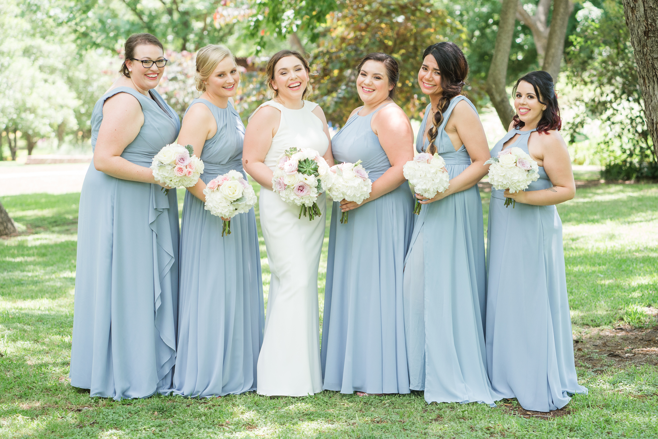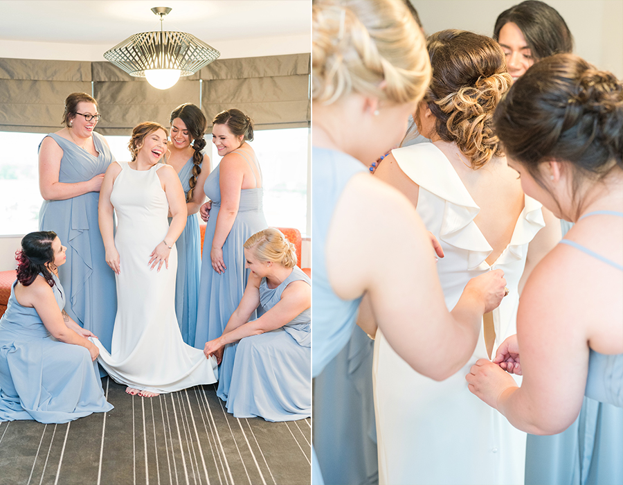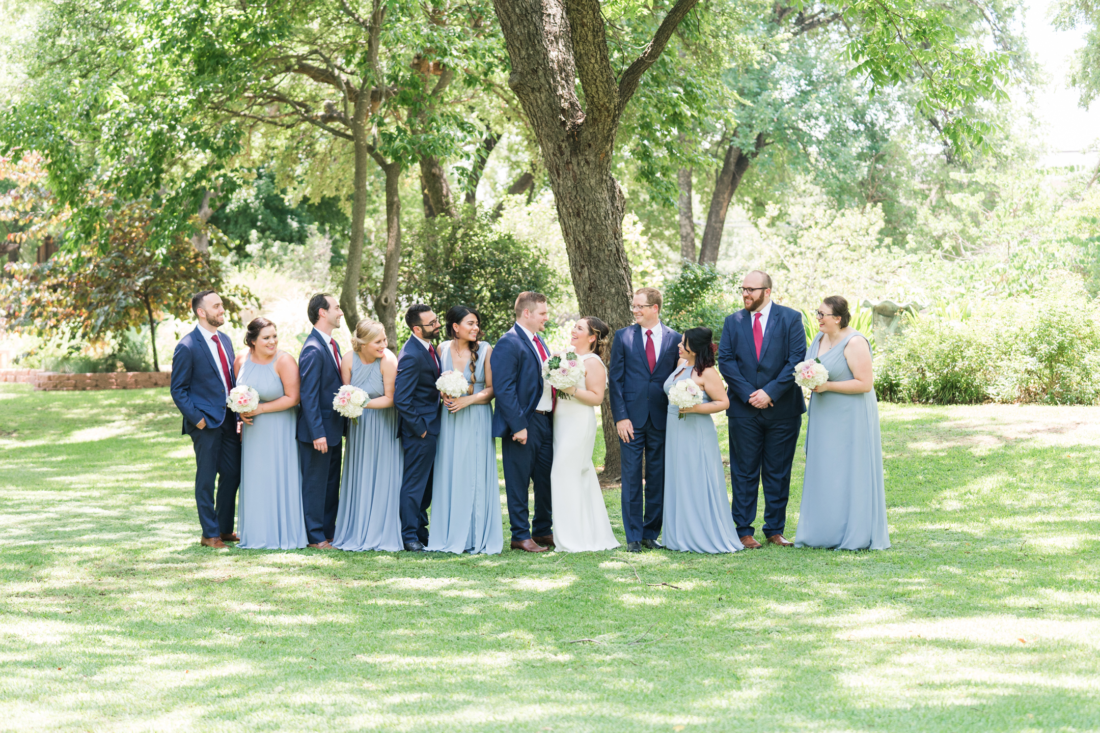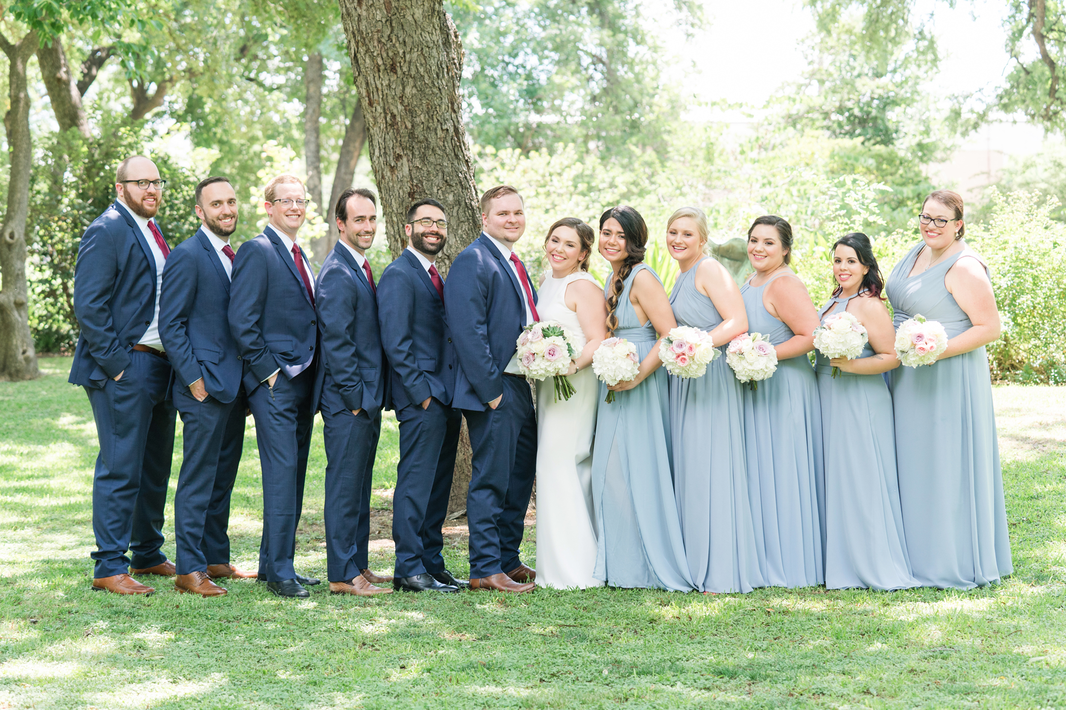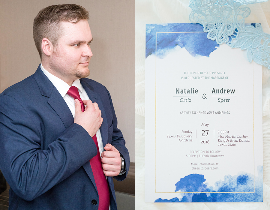 Natalie + Andrew’s wedding day started at the Hyatt Regency Hotel in downtown Dallas. I knew the day was going to be AMAZING when I walked into the horizon suite and ALL the girls greeted me with huge smiles, waves, and Hey’s!!! I tell you what, that made my day! There could not have been a nicer, sweeter, group of girls! And we can’t forget her mom!! Loving the hugs that they shared together. Natalie is blessed for sure! The guys were just as nice and were already looking sharp when I arrived to their room. It wasn’t long before it was time to head to the Texas Discovery Gardens at Fair Park for their first look and ceremony!