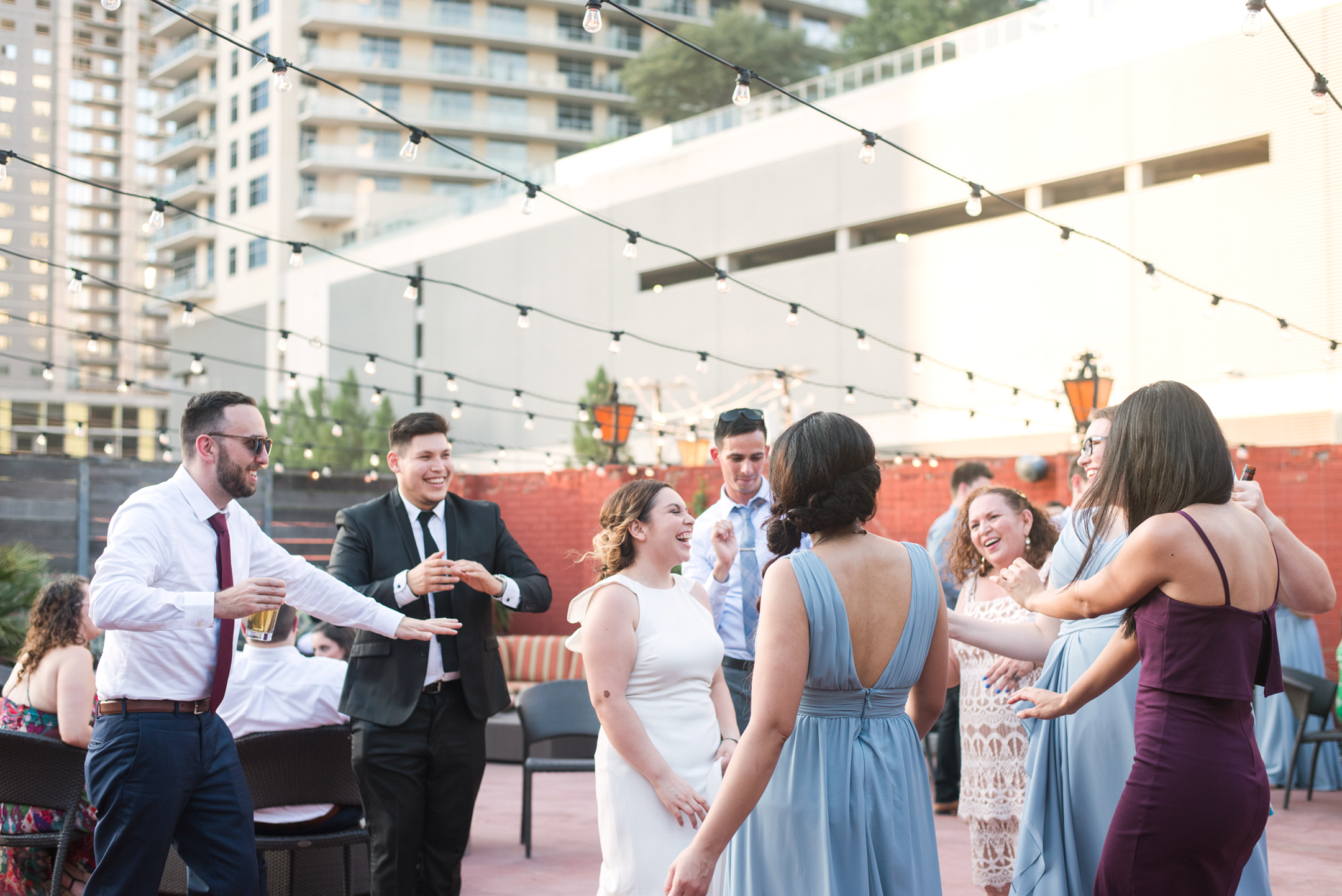 Now it’s time to celebrate! The reception was on a rooftop at the El Fenix Downtown and the views were spectacular! I love love love the table settings and these flowers! Occasions Event Designs did a phenomenal job! After a little time, the bride and groom arrived with their bridal party. The room was packed with all of their friends and family and it was clear how much they are loved and cared for. I can’t get over how many laughs and smiles I saw throughout the night. It was such a joy to be a part of this day! You have to check out some of my favorite images so you can see what I mean. Check out these smiles!