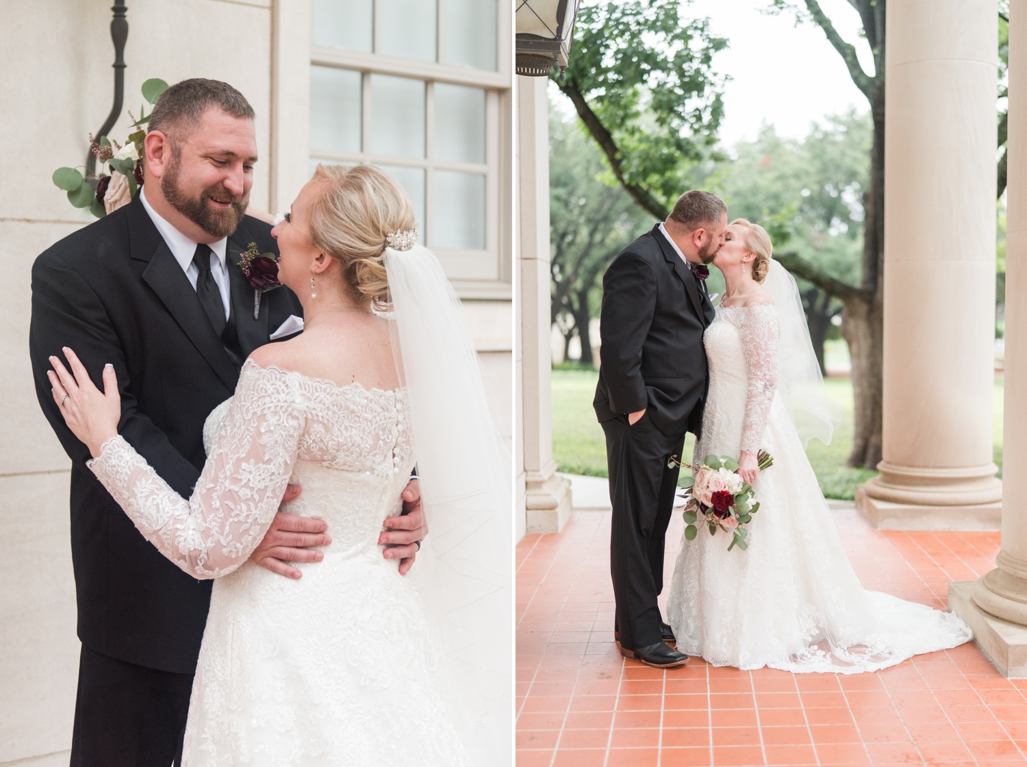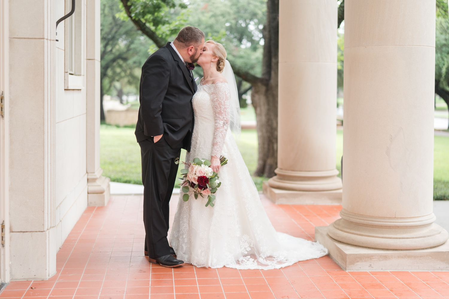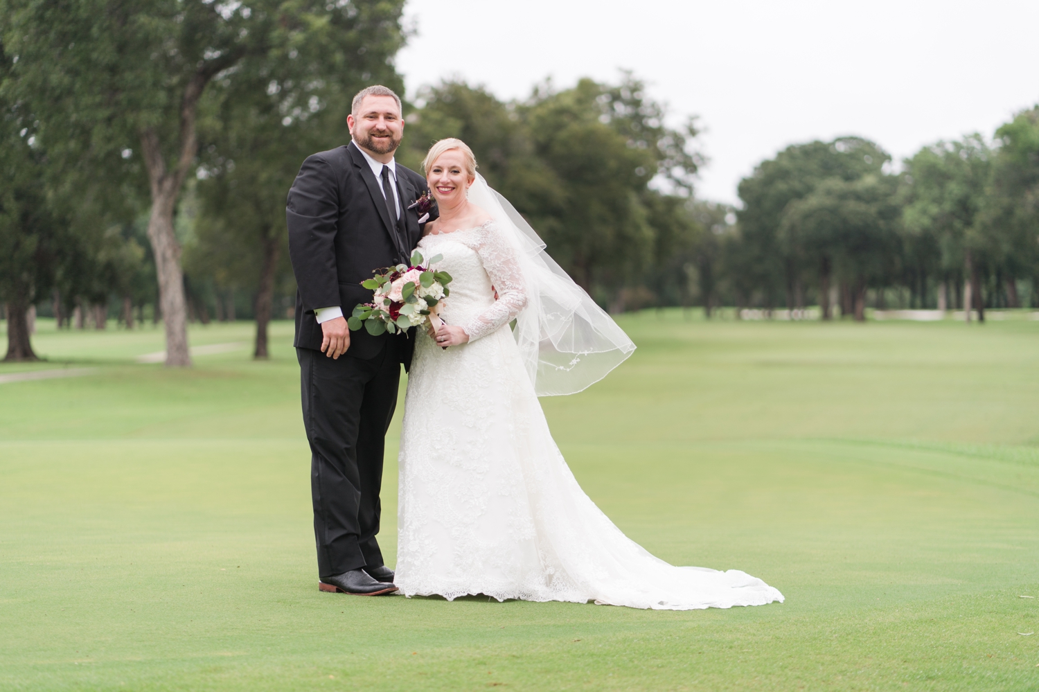 After the ceremony, we headed outside for a few portraits before heading to the reception. Good Luck for the Paige + Rob, it was raining! Well, a heavy drizzle that looked like snow. (Texas is so weird) We had to stay close to the Chapel but I LOVE the way they turned out! Even luckier… it wasn’t raining at all when we arrived at the Diamond Oaks Country Club. Perfect timing for us to head out to the green and spend more time with Paige and Rob for portraits. Just as we were finishing up, it started to sprinkle again.