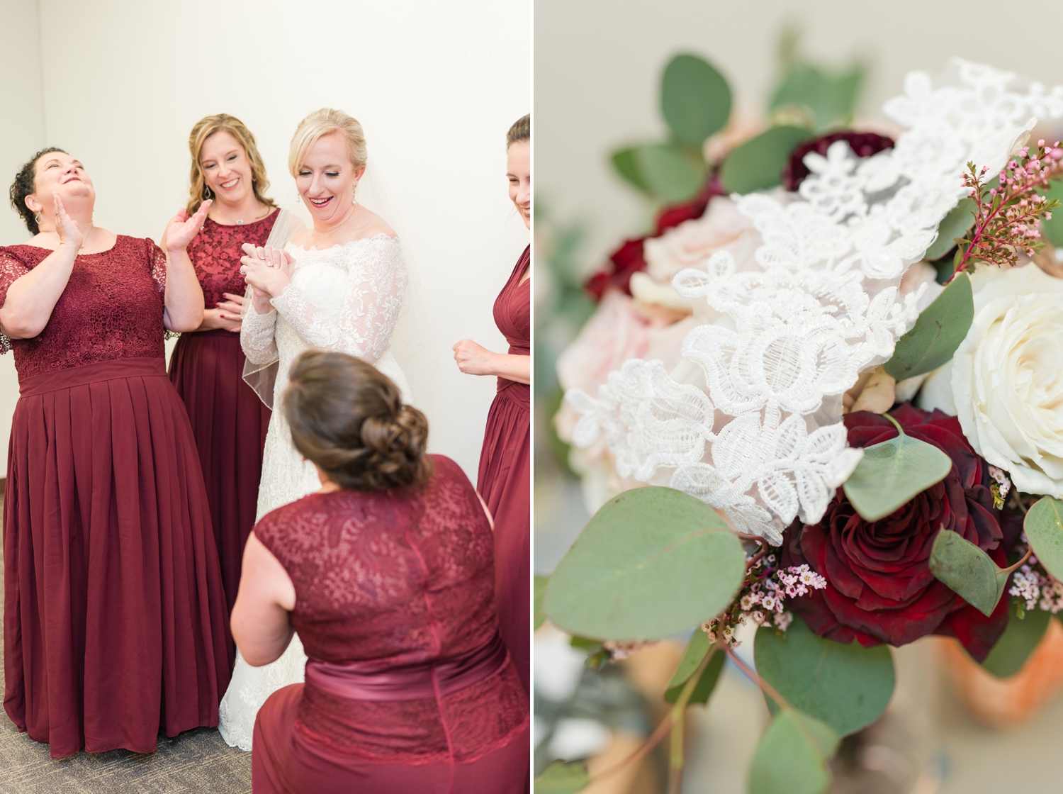 Before the ceremony, the officiant, who is a Pastor at Rush Creek, met with the bride and groom separately to say a prayer for the couple and their marriage. That’s always a great start to a wedding day! Oh and did I mention that we all attend the same Church?! It’s so fun that we get to see them sometimes on Sunday’s!