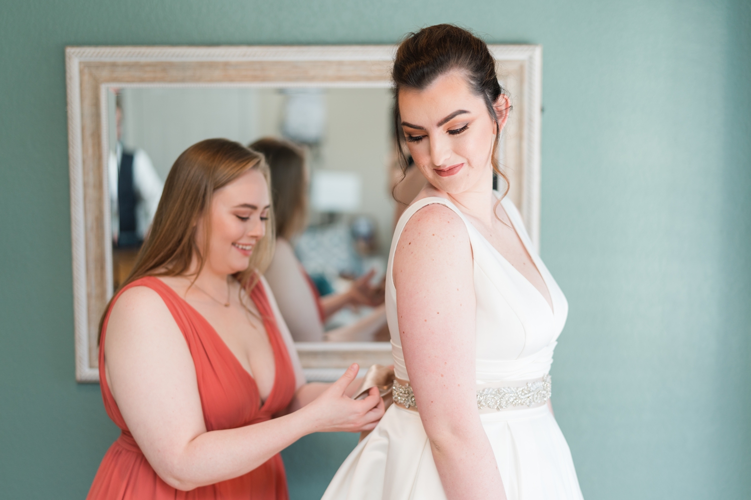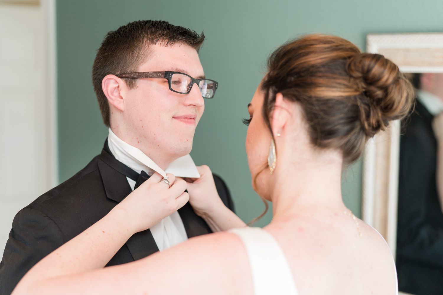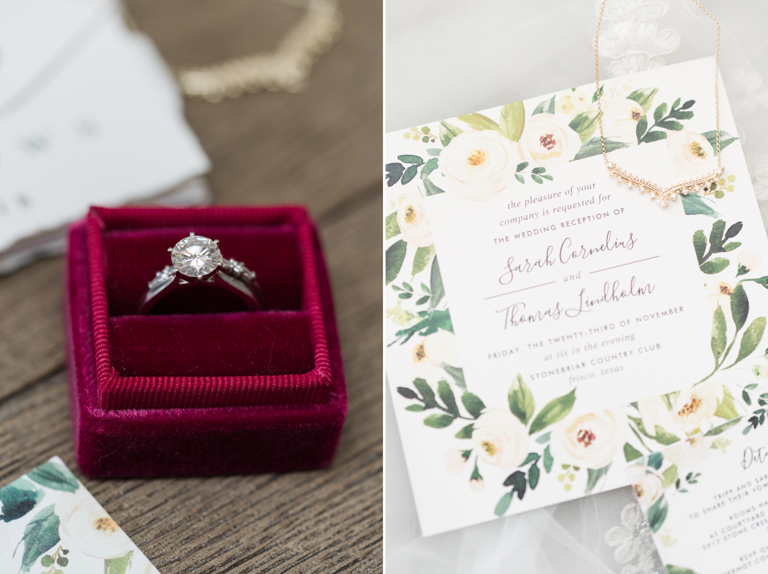 Sarah + Tripp started their marriage in San Fransico California just a few days before their reception! They traveled with a few of their close family members and were married in one of the most beautiful places, San Francisco City Hall. Since their ceremony had already taken place, our day started at their home! Sarah’s friend Emily was there to help Sarah put on the final touches. It was so sweet to watch Sarah help Tripp put on his. Everything about this couple is genuine and really shows how personal their relationship is. The Office, which is their favorite show, was on in the background and it was super important to them to have a few pictures of them and their babies. (You have to see their sweet kitties!) Now it was time to head to the Stonebriar Country Club in Frisco to celebrate their marriage with so many friends and family!
