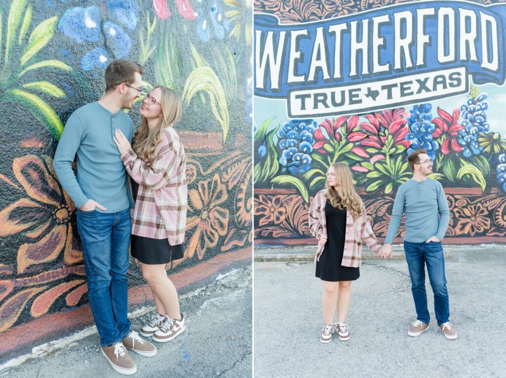 Downtown Weatherford was the perfect backdrop for their playful vibe. The mix of charming brick buildings, murals, and urban textures gave us so many fun spots to shoot.